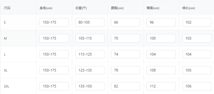 Outseam (cm) 99 cm 101.5 cm 104 cm 106.5 cm 109 cm