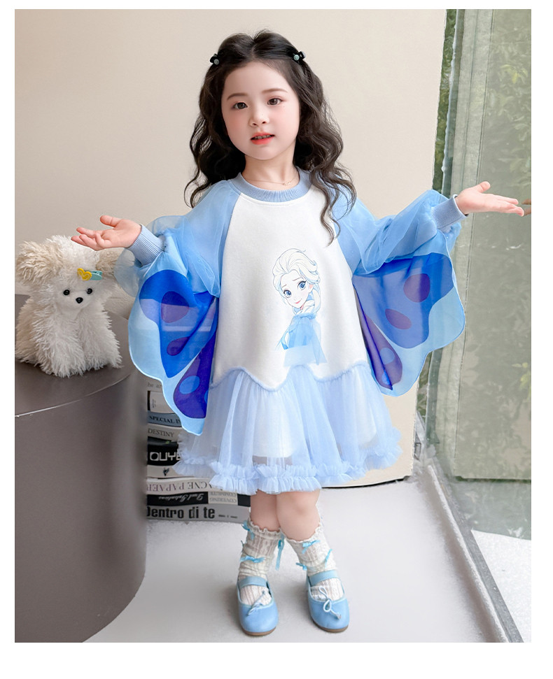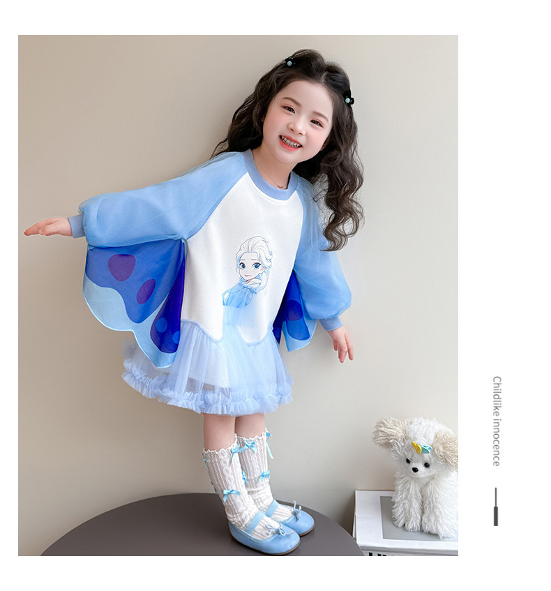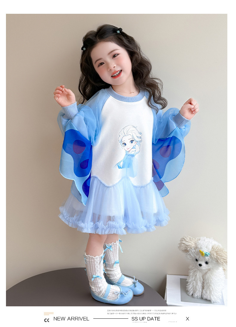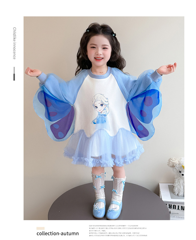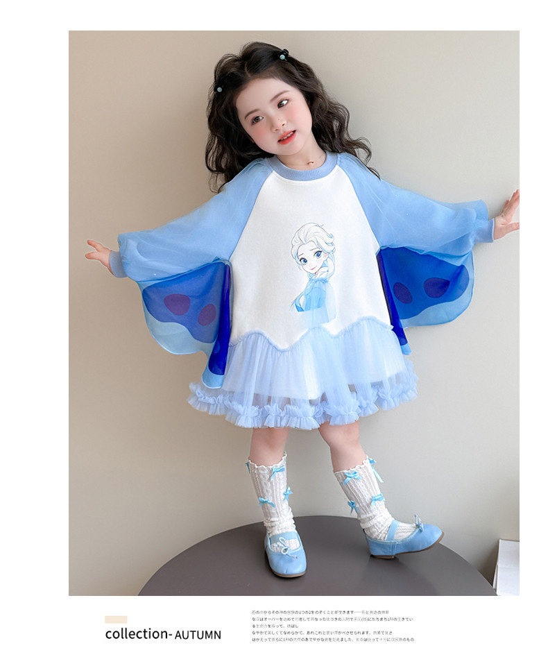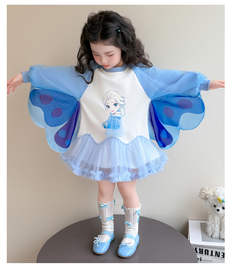 Girls' Spring Clothing Elsa Princess Dress 2026 New Style Baby Girl Dress Kidsren's Spring & Fall Style Winged Mesh Skirt