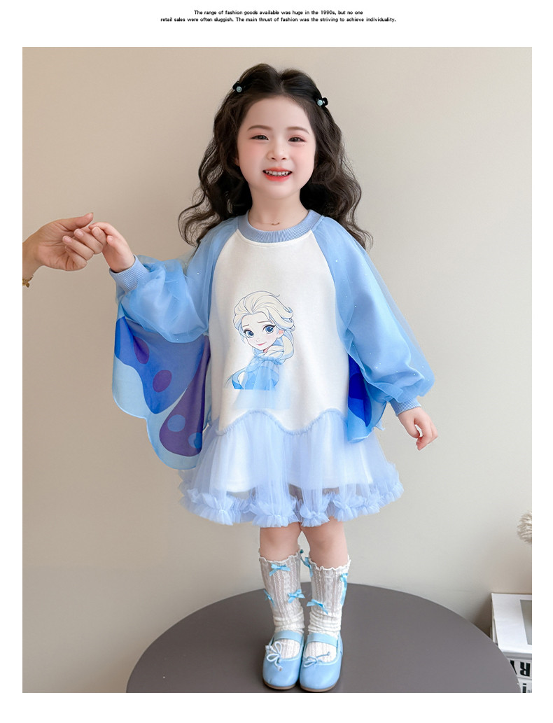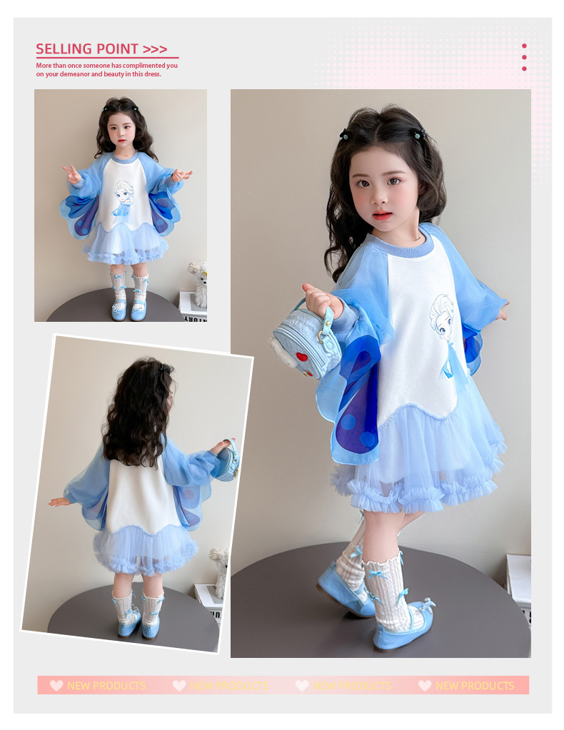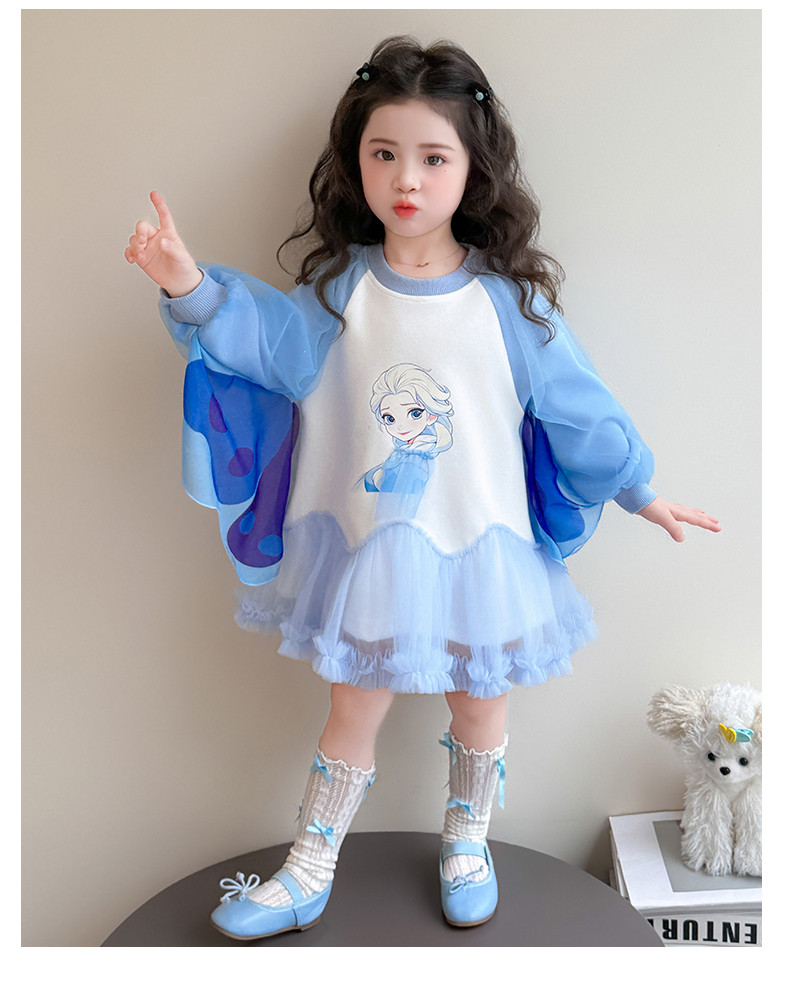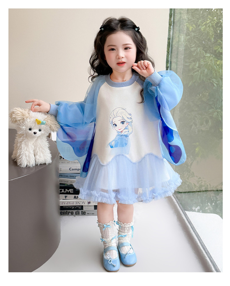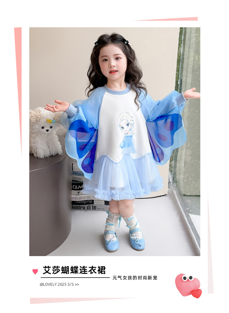 Girls' Spring Clothing Elsa Princess Dress 2026 New Style Baby Girl Dress Kidsren's Spring & Fall Style Winged Mesh Skirt