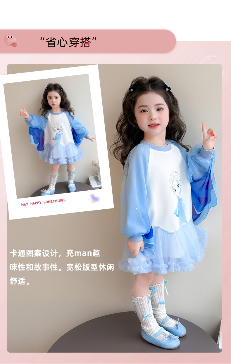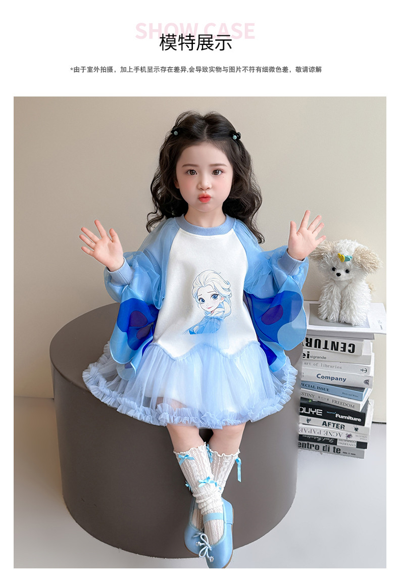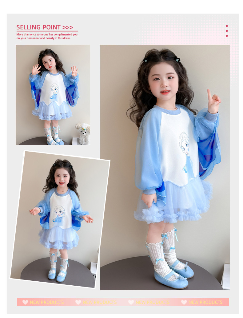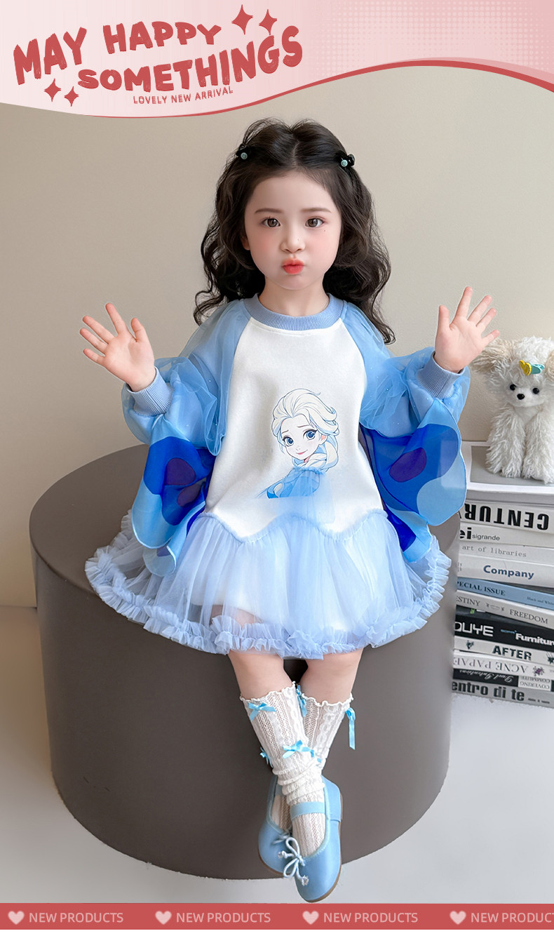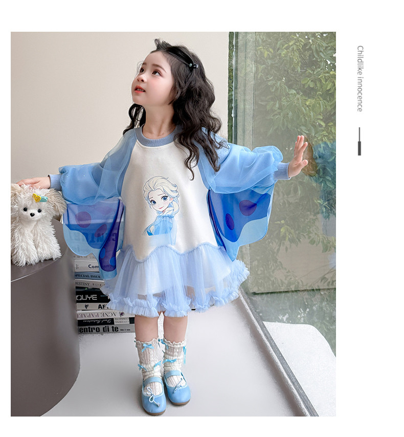 Girls' Spring Clothing Elsa Princess Dress 2026 New Style Baby Girl Dress Kidsren's Spring & Fall Style Winged Mesh Skirt