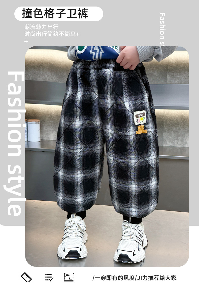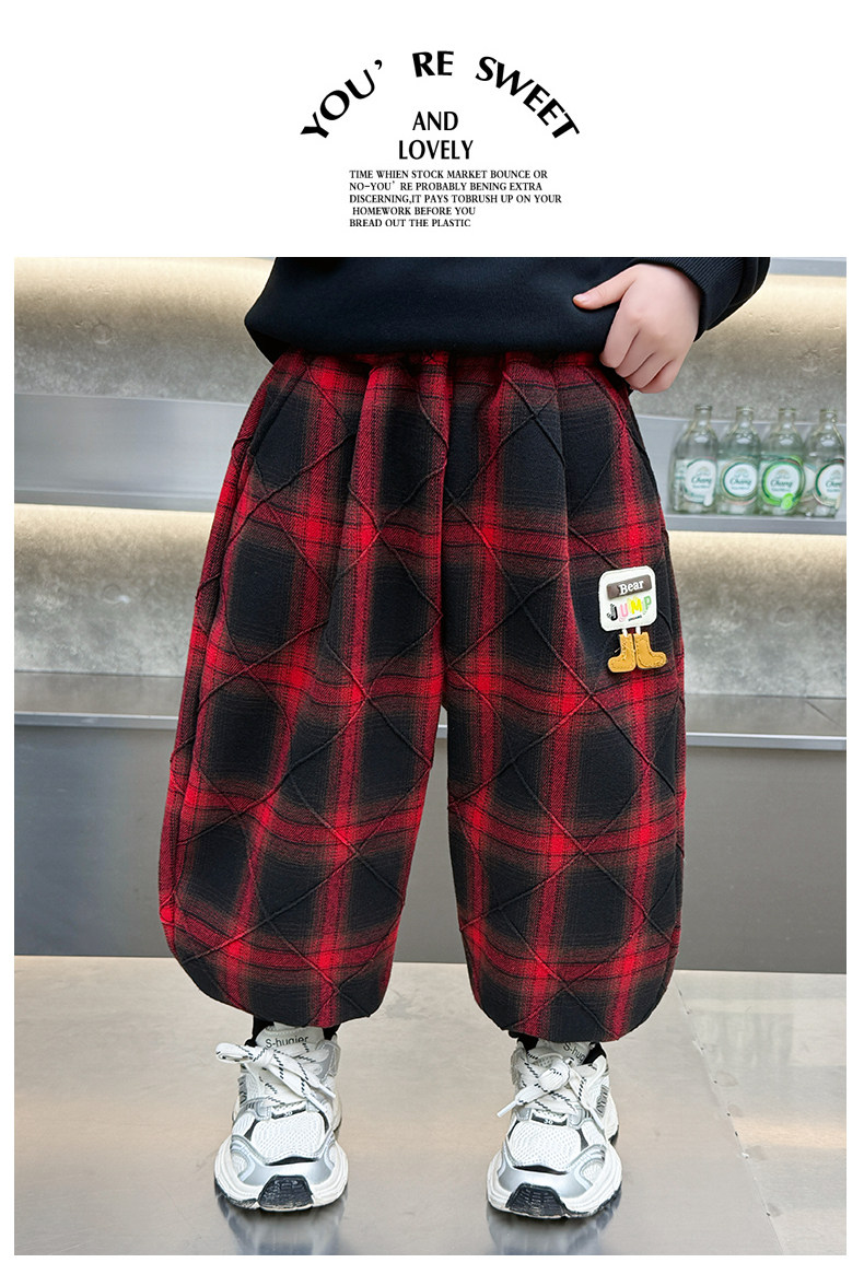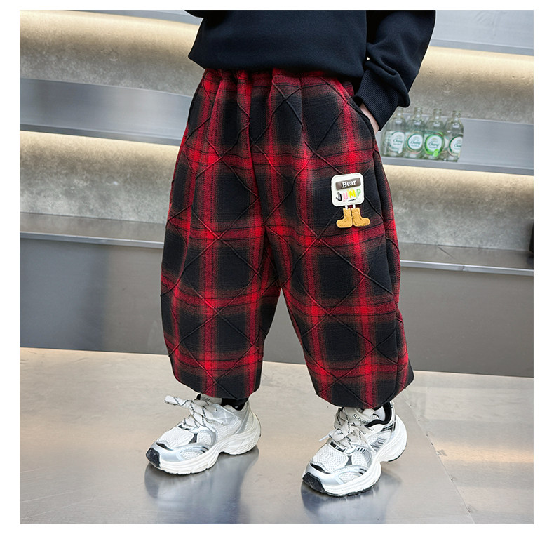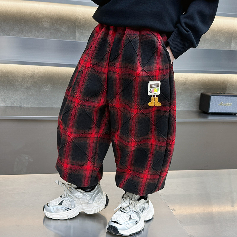 Boys' Plaid Long Pants Spring Outfit Children's Casual Jogger Pants 2026 New Cartoon Baby Lantern Pants Stylish Trousers