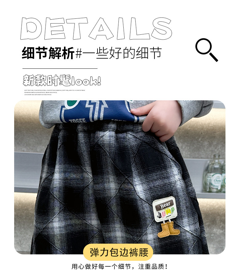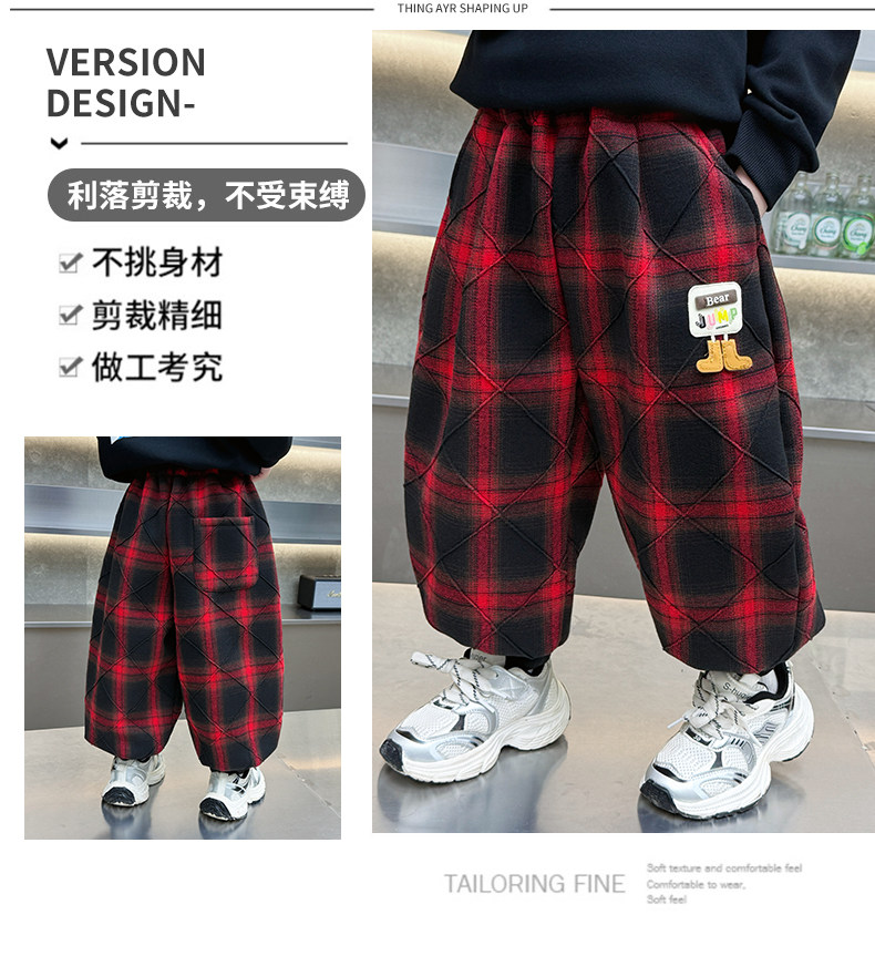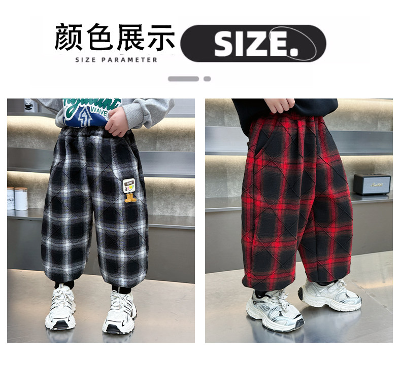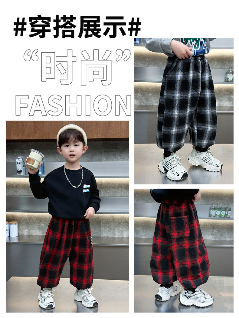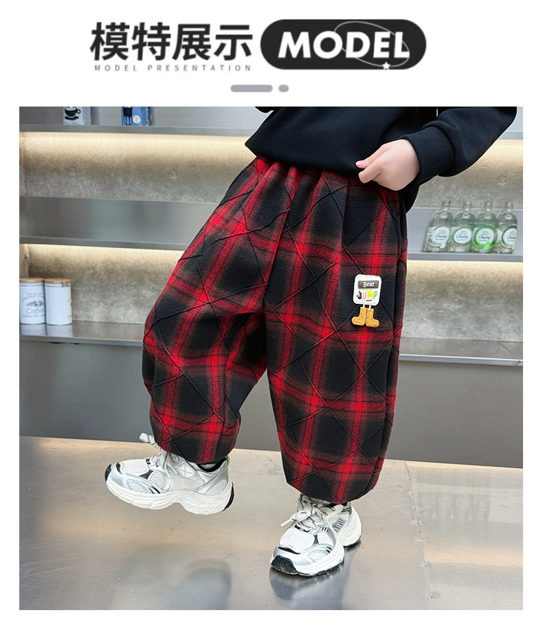 Boys' Plaid Long Pants Spring Outfit Children's Casual Jogger Pants 2026 New Cartoon Baby Lantern Pants Stylish Trousers