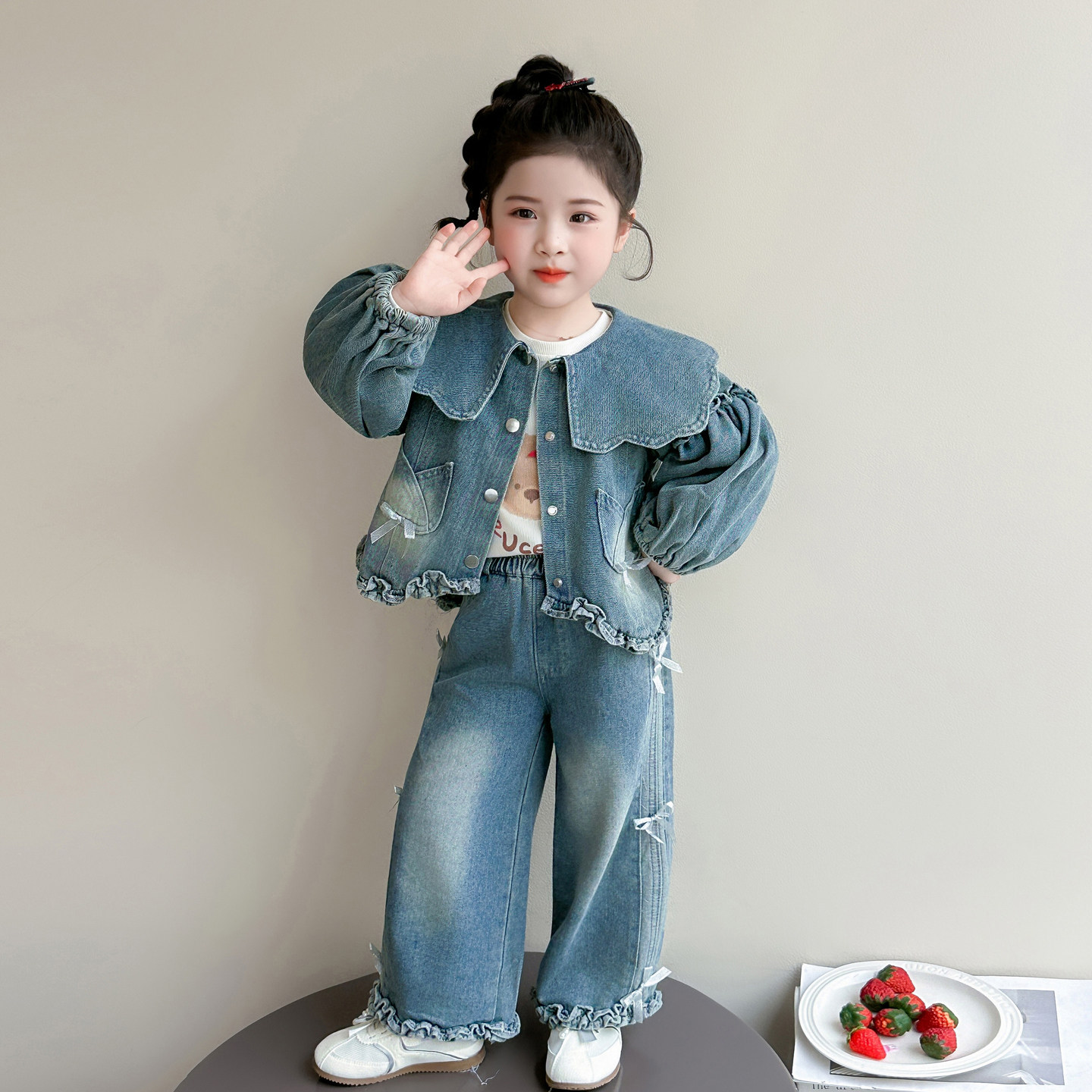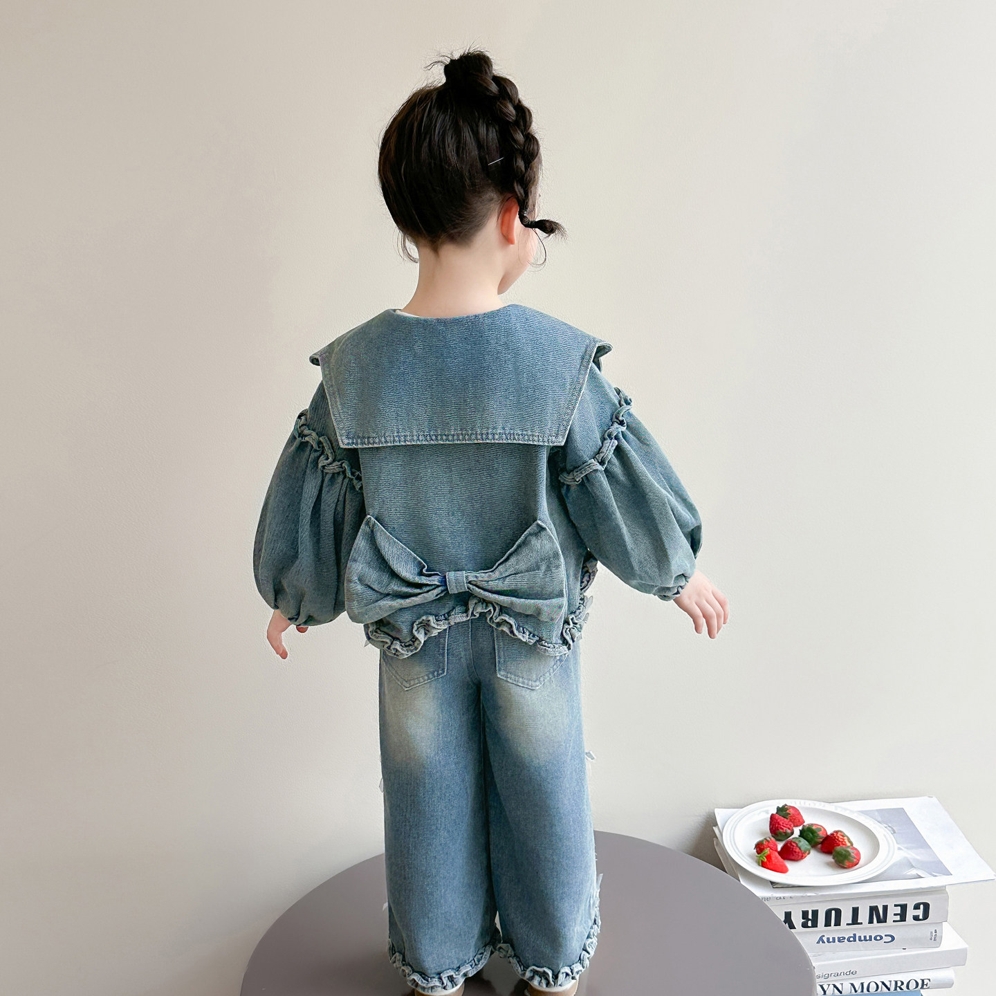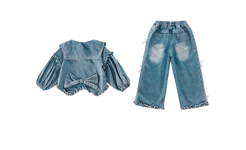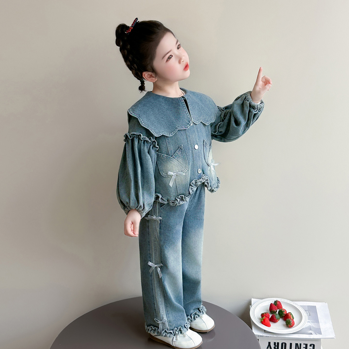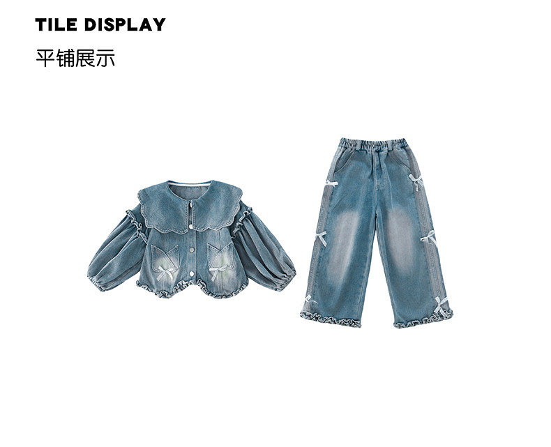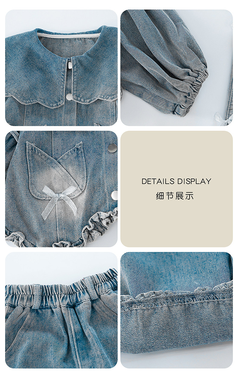 Girls spring denim suit 2026 new baby girl spring and autumn large lapel lantern sleeve denim suit for children