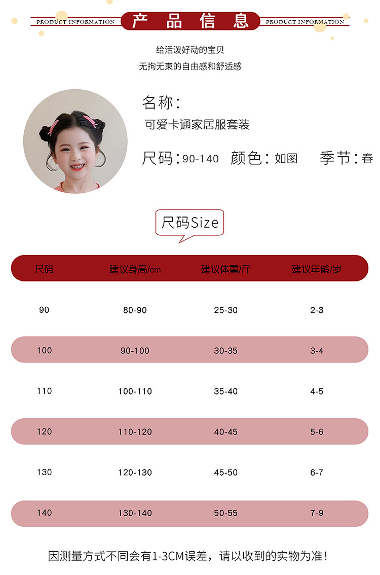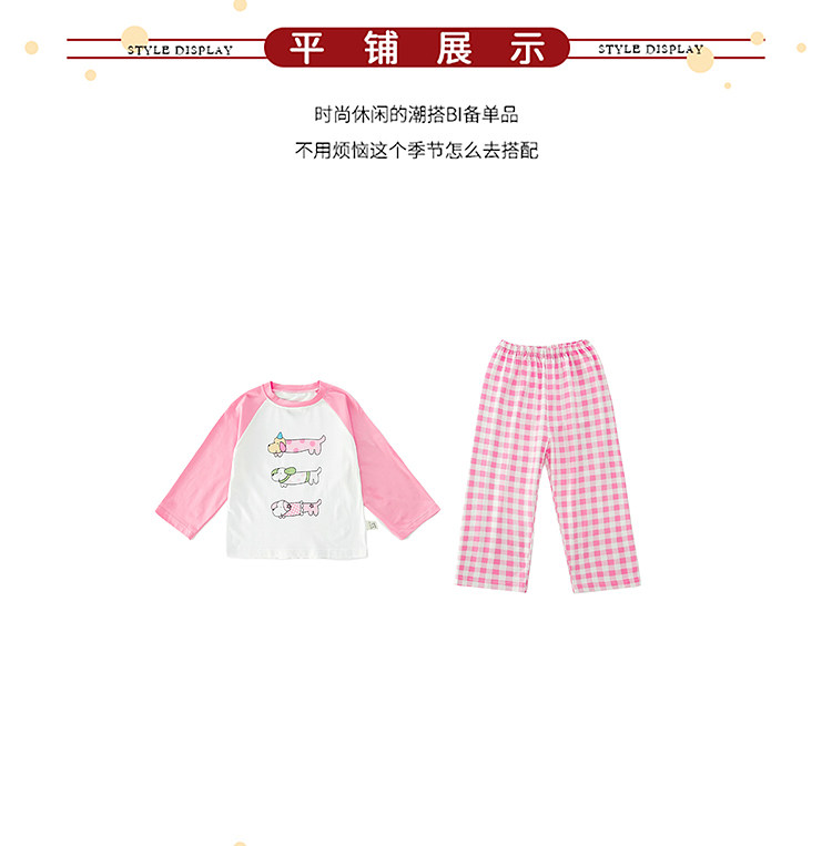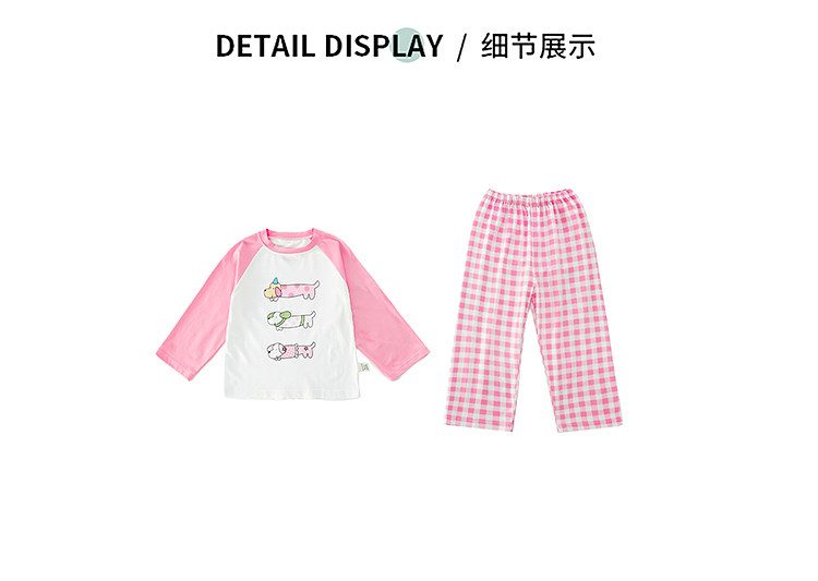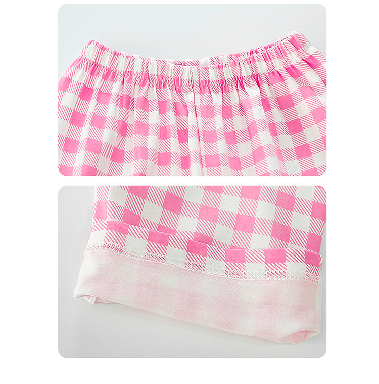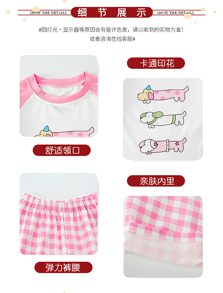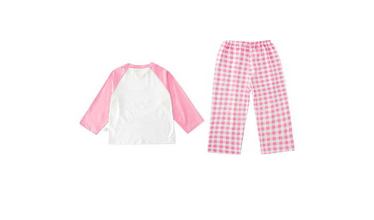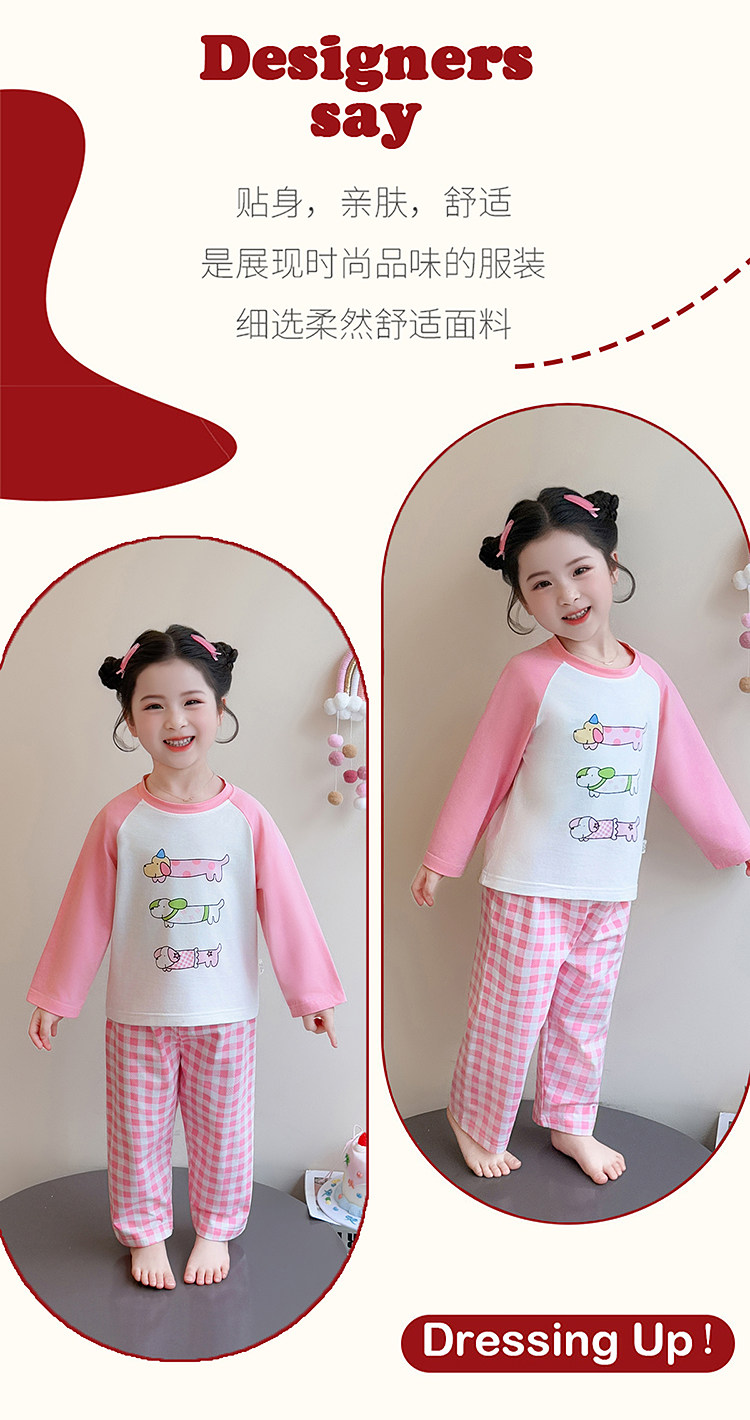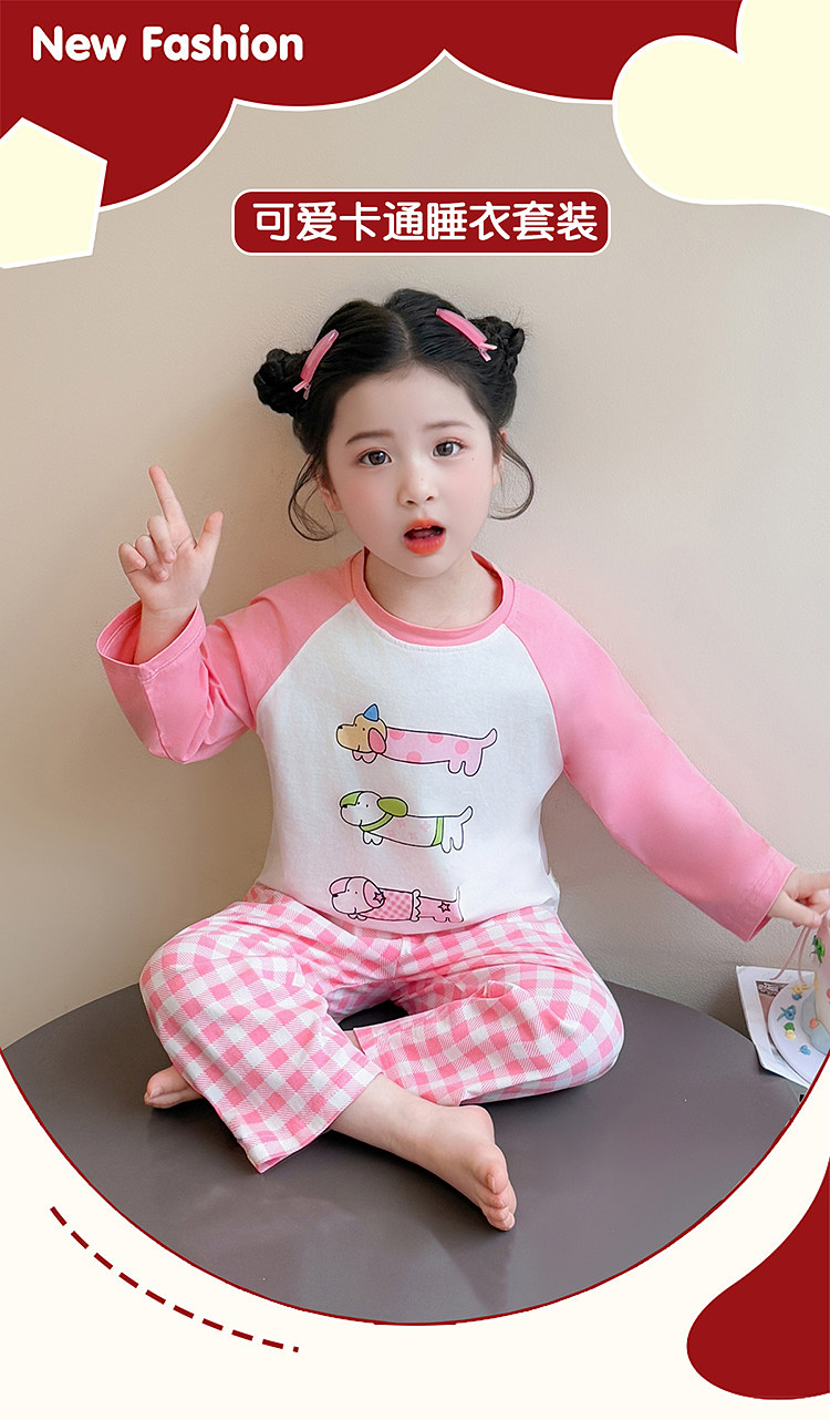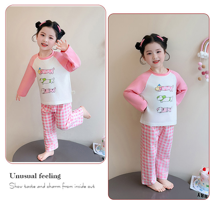 Girls' Pure Cotton Thin Pajamas, New Spring and Autumn Style, Cute Cartoon Long-Sleeve Plaid Loungewear, Air-Conditioning Suit Set