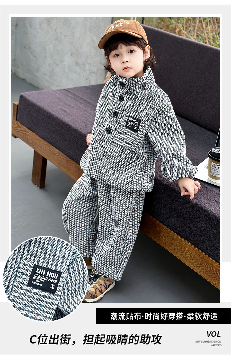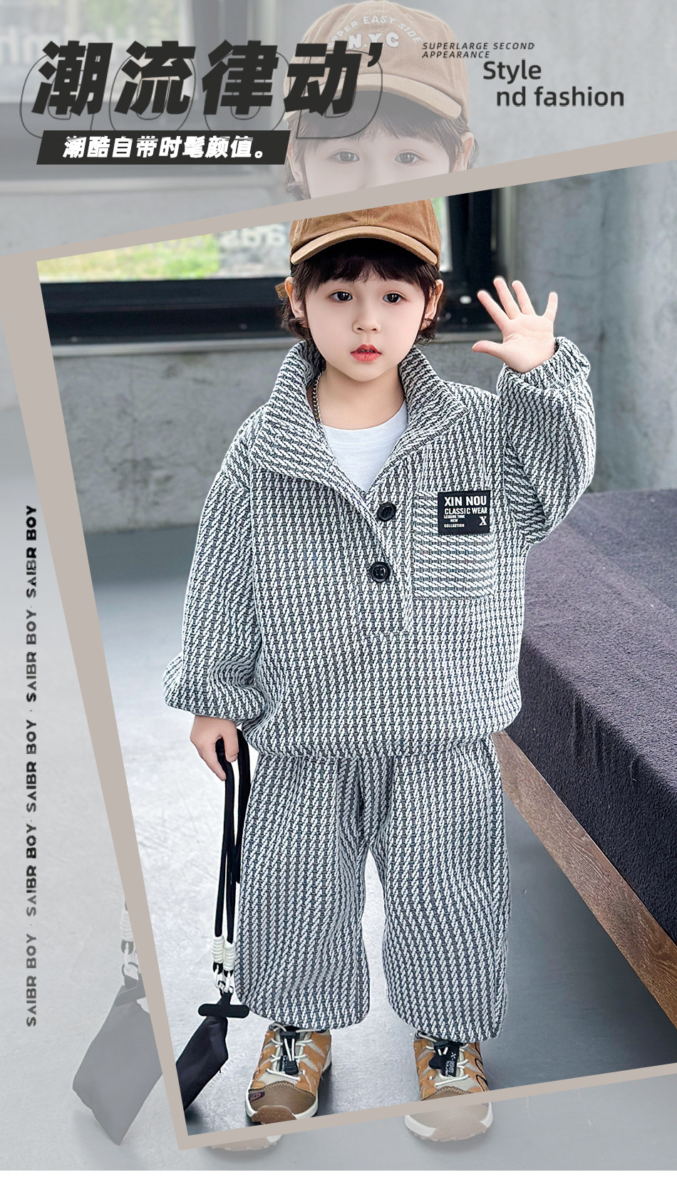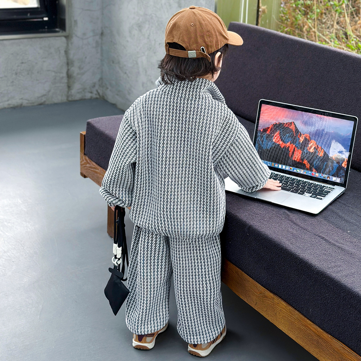 Boys' Houndstooth Suit Spring Outfit 2026 New Korean Style Cool Children's Clothing for Boys Spring and Autumn Two-Piece Trendy Set