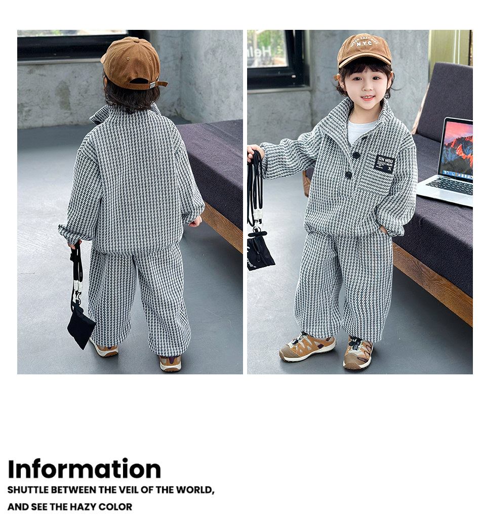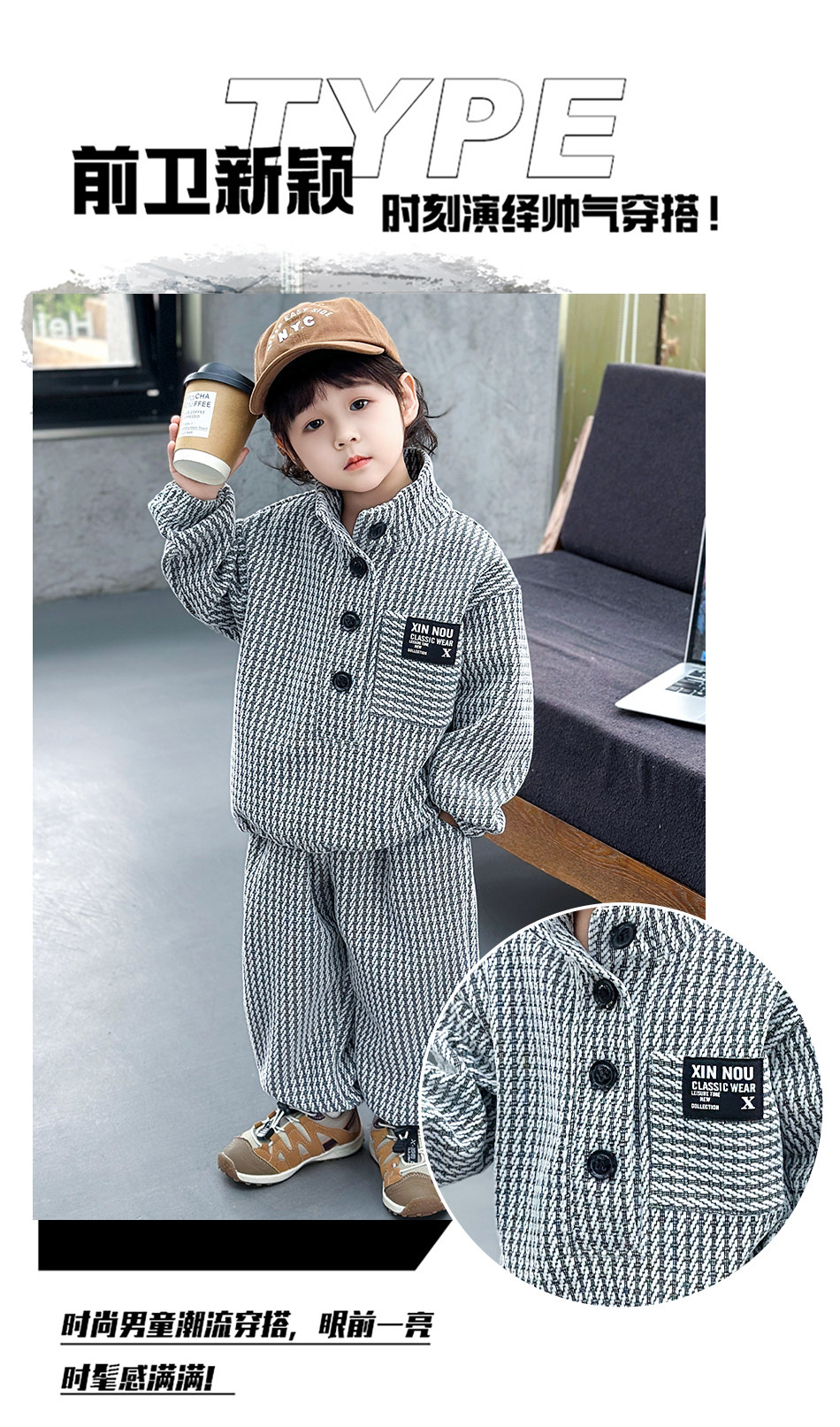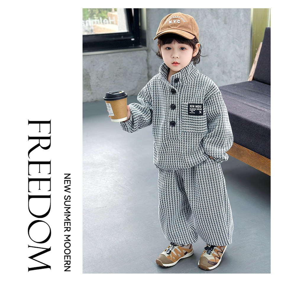 Boys' Houndstooth Suit Spring Outfit 2026 New Korean Style Cool Children's Clothing for Boys Spring and Autumn Two-Piece Trendy Set