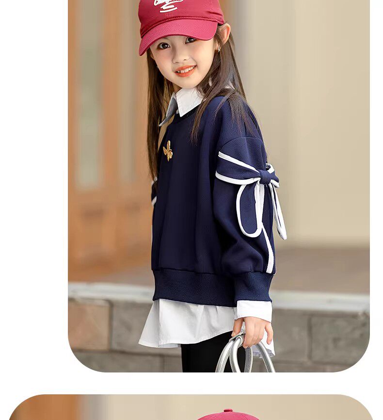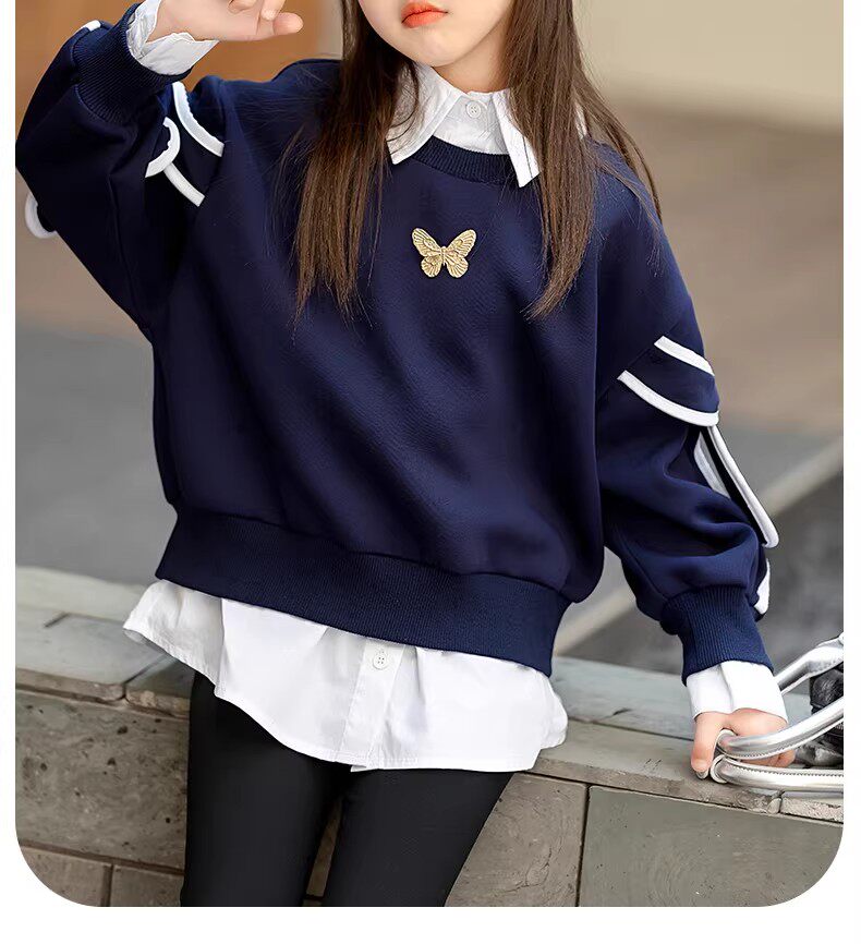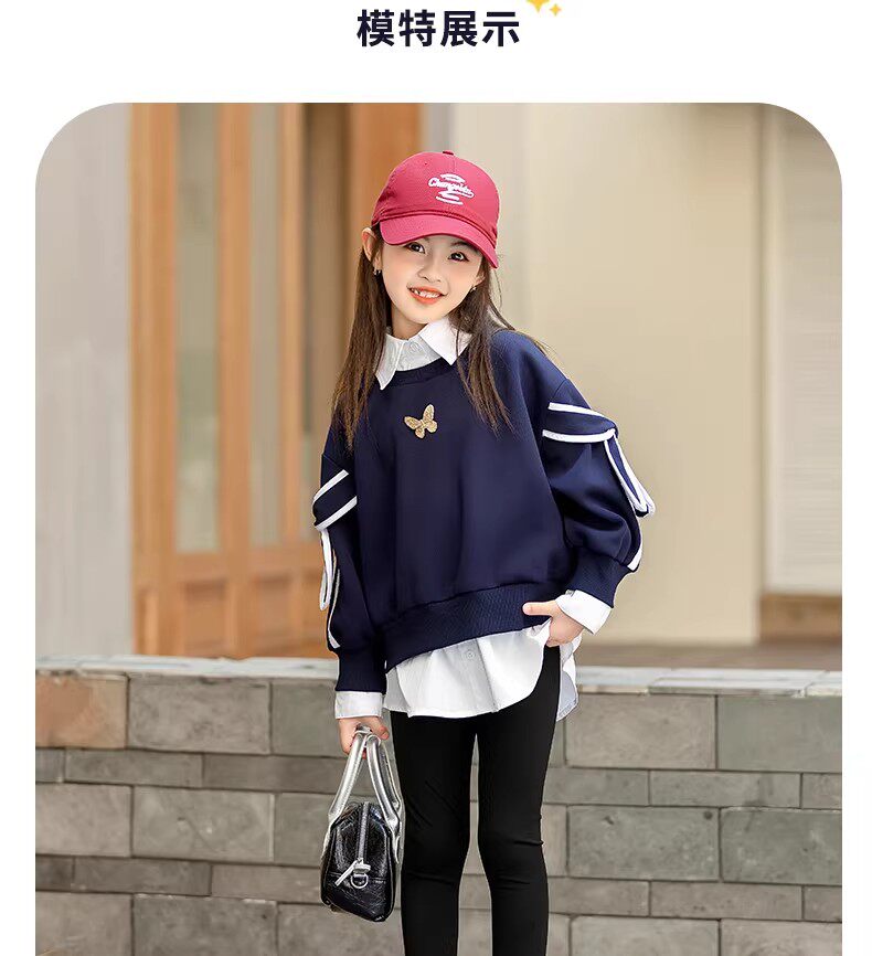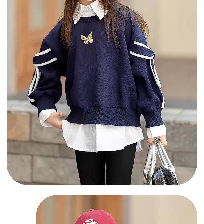 French style girls' spring sweatshirts, new fashionable big children's tops, children's early spring super good-looking girls, fashionable in spring and autumn