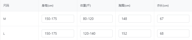 China (cm) 160-165/84-86 165-170 / 88-90 167-172 / 92-96 168-173 / 98-102 170-176 / 106-110