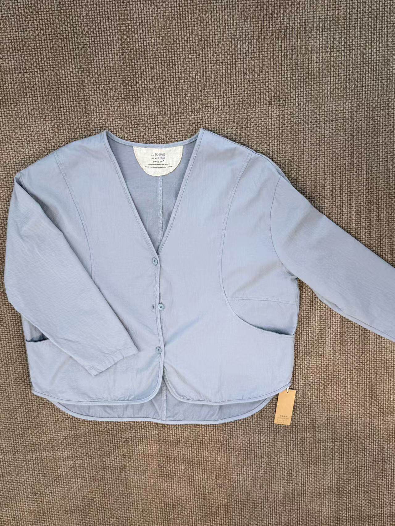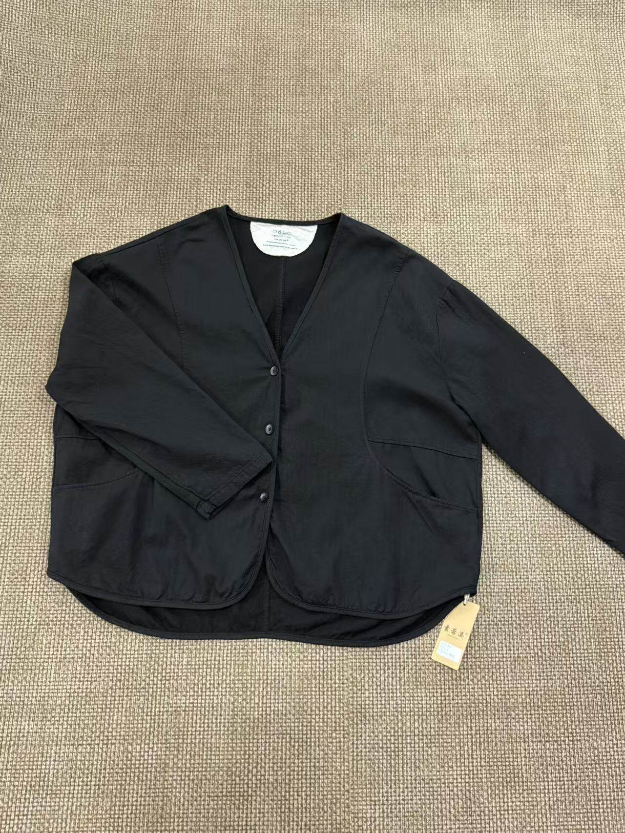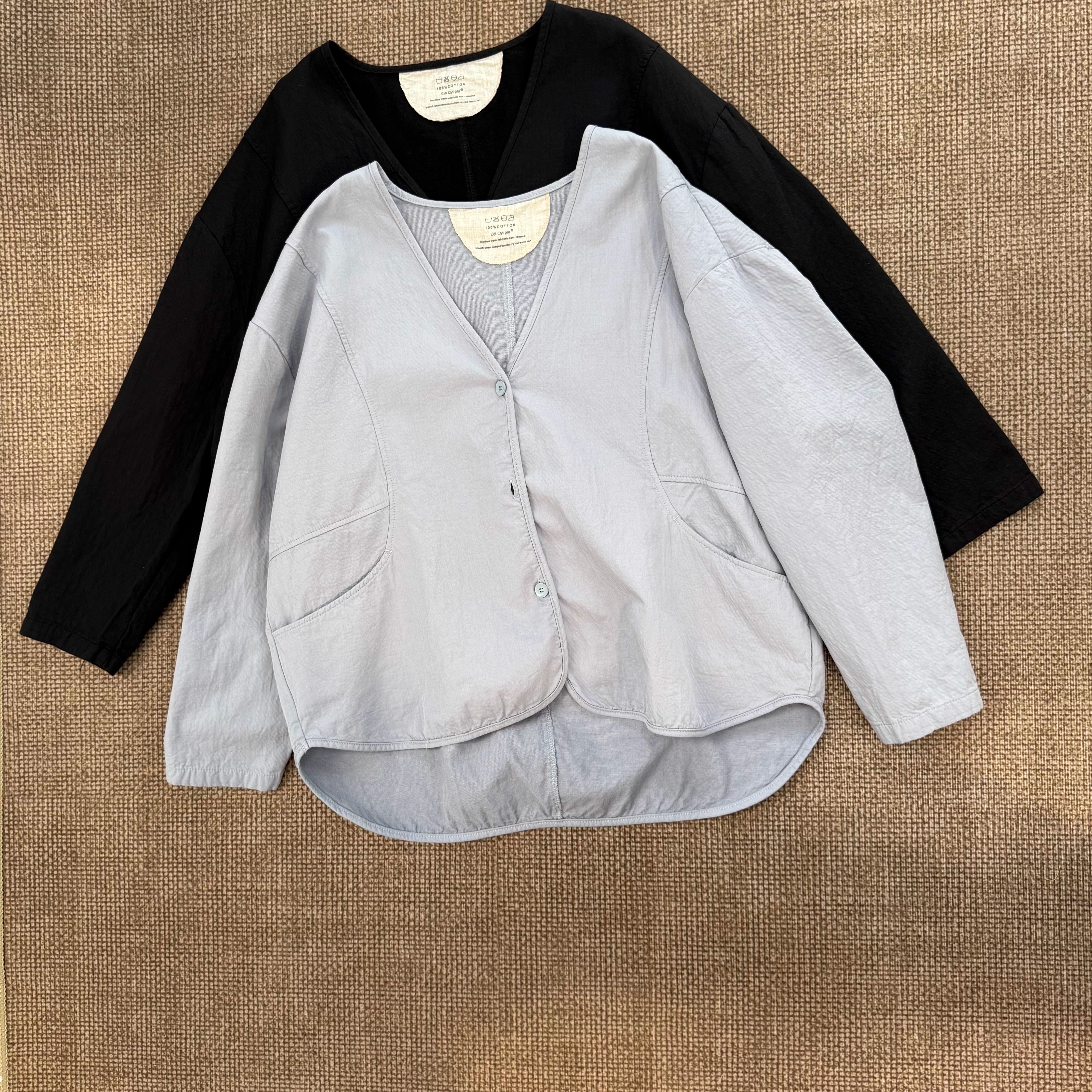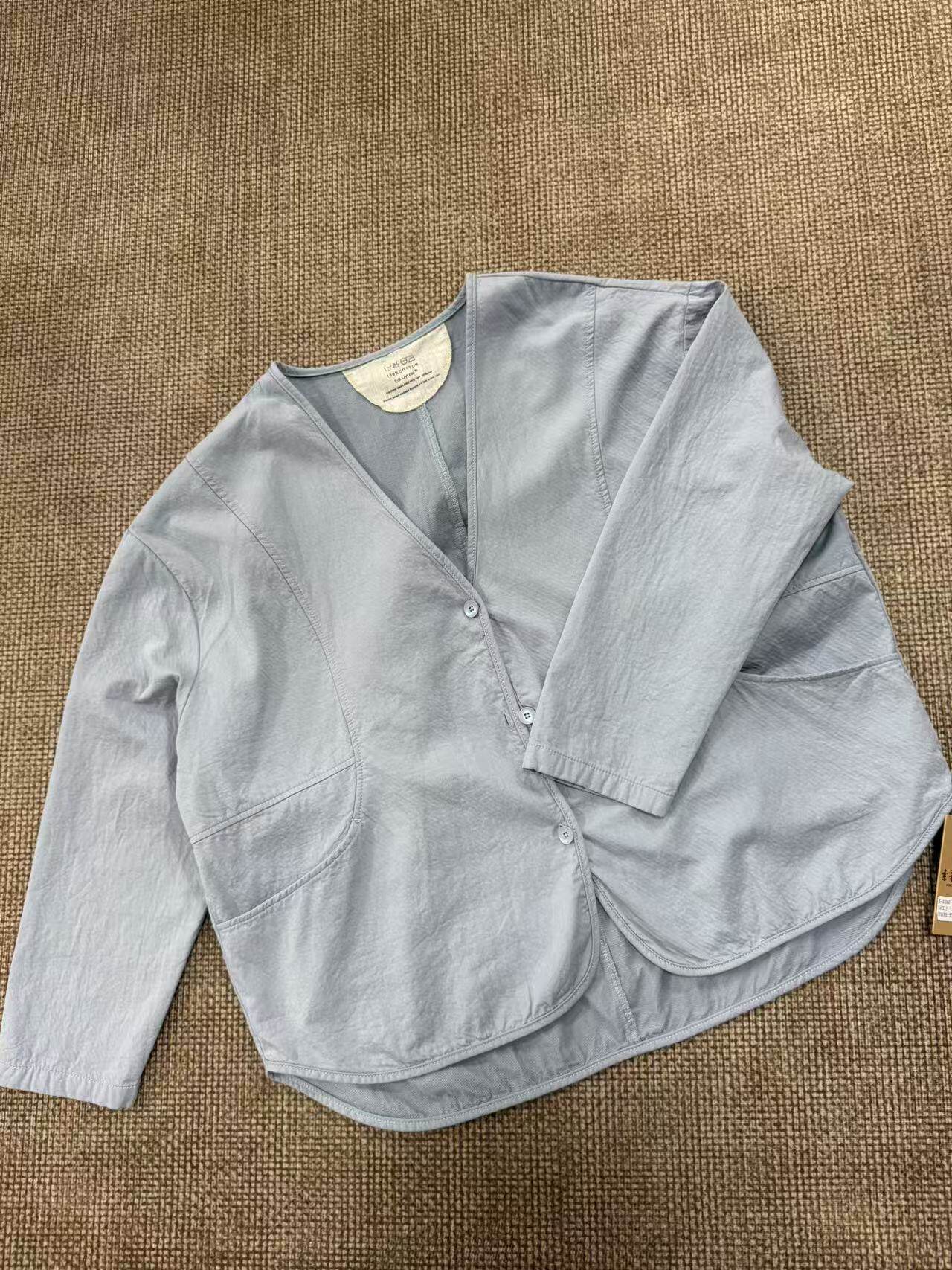 New Simple and Artistic V-Neck Pure Cotton Loose Casual Patchwork Cardigan Thin Jacket for Women 33060