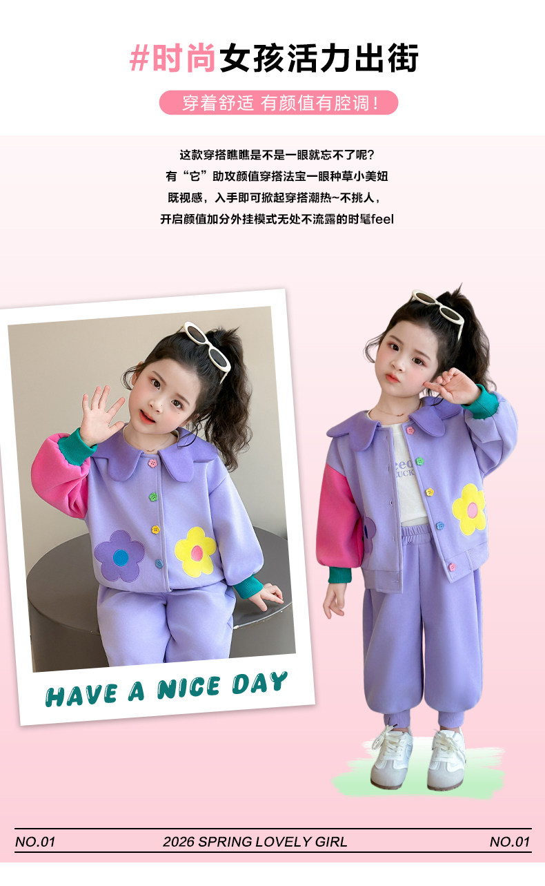 Girls' Spring Casual Outfit 2026 New Stylish Baby Girl Clothes Cute Children's Spring Sports Two-Piece Set