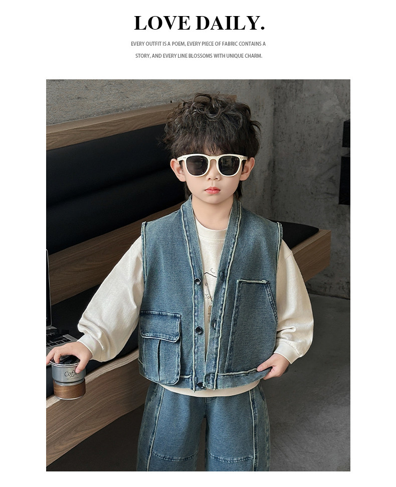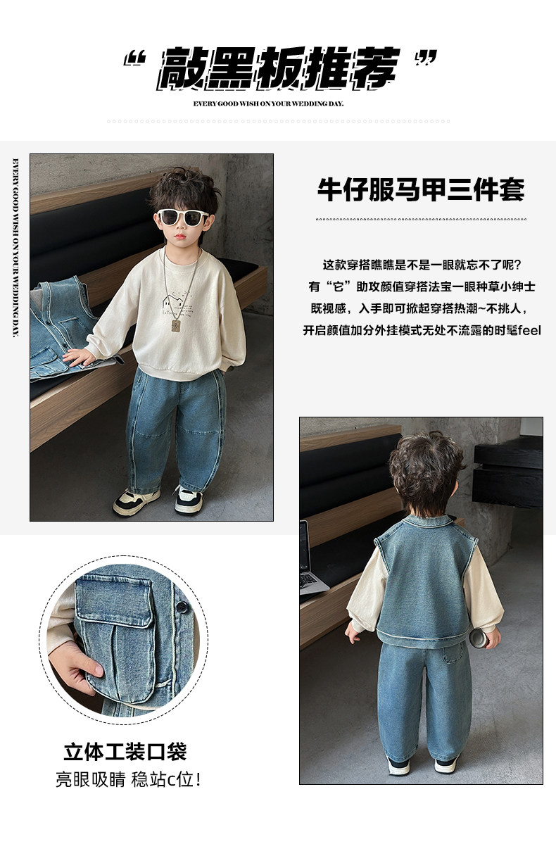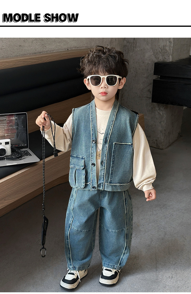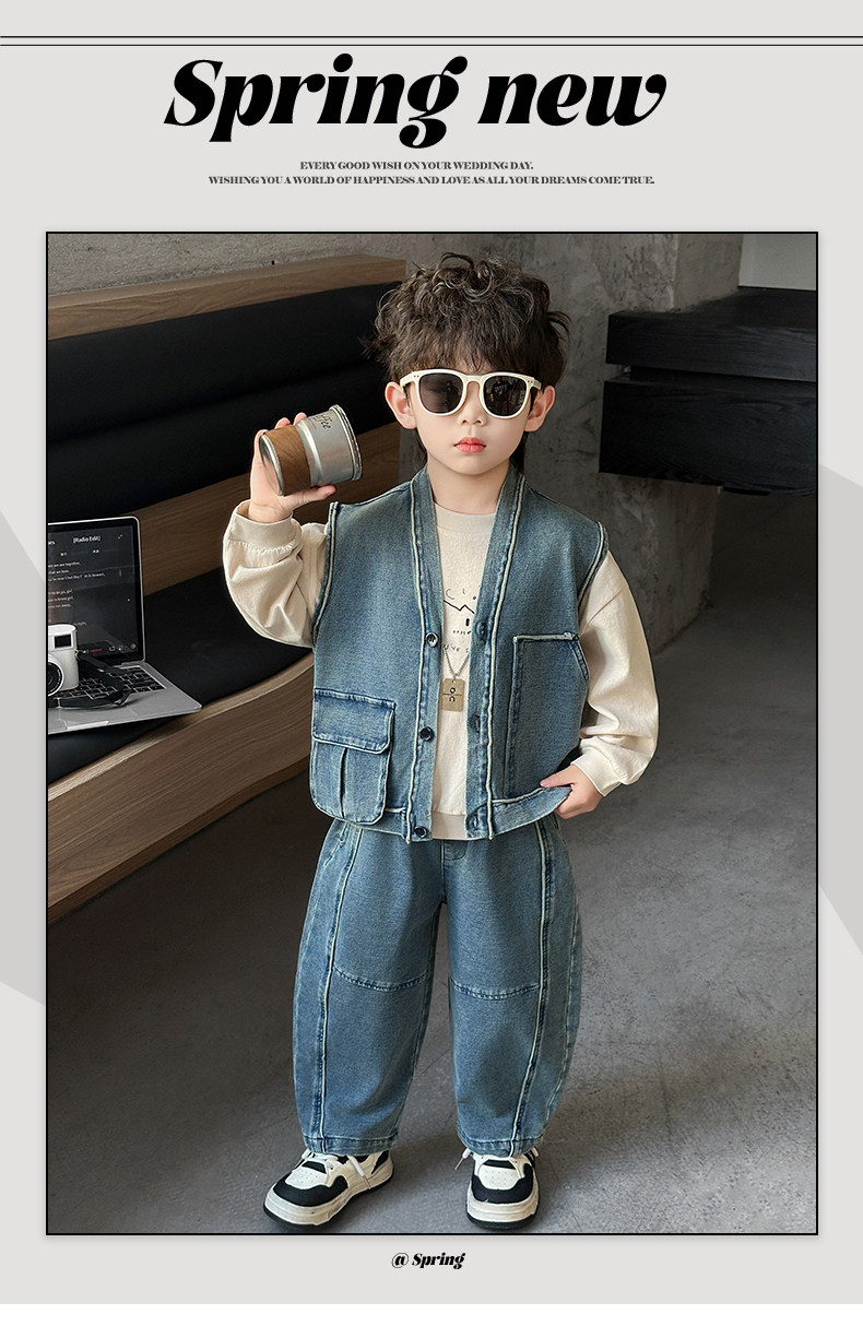 Boys' Three-Piece Vest Set, Thin Spring Outfit, 2026 New Spring and Autumn Fashion, Children's Korean-Style Trendy Denim Suit