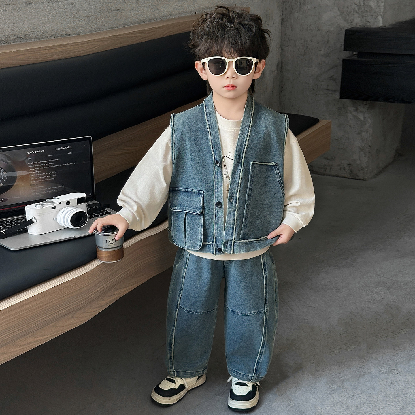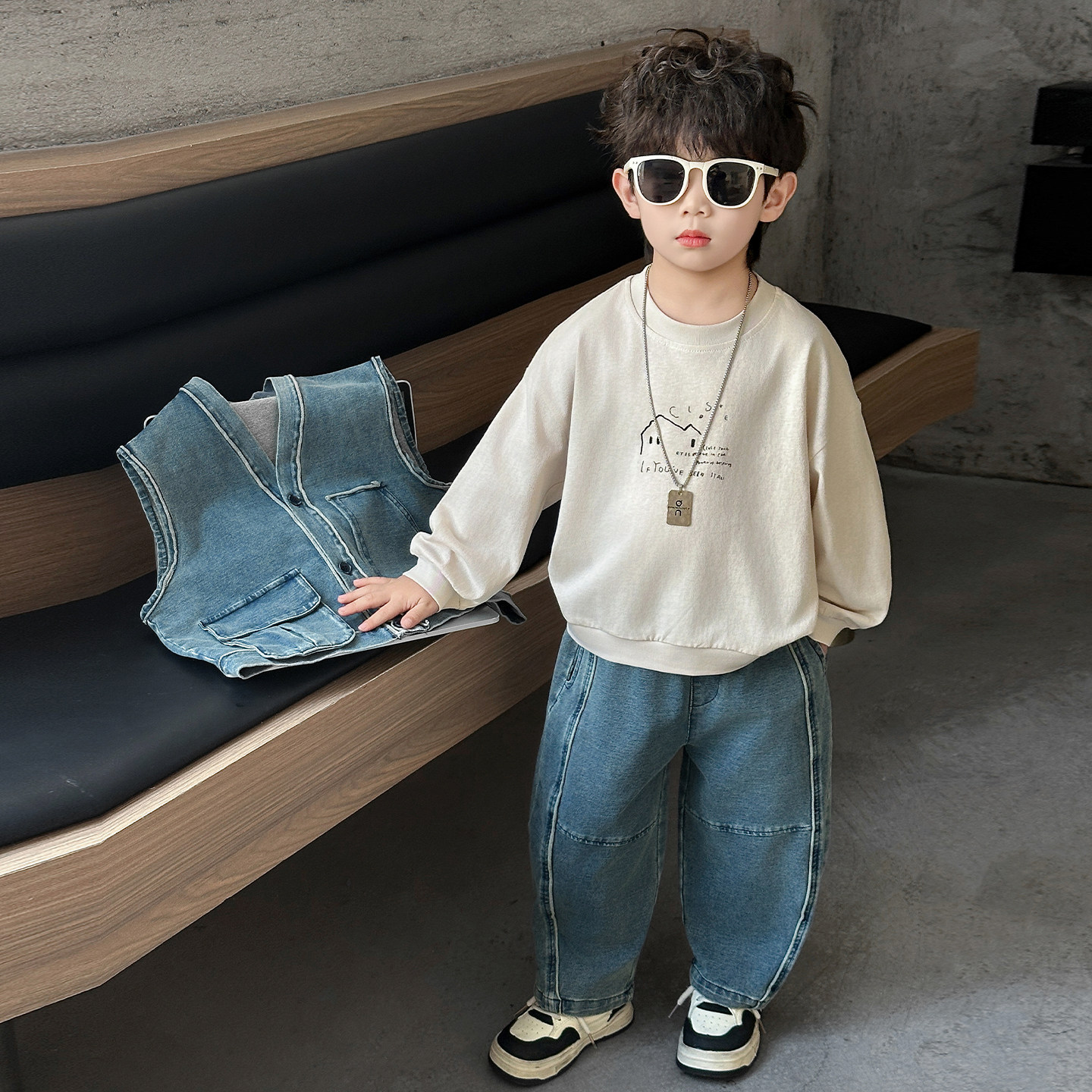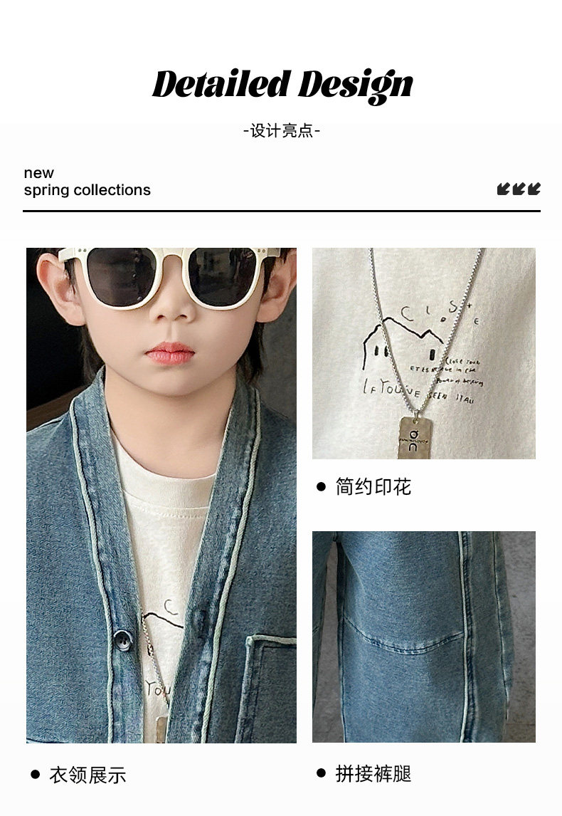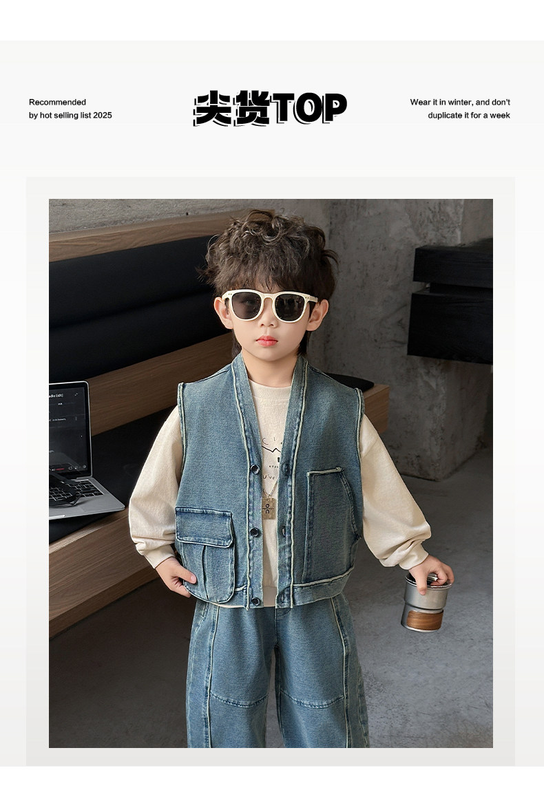 Boys' Three-Piece Vest Set, Thin Spring Outfit, 2026 New Spring and Autumn Fashion, Children's Korean-Style Trendy Denim Suit