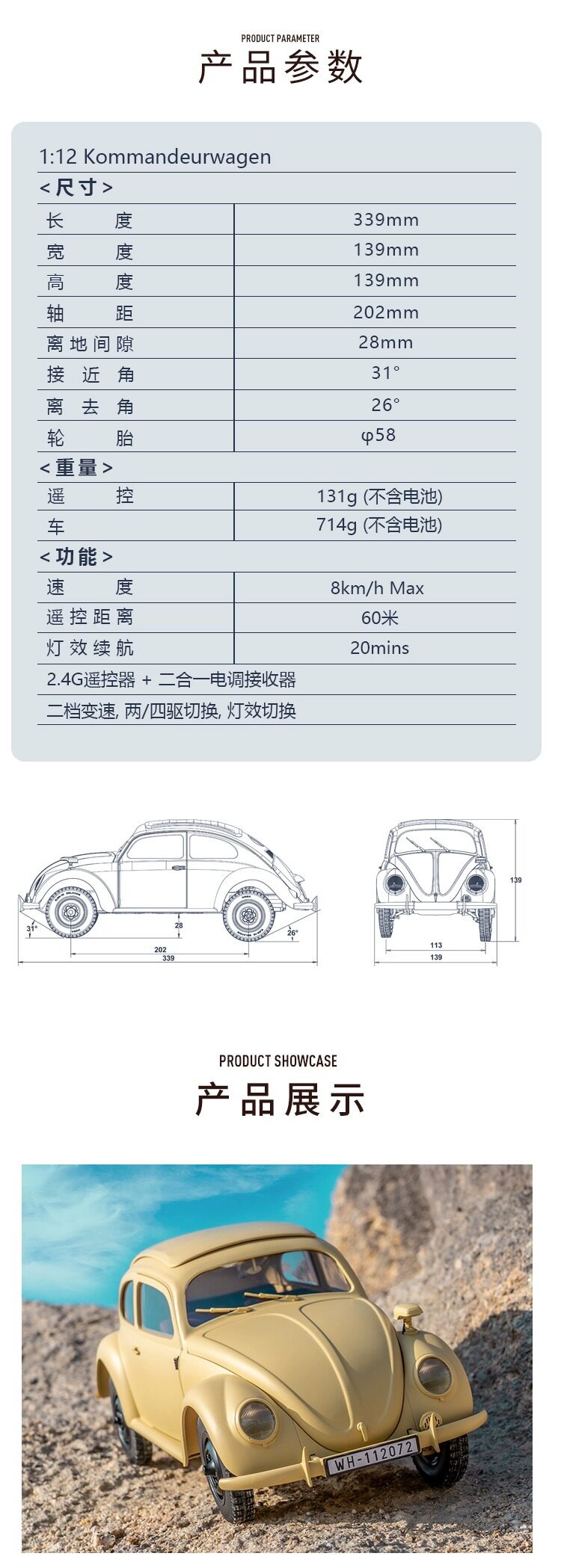 Fms1-12 Beetle Rc Remote Control Electric Model Car, Realistic Retro Climbing Car, Collectible Gift Model