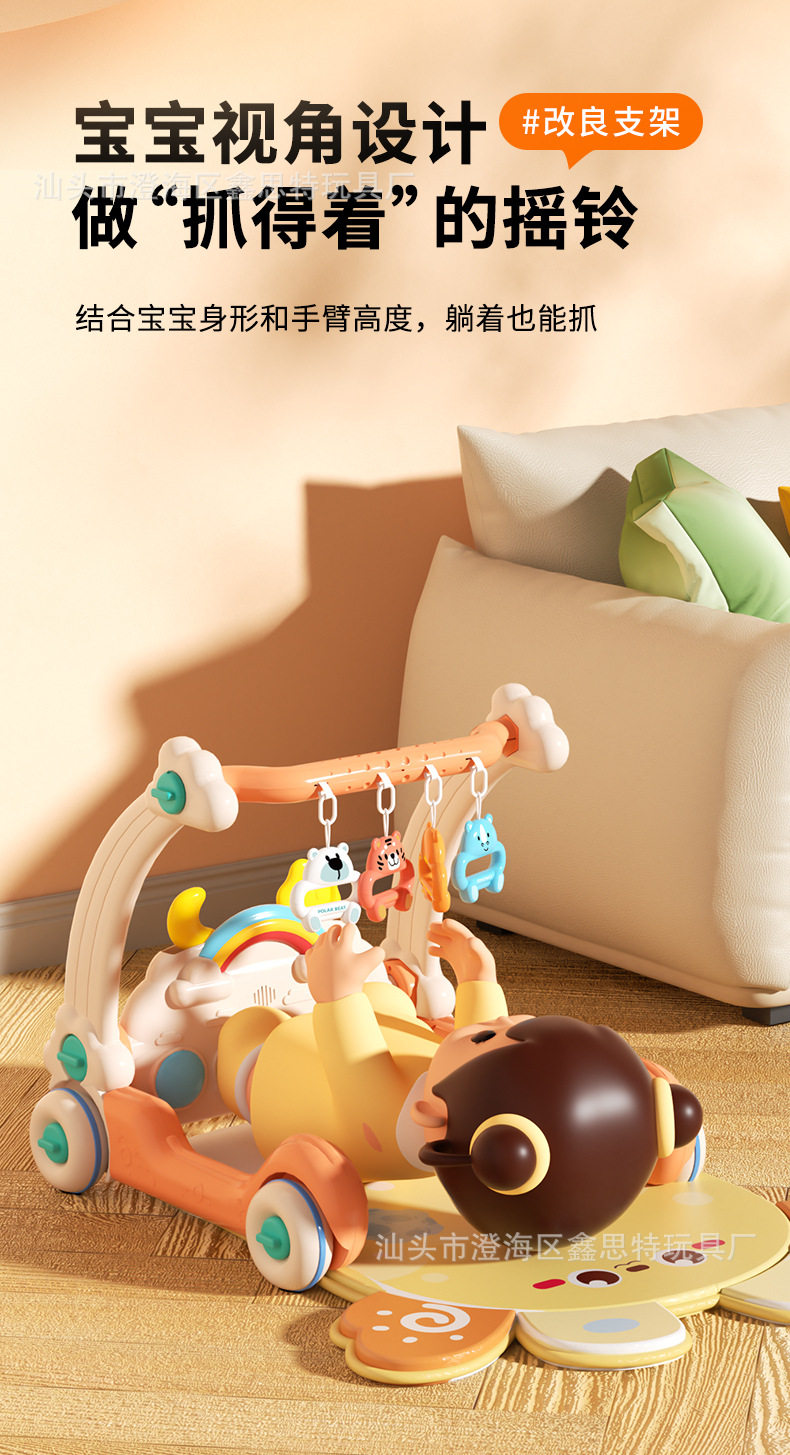 Baby Pedal Piano Fitness Stand and Walker Two-In-One Remote Control Newborn Baby Pedal Piano Toy