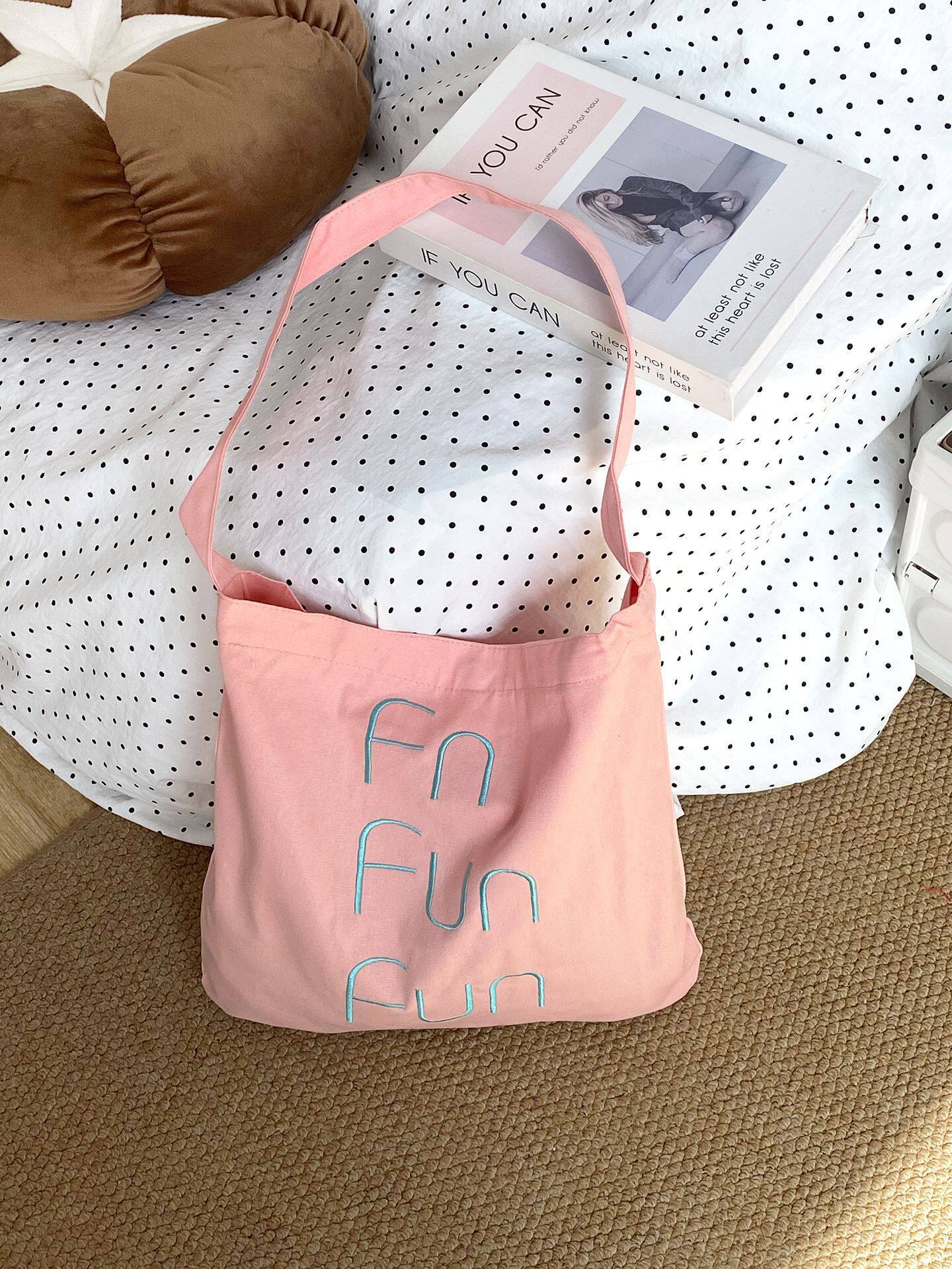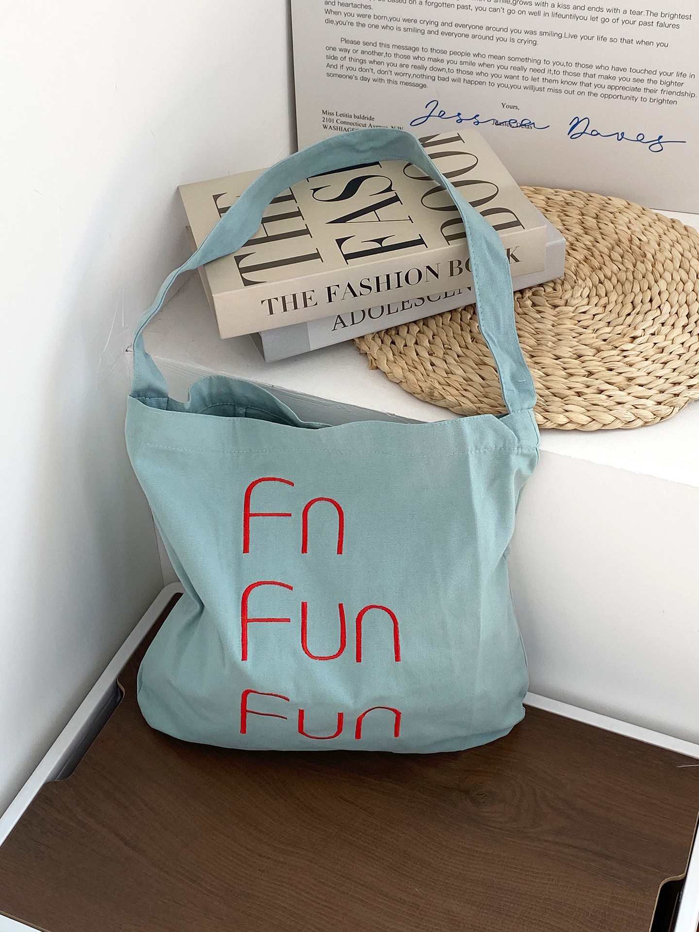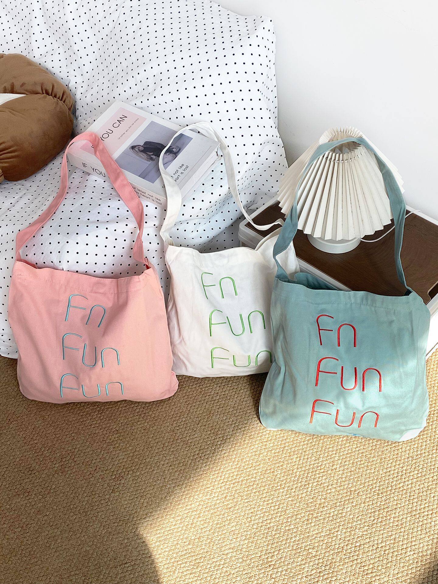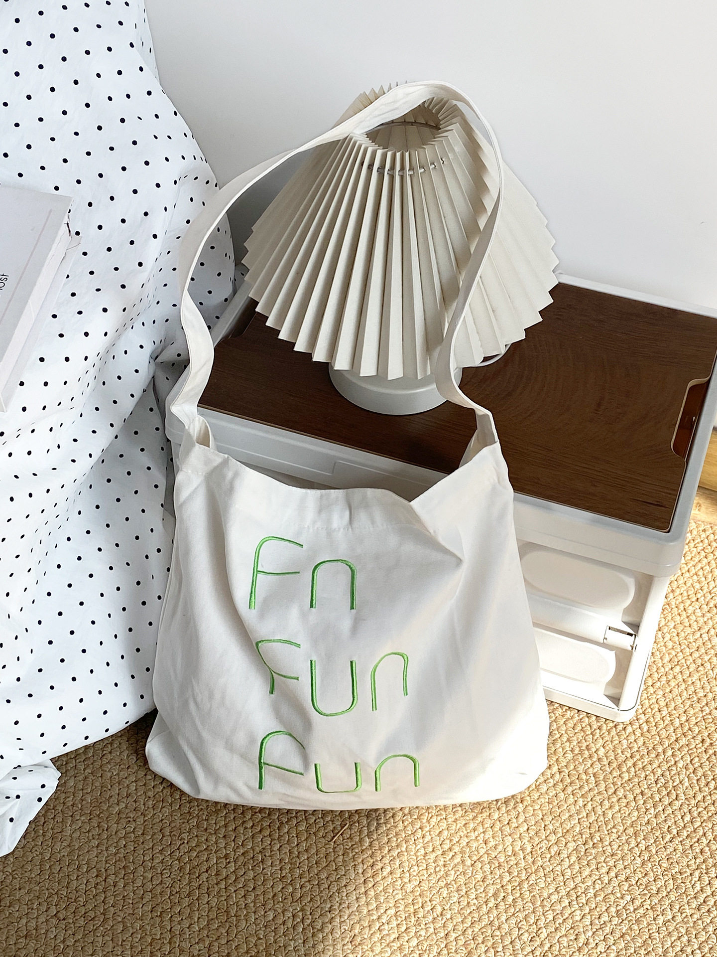 New style letter embroidered one shoulder strap canvas bag for early spring, fresh and sweet, girly heart, versatile commuting shoulder bag