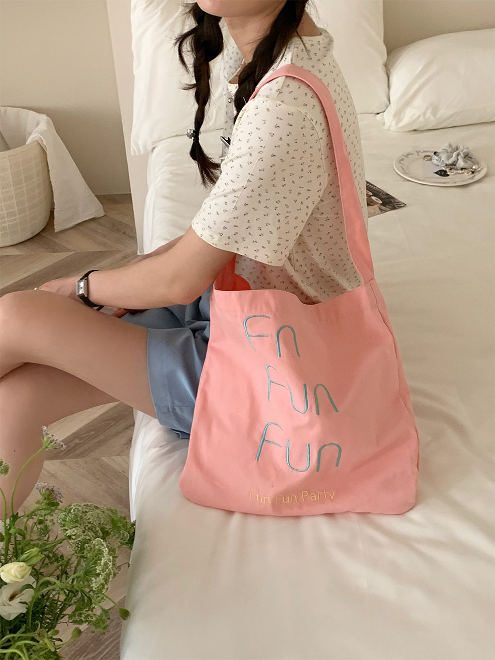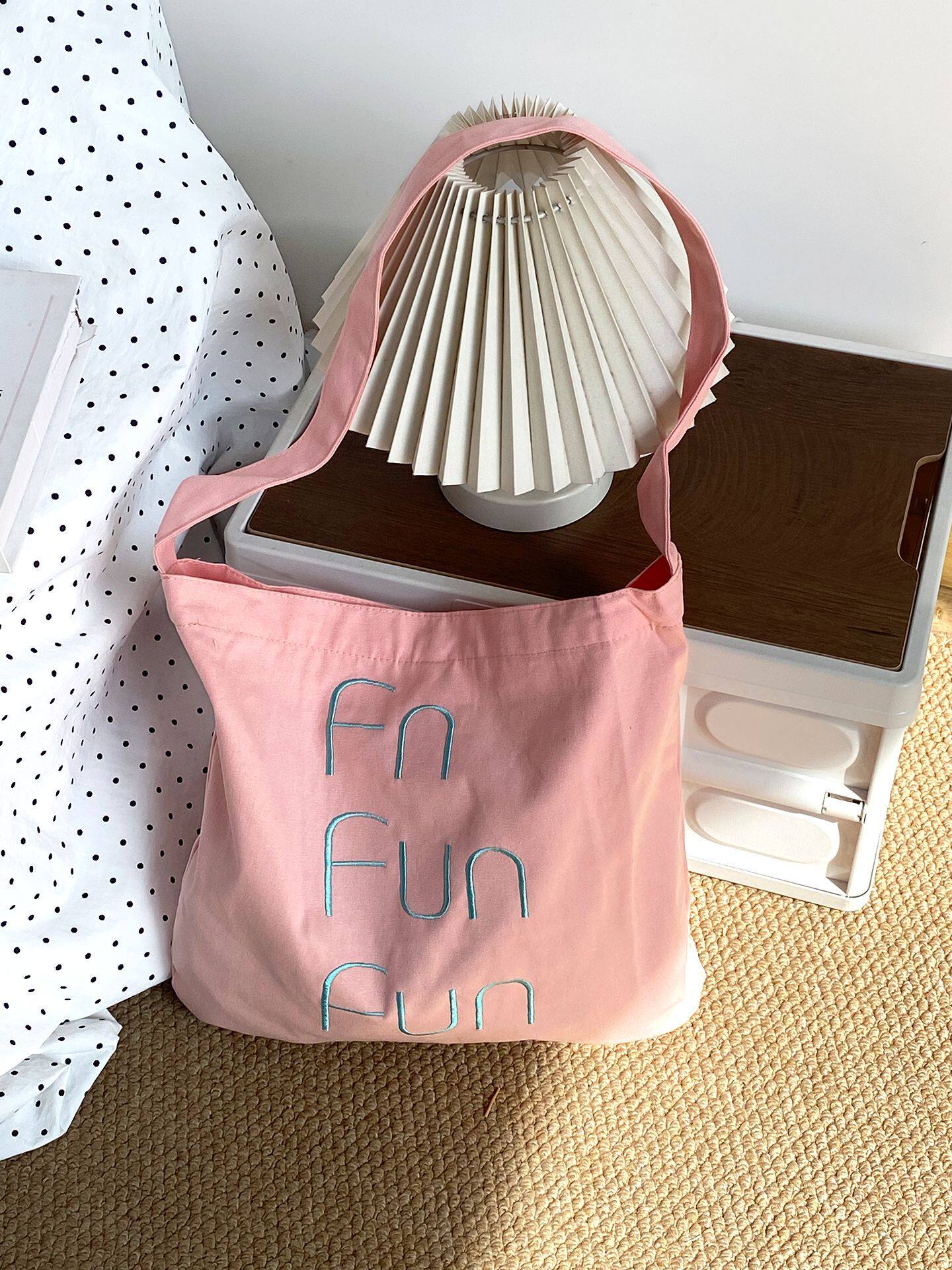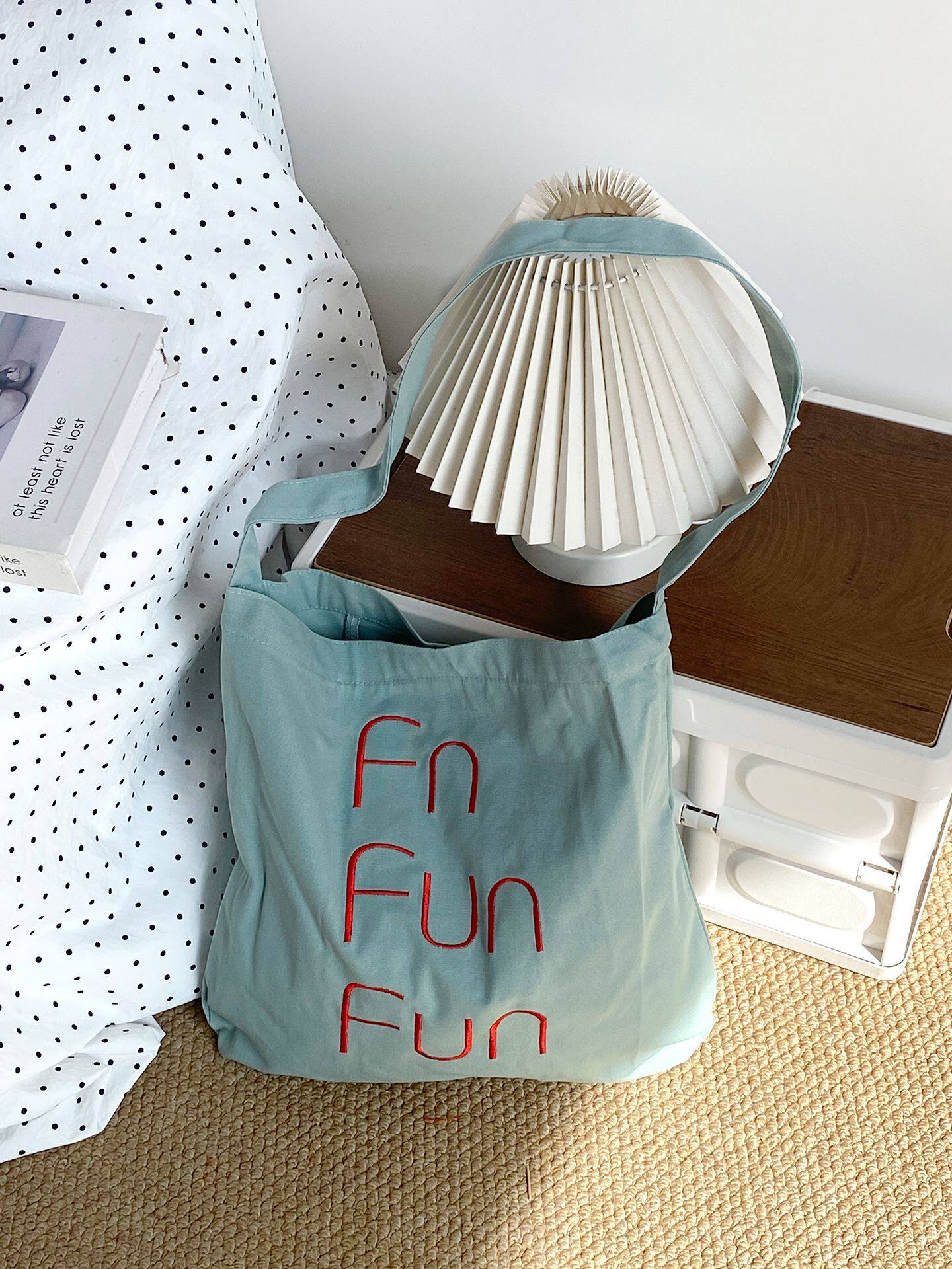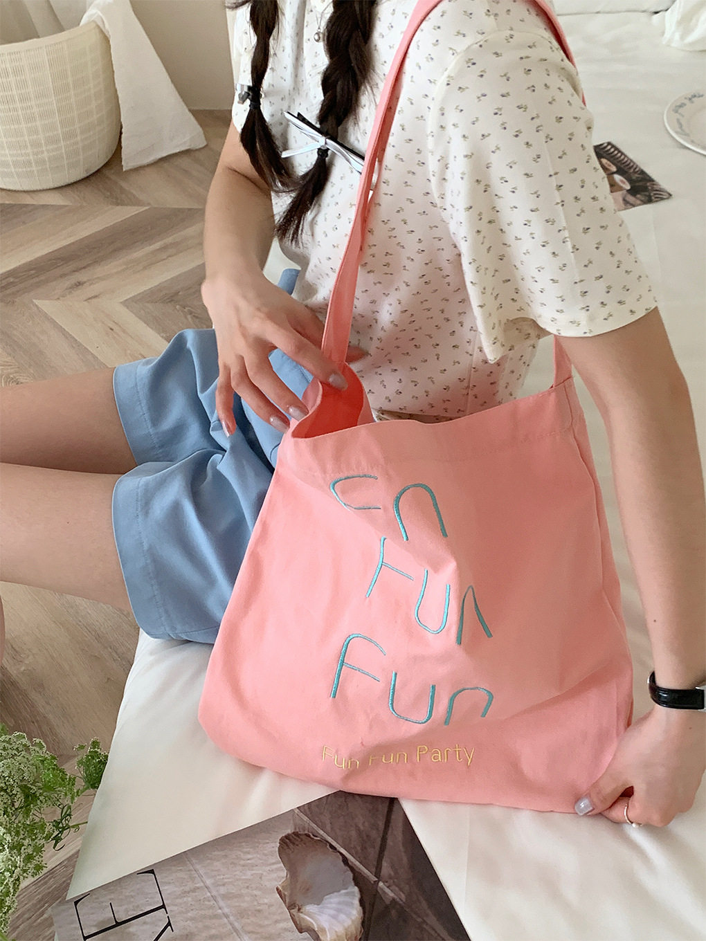 New style letter embroidered one shoulder strap canvas bag for early spring, fresh and sweet, girly heart, versatile commuting shoulder bag
