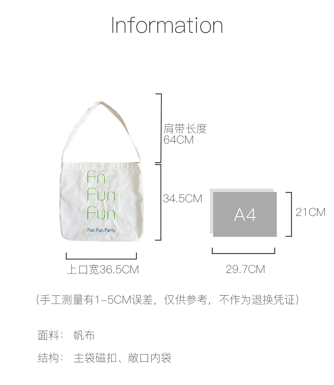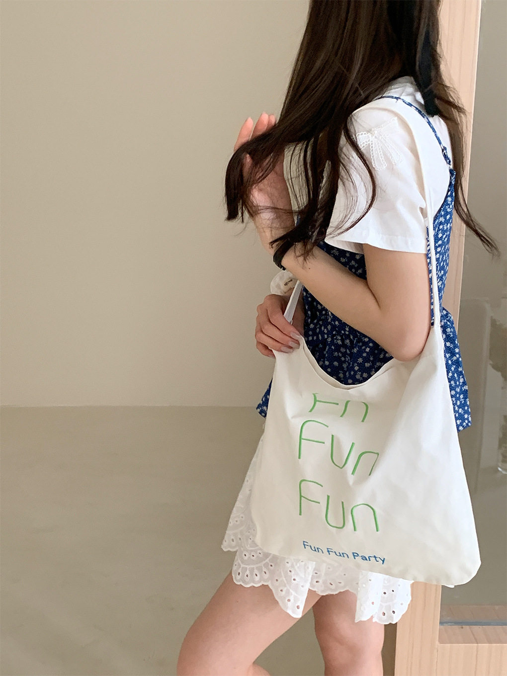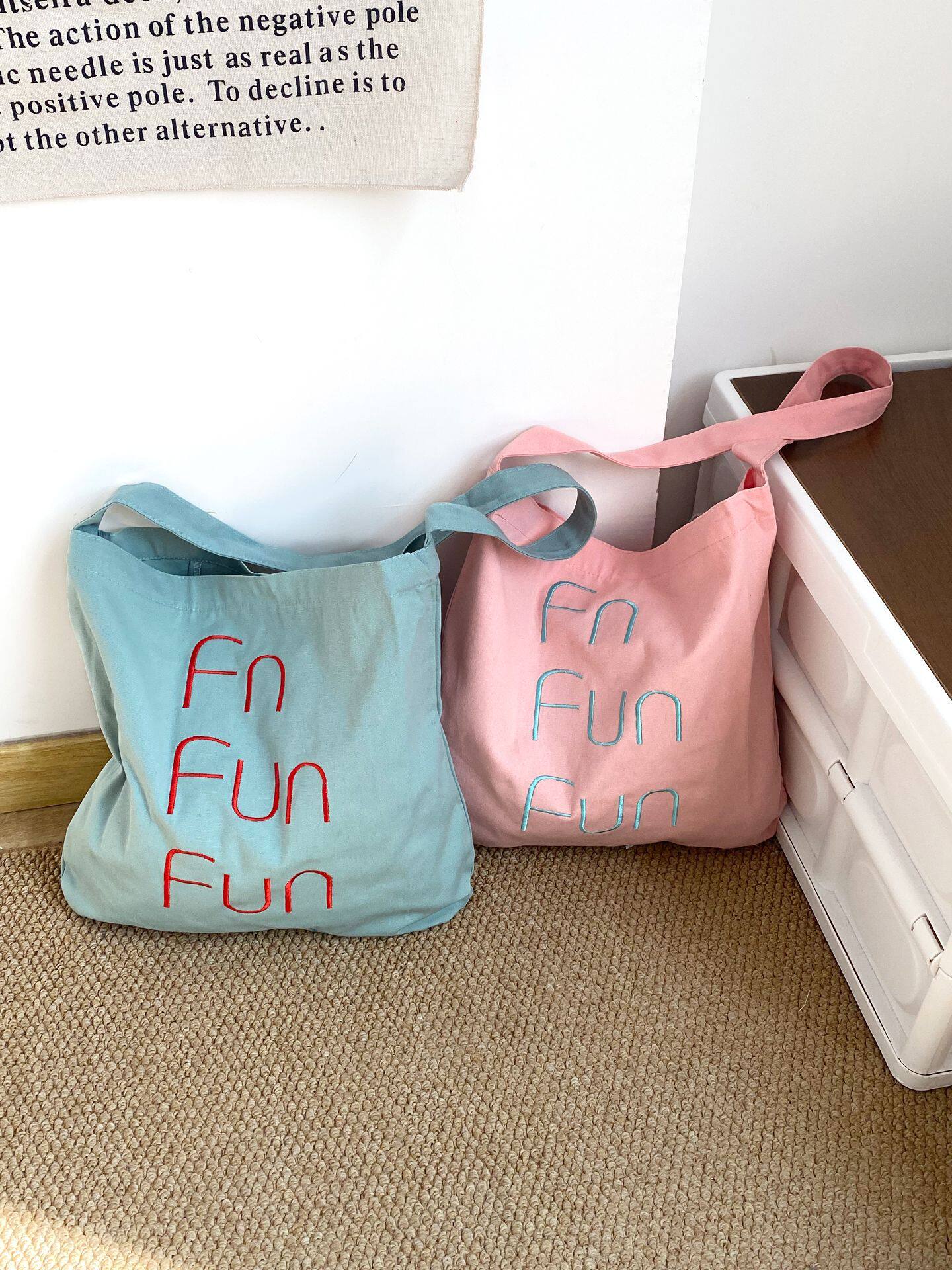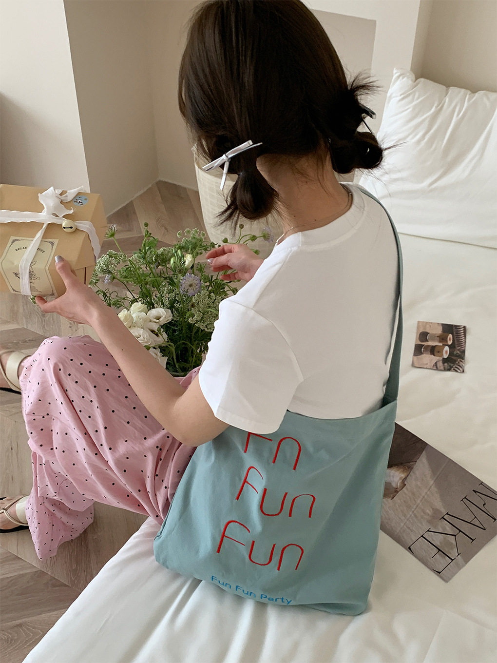 New style letter embroidered one shoulder strap canvas bag for early spring, fresh and sweet, girly heart, versatile commuting shoulder bag
