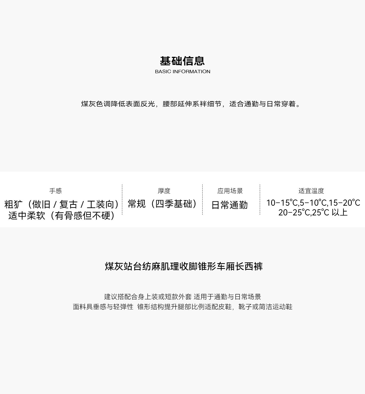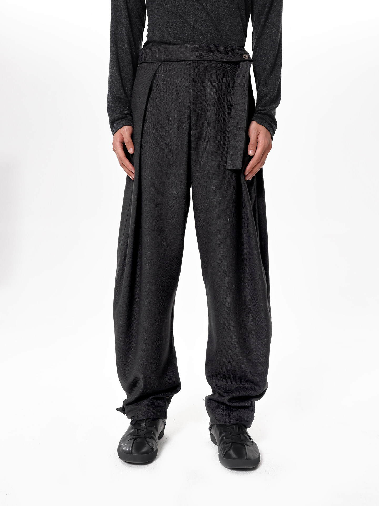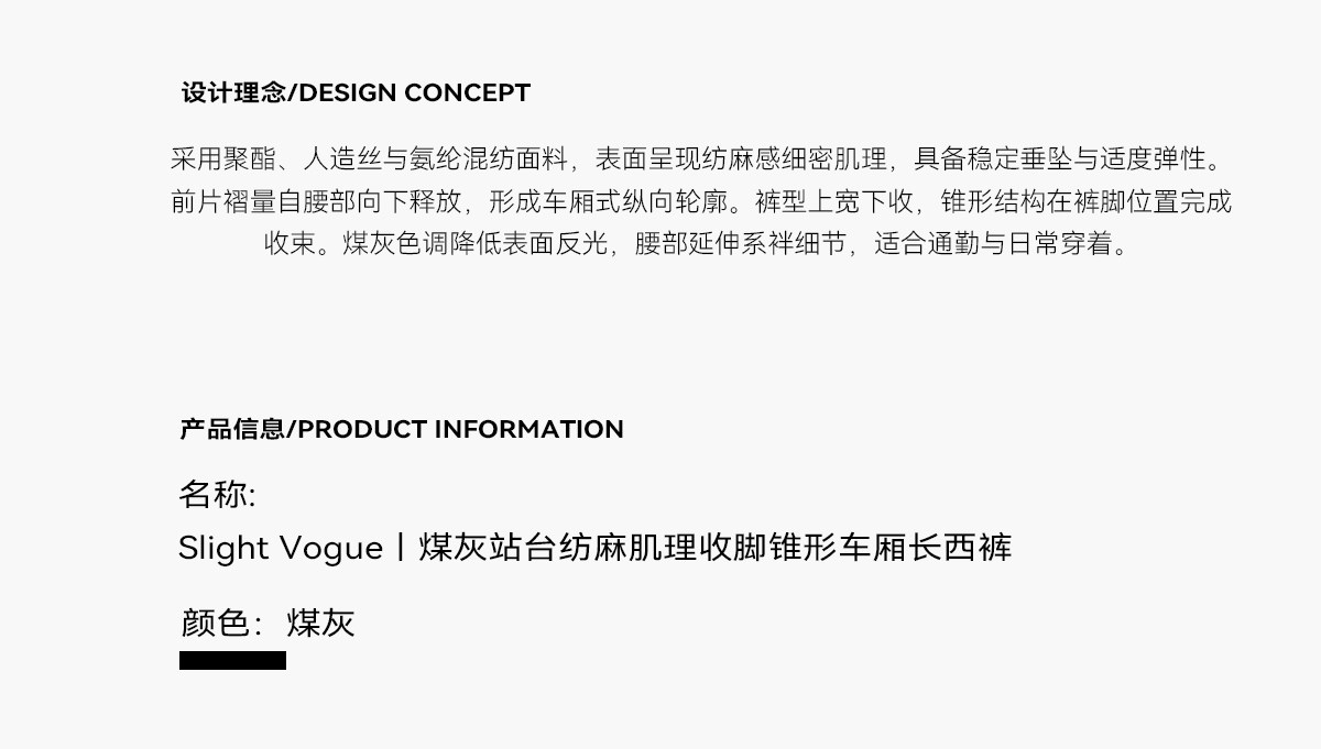 Slight Vogue丨Coal gray platform woven linen texture tapered leg trousers