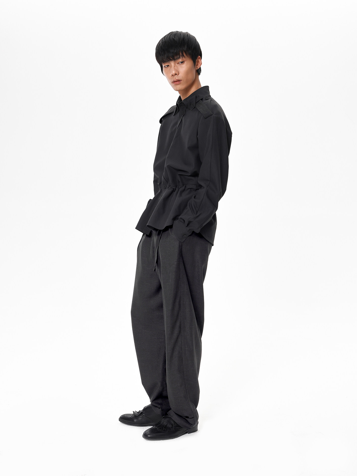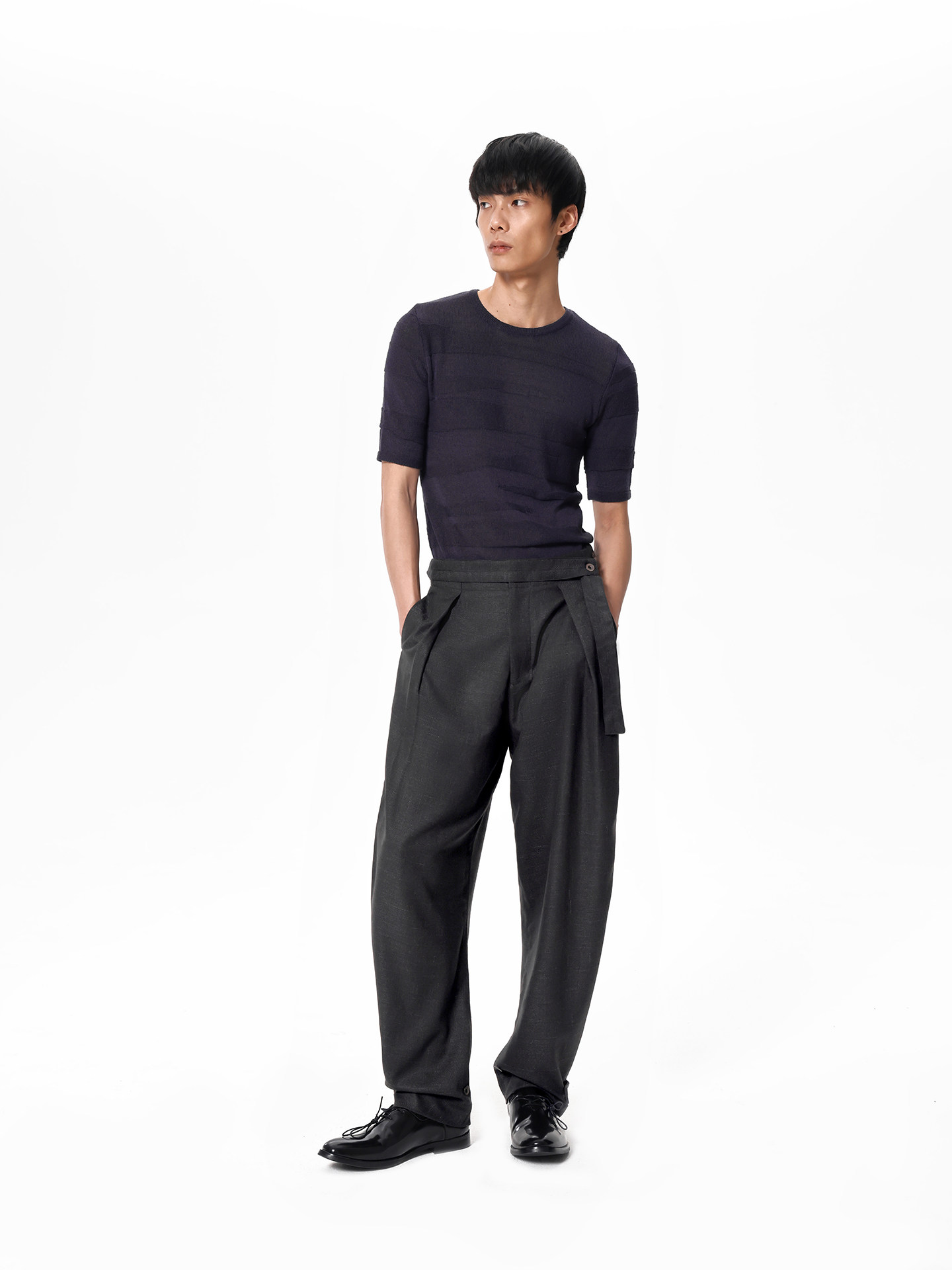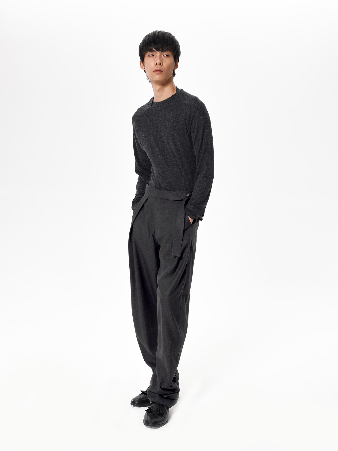 Slight Vogue丨Coal gray platform woven linen texture tapered leg trousers