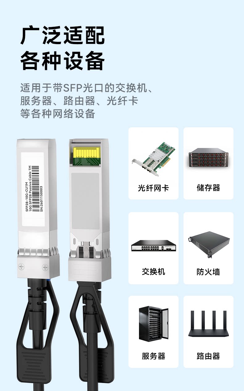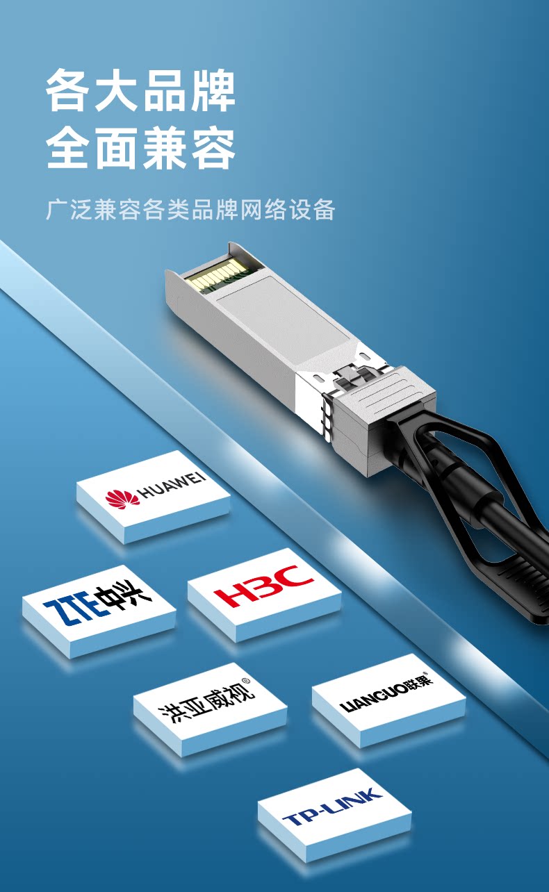 Hongyawei 10g Sfp+ Dac High-Speed Cable 10G/25G/40G/100G Stacking Cable Fiber Optic Cable Direct Connection Copper Cable Patch Cord Module Compatible with Huawei H3C Zte Tp Switches
