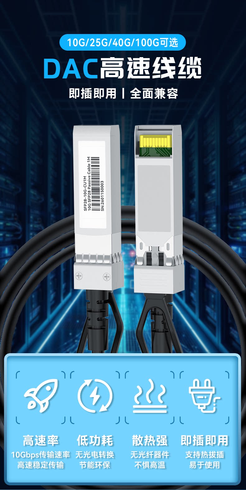 Color Classification 10g Dac High Speed Cable,25g Dac High Speed Cable,40g Dac High Speed Cable,100g Dac High Speed Cable