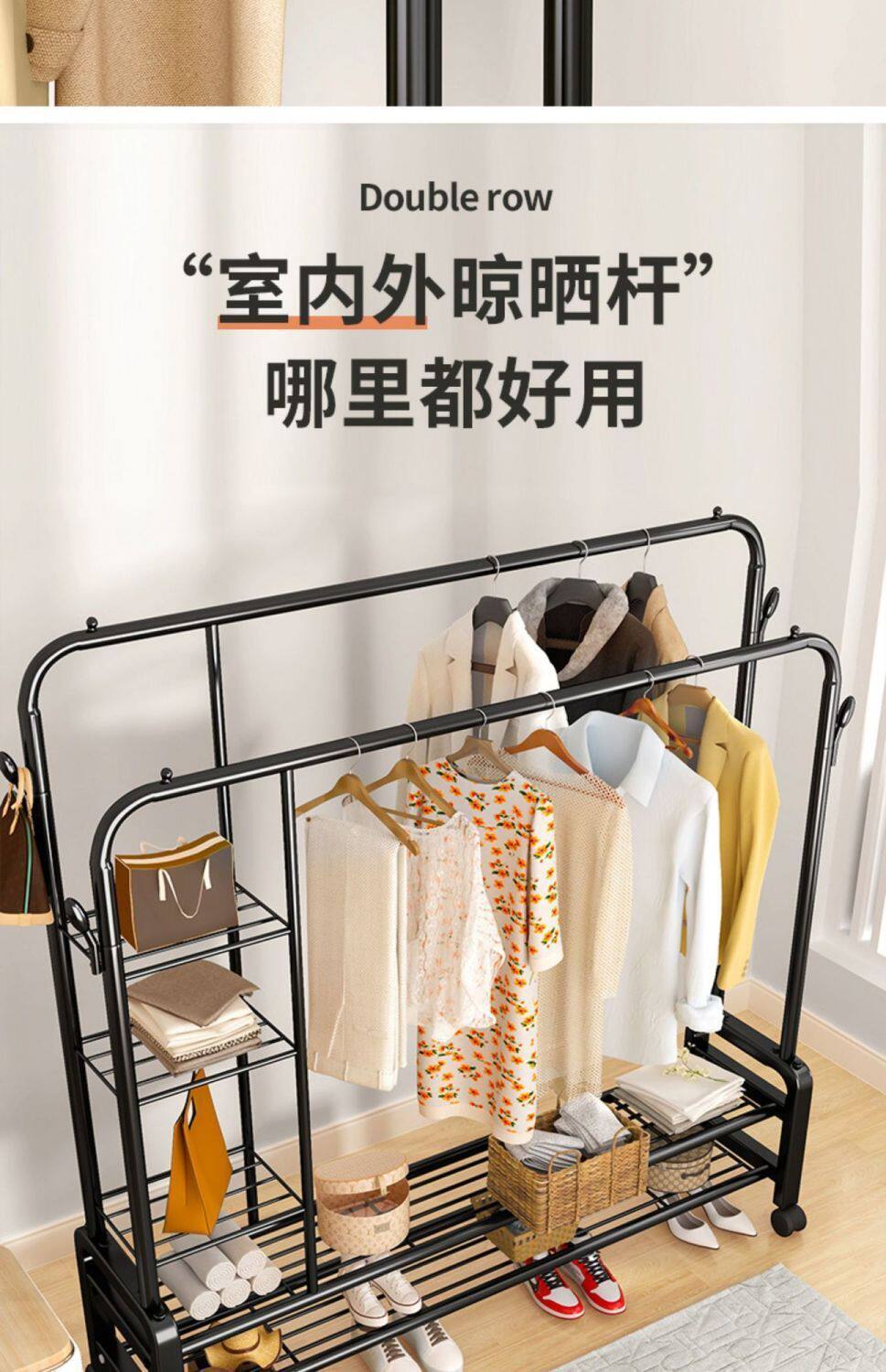 Floor-Standing Clothes Rack for Bedroom, Movable with Wheels, Home Use, Living Room, Trendy Light Luxury Clothes Drying Rack