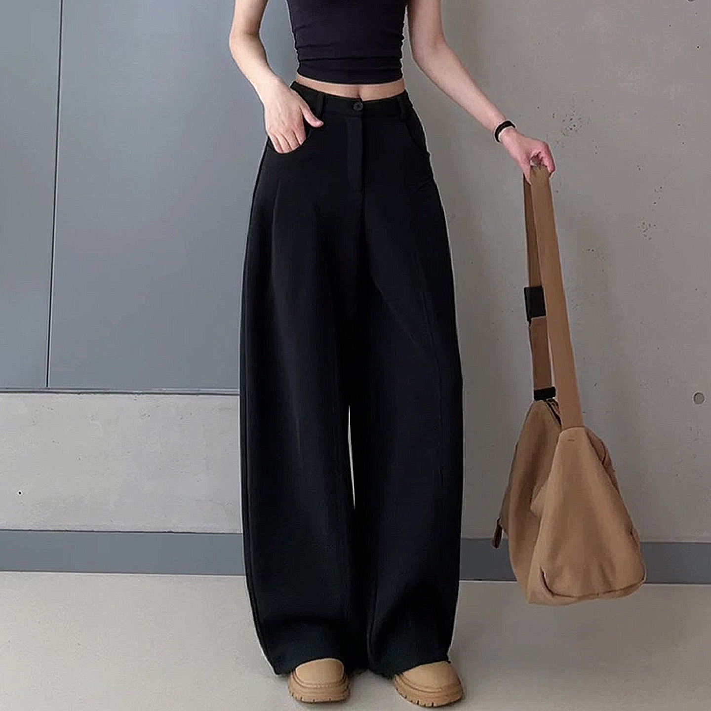 2026 Spring/Summer New Trendy Pants Black Wide-Leg Pants Simple Relaxed Loose Versatile Slimming Casual Long Pants