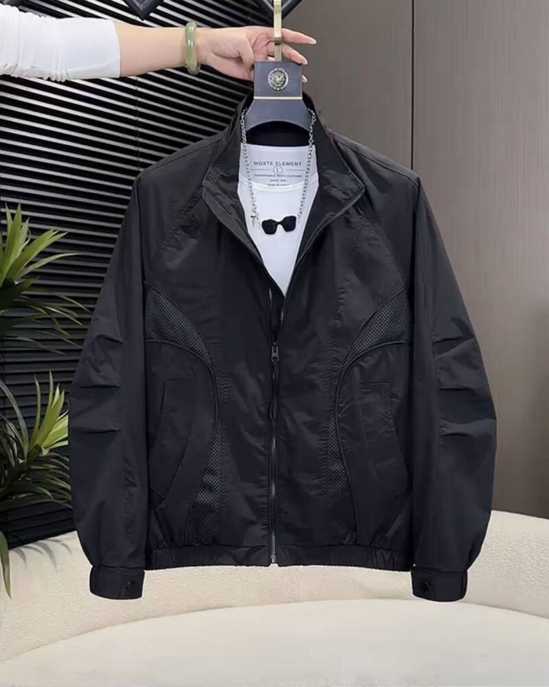 Jeep Jeep Spirit Stand-Up Collar Work Jacket for Men, Spring and Autumn Simple Style Loose Splicing Design Outerwear