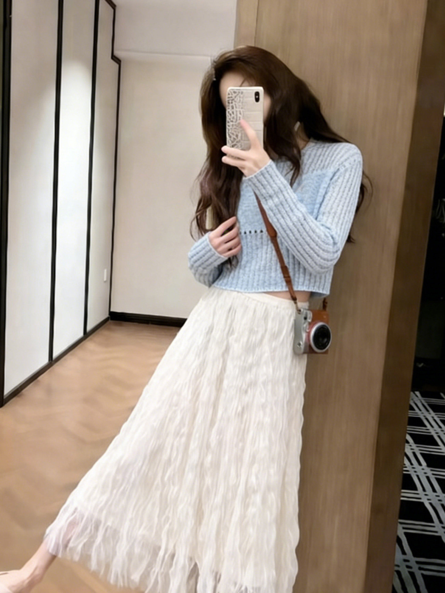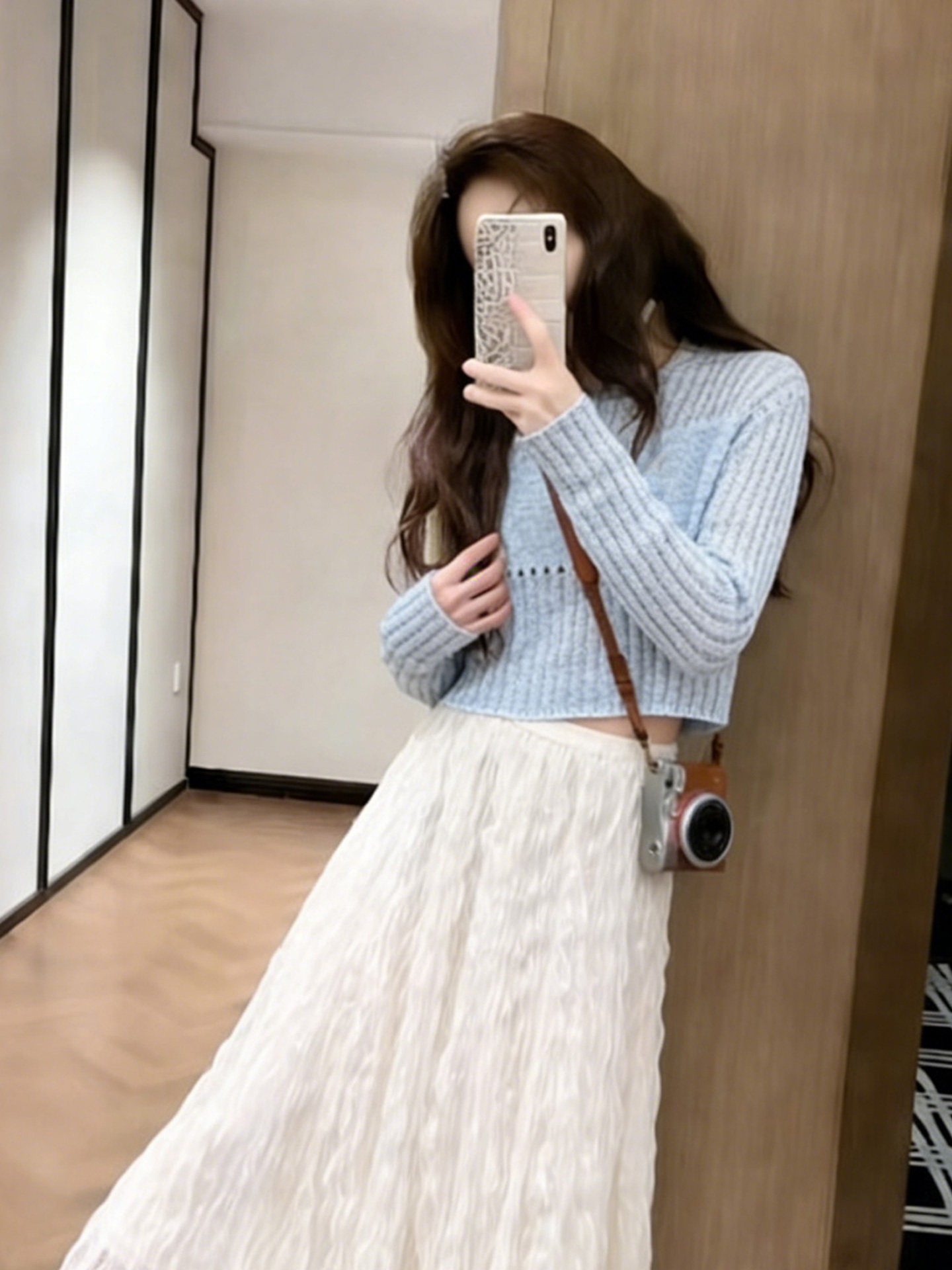 2026 super popular early spring complete set of ootd outfits with temperament and versatile light blue short sweater and skirt suit