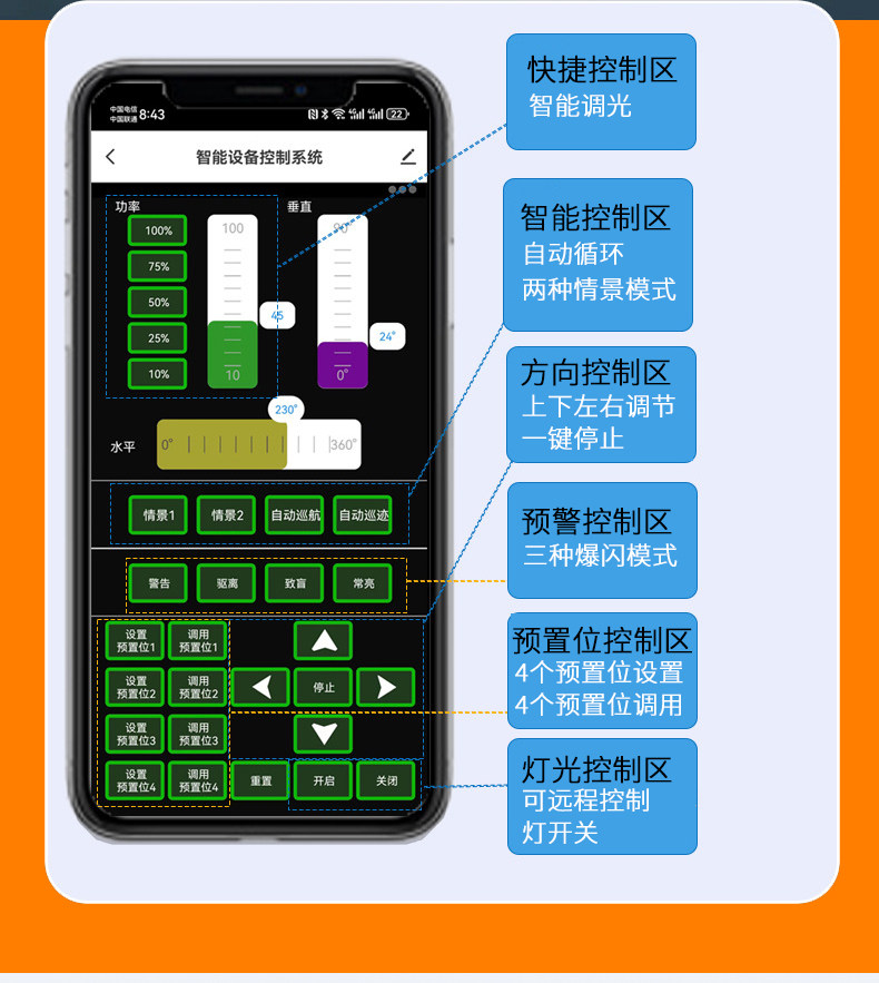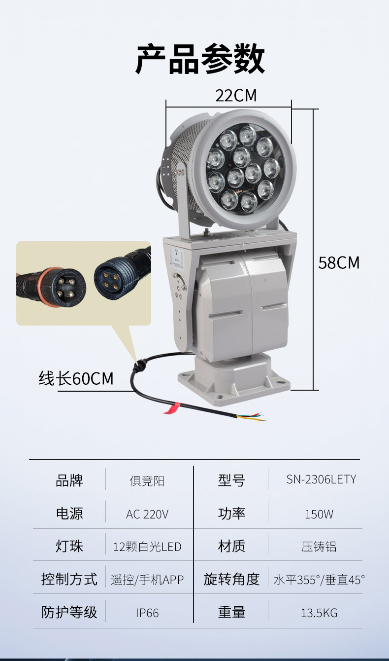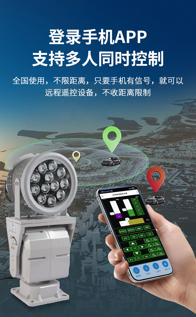 Remote Control/App Remote-Controlled Automatic Cruise Searchlight 220V, Suitable for Orchards, Reservoirs, Ports, with Spotlight Long-Range Capability