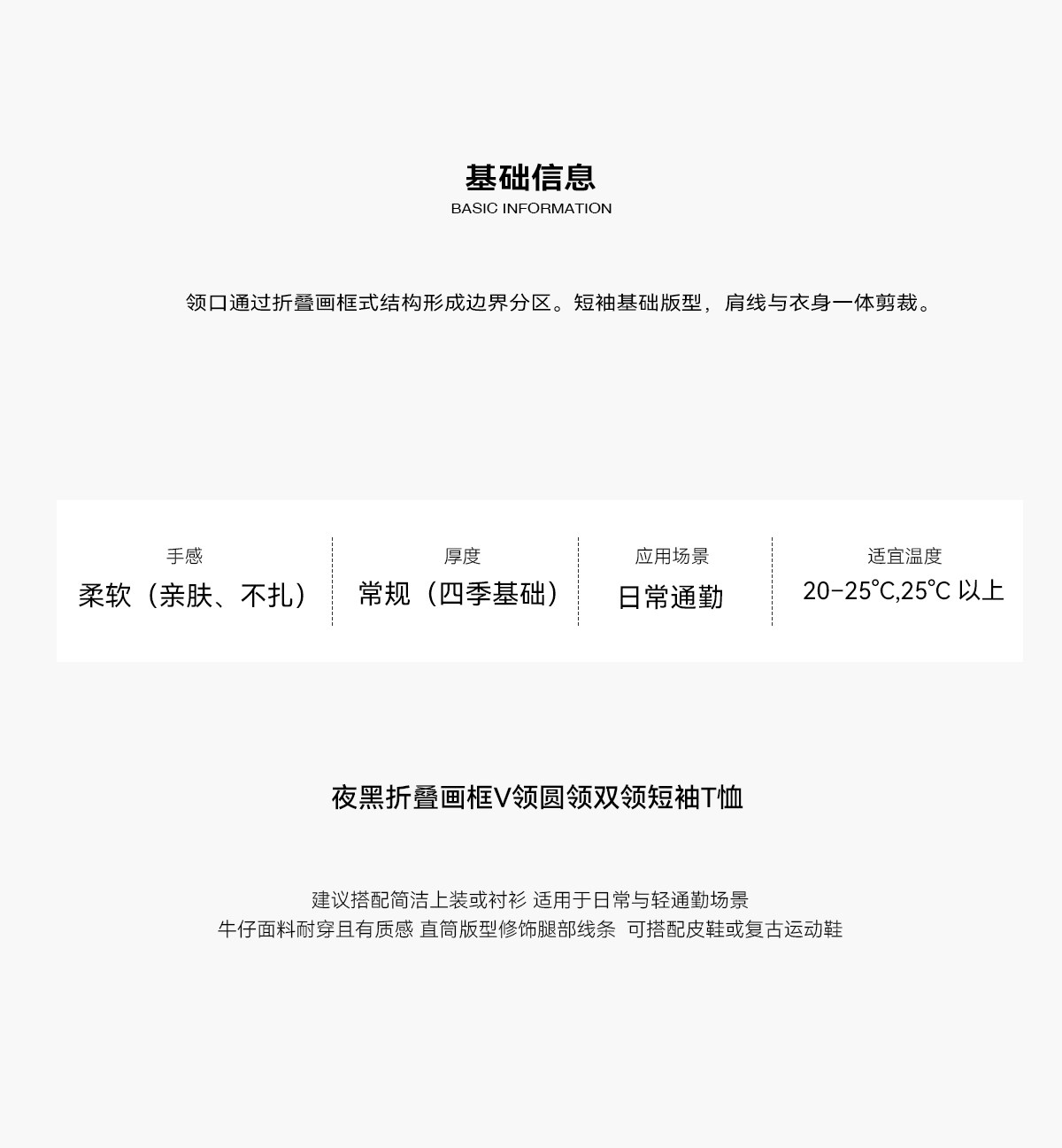 Slight Vogue丨Night black folding picture frame V-neck round neck double-neck short-sleeved T-shirt