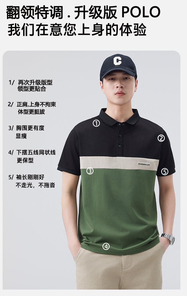 Jeep Jeep Spirit Men's Short-Sleeved Polo Shirt with Contrasting Color Lapels, Cool and Breathable Summer New Half-Sleeved Top