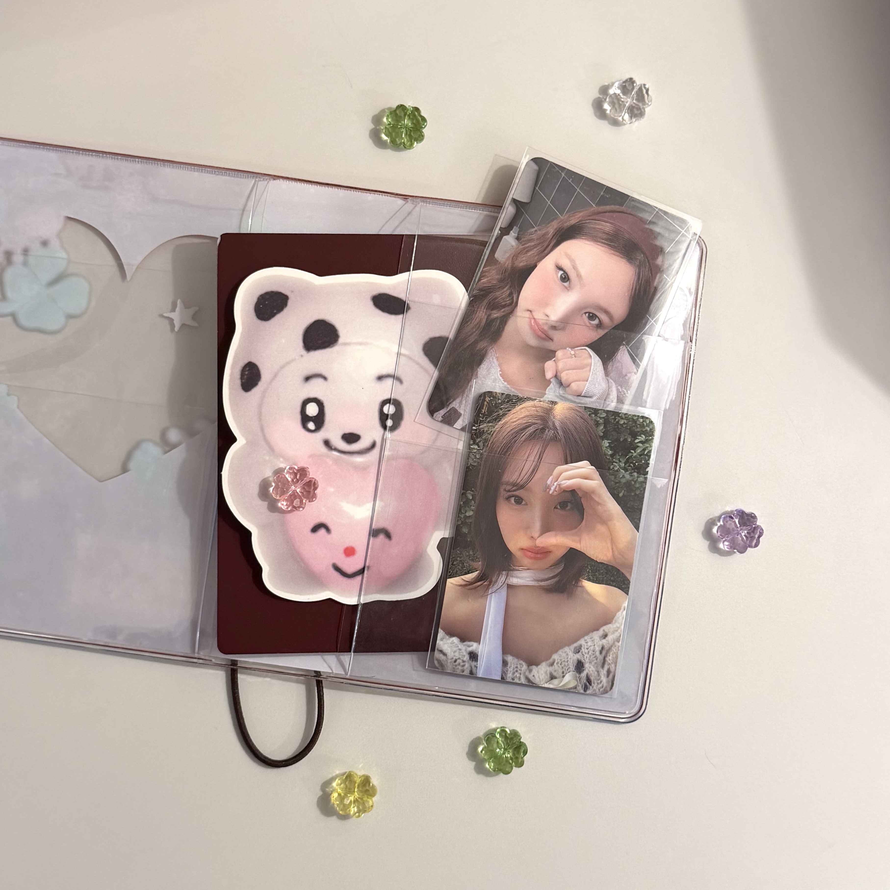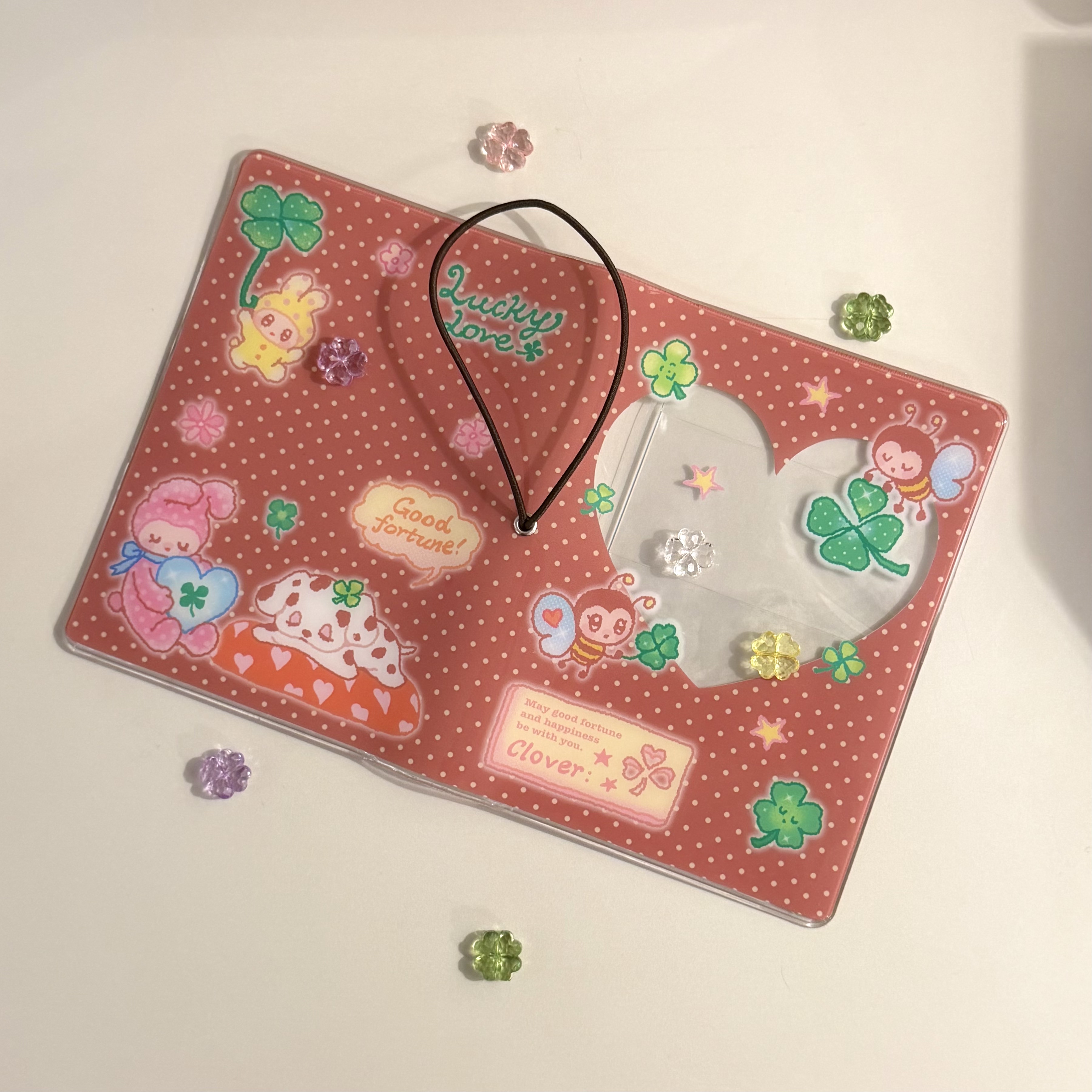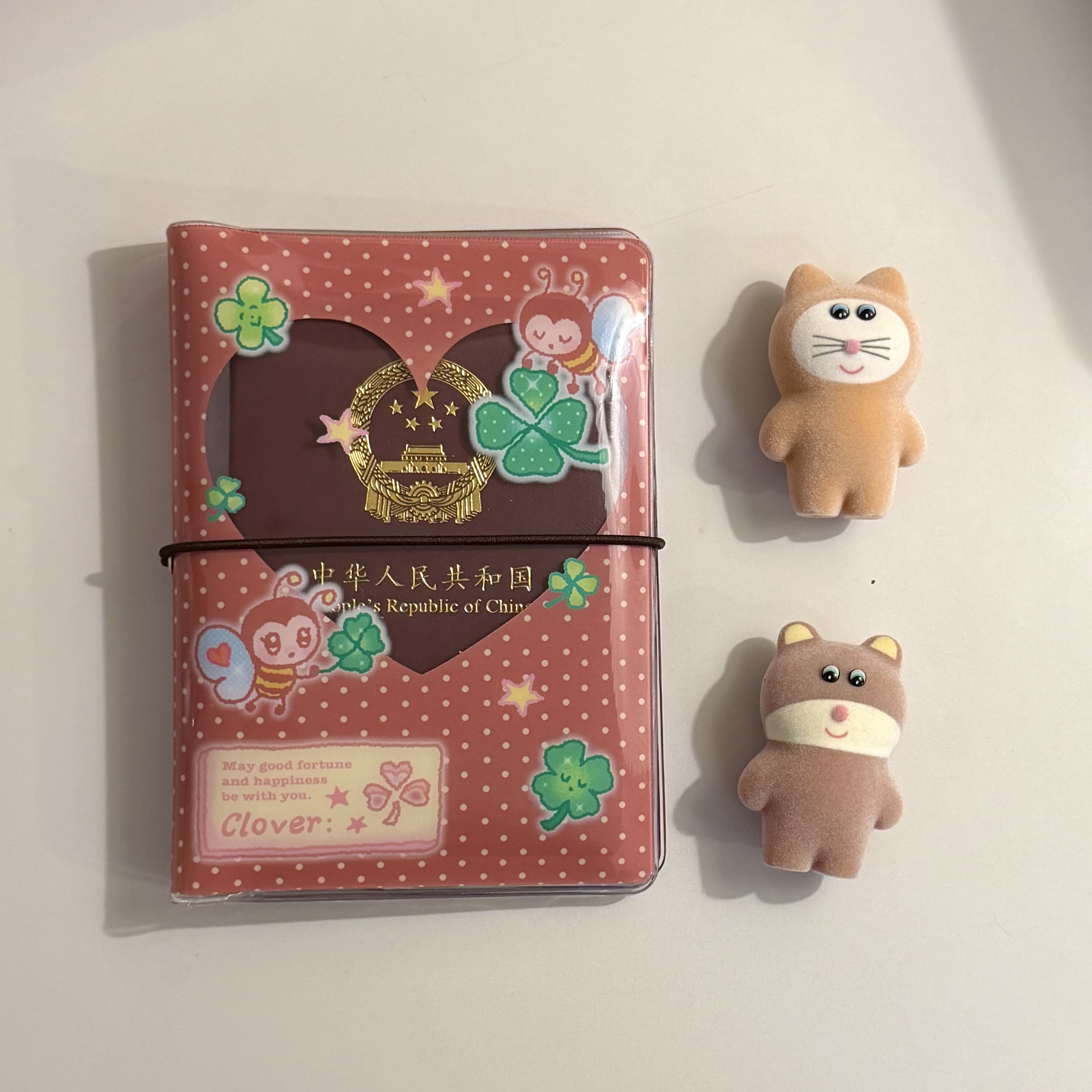 Onionion*Nio Lucky Four-Leaf Clover Brown Polka Dot Original Travel Passport Holder Organizer Document Card Holder