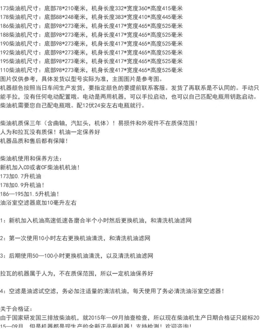 Color Classification 173 Manual Spline Shaft/Hand-Pulled Diesel Engine Only,173 Electric Splined Shaft / Electric + Hand-Pulled Dual-Purpose Diesel Engine,173 Manual Flat Key Shaft / Hand-Pulled Diesel Engine Only,173 Electric Flat Key Shaft / Electric + Hand-Pulled Dual-Purpose Diesel Engine,178 Manual Spline Shaft/Hand-Pulled Diesel Engine Only,178 Electric Splined Shaft / Electric + Hand-Pulled Dual-Purpose Diesel Engine,178 Manual Flat Key Shaft / Hand-Pulled Diesel Engine Only,178 Electric Flat Key Shaft / Electric + Hand-Pull Dual-Purpose Diesel Engine,186 Manual Spline Shaft/Hand-Pulled Diesel Engine Only,186 Electric Spline Shaft/Electric + Hand-Pull Dual-Purpose Diesel Engine,186 Manual Flat Key Shaft / Hand-Pulled Diesel Engine Only,186 Electric Flat Key Shaft / Electric + Hand-Pulled Dual-Purpose Diesel Engine,188 Manual Spline Shaft/Hand-Pull Diesel Engine Only,188 Electric Splined Shaft / Electric + Hand-Pulled Dual-Purpose Diesel Engine,188 Manual Flat Key Shaft / Hand-Pulled Diesel Engine Only,188 Electric Flat Key Shaft / Electric + Hand-Pull Dual-Purpose Diesel Engine,190 Manual Spline Shaft/Hand-Pulled Diesel Engine Only,190 Electric Splined Shaft / Electric + Hand-Pulled Dual-Purpose Diesel Engine,190 Manual Flat Key Shaft / Hand-Pulled Diesel Engine Only,190 Electric Flat Key Shaft / Electric + Hand-Pulled Dual-Purpose Diesel Engine,192 Manual Spline Shaft/Hand-Pulled Diesel Engine Only,192 Electric Splined Shaft / Electric + Hand-Pulled Dual-Purpose Diesel Engine,192 Manual Flat Key Shaft / Hand-Pulled Diesel Engine Only,192 Electric Flat Key Shaft / Electric + Hand-Pulled Dual-Purpose Diesel Engine,195 Manual Spline Shaft/Hand-Pulled Diesel Engine Only,195 Electric Splined Shaft / Electric + Hand-Pulled Dual-Purpose Diesel Engine,195 Manual Flat Key Shaft / Hand-Pulled Diesel Engine Only,195 Electric Flat Key Shaft / Electric + Hand-Pulled Dual-Purpose Diesel Engine,168 Manual Flat Key Shaft / 3 Hp Diesel Engine,168 Electric Flat Key Shaft / 3 Hp Diesel Engine,1100 Electric Splined Shaft / Electric 18Hp Diesel Engine Only,1100 Electric Flat Key Shaft / Electric 18Hp Diesel Engine Only