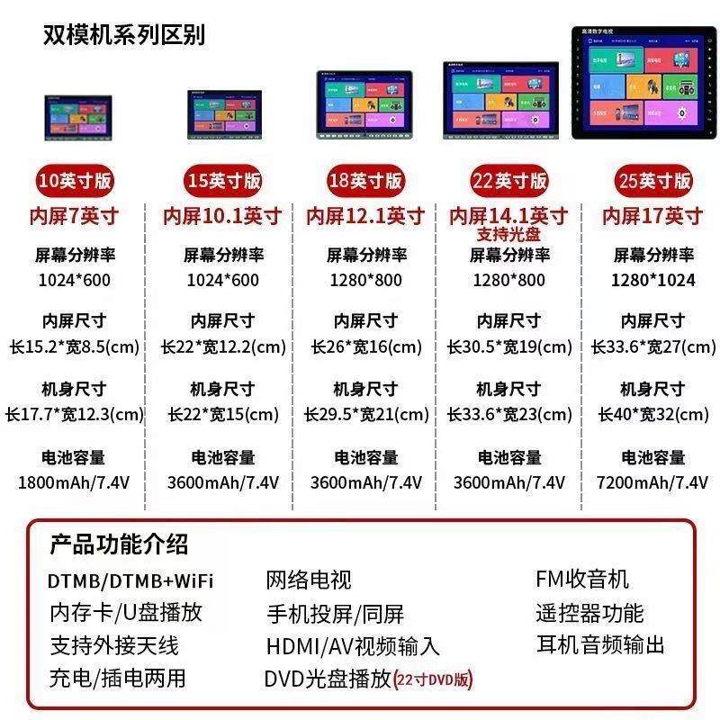 Color 10inch Power Antenna Remote Control,10inch Network Wifi Screen Projection + Ground Wave,10inch Wifi Screen Projection + Ground Wave + 32g,10inch Wifi Screen Projection + Ground Wave + 64g,Jinzheng 12inch Digital Tv Comes with Antenna Power Supply,Jinzheng 12inch Digital Tv Comes with Antenna 32g U Disk,Jinzheng 12inch Digital Tv Comes with Antenna 64g U Disk,13inch Quad Core Network Wifi Version,13inch Quad-Core Network Wifi Version + 32Gu Disk,13inch Quad-Core Network Wifi Version + 64Gu Disk,15inch Digital Antenna Power Remote Control,15inch Digital Antenna Power Remote Control +32G,15inch Digital Antenna Power Remote Control+64G,18inch Digital Antenna Power Remote Control,18inch Digital Antenna Power Remote Control +32G,18inch Digital Antenna Power Remote Control+64G,22inch Remote Control of Antenna Power,22inch Antenna Power Remote Control +32G,22inch Antenna Power Remote Control +64G,12inch + 8m External Antenna + Network Wifi Version,12inch 8m Antenna + Network Wifi + 32g,12inch 8m Antennas + Network Wifi + 64g,15inch Network Wifi + Ground Wave Dual Use,15inch Network Wifi+Ground Wave Dual-Purpose 32g,15inch Network Wifi+Ground Wave Dual-Use 64g,18inch Network Wifi+External Antenna,18inch Wifi Screen Projection + External Antenna 32g,18inch Wifi Screen Projection + External Antenna 64g,22inch Network Wifi + Ground Wave Dual Use,22inch Network Wifi+Ground Wave+32G,22inch Network Wifi+Ground Wave+64G,22inch Wifi Screen Projection + External Antenna + Dvd,22inch Wifi Screen Projection + Antenna Dvd32G,22inch Wifi Screen Projection + Antenna Dvd64G,25inch Network Screen Projection + External Antenna,25inch Network Screen Projection + External Antenna + 32g