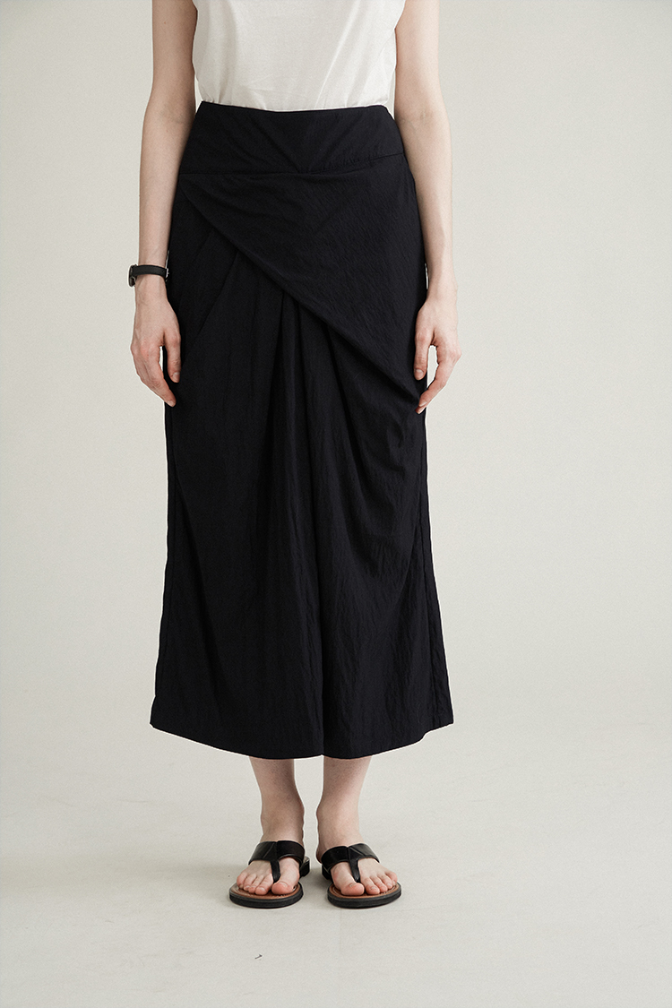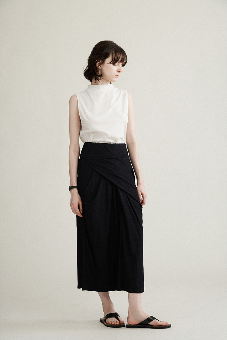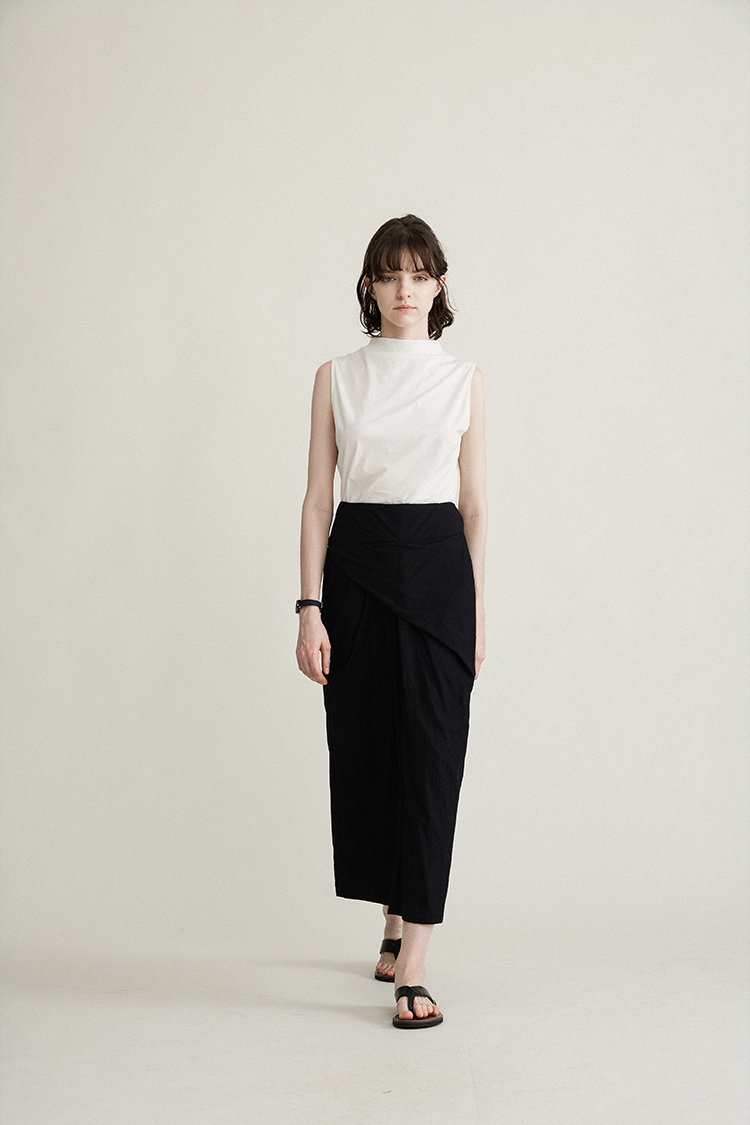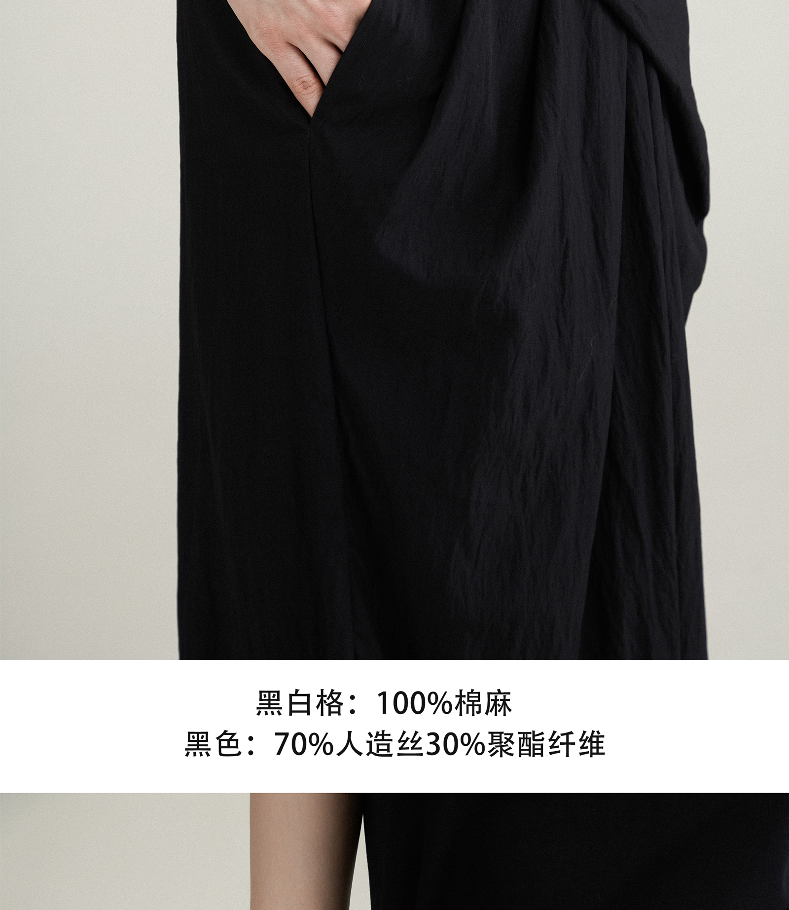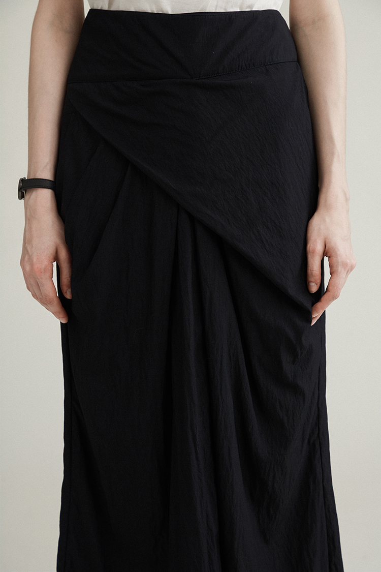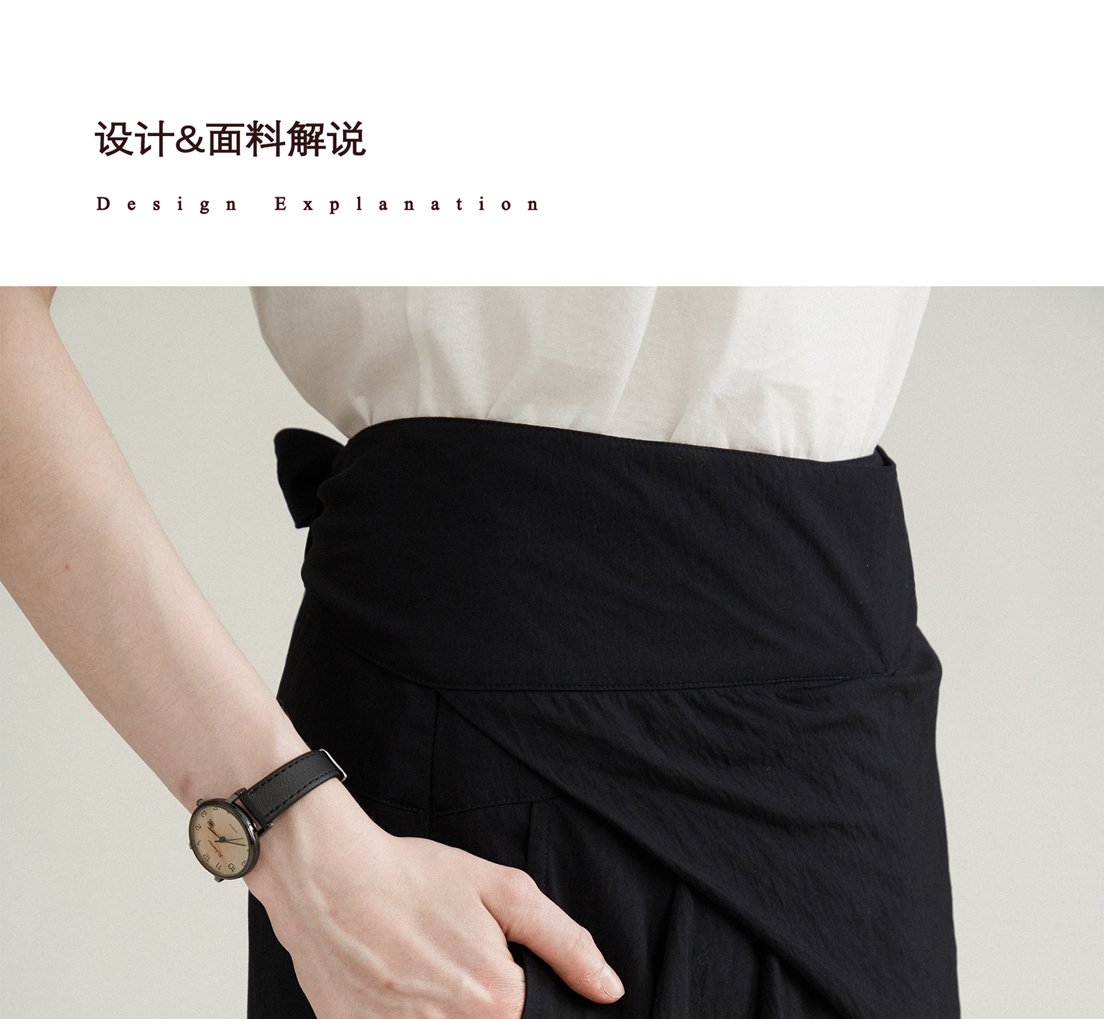 Sonders Designer Two-Tone Asymmetrical Deconstructed Cross-Over Fabric Slit Mid-Length Skirt for Commuting