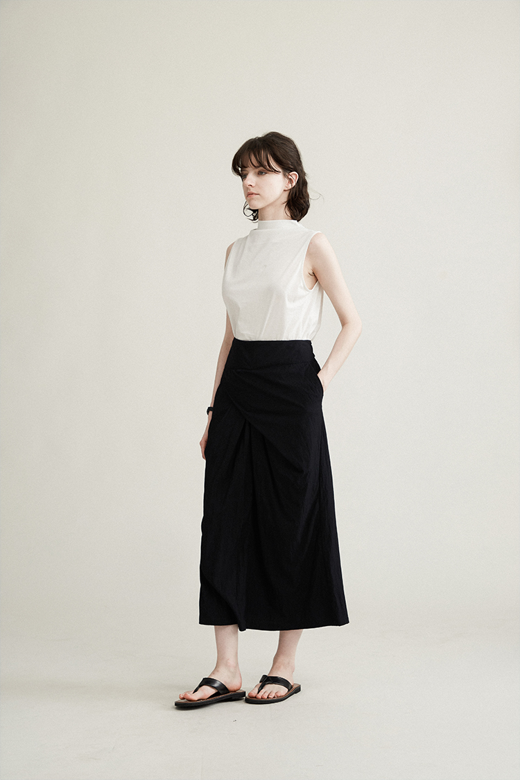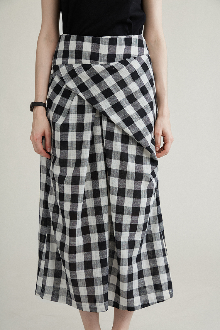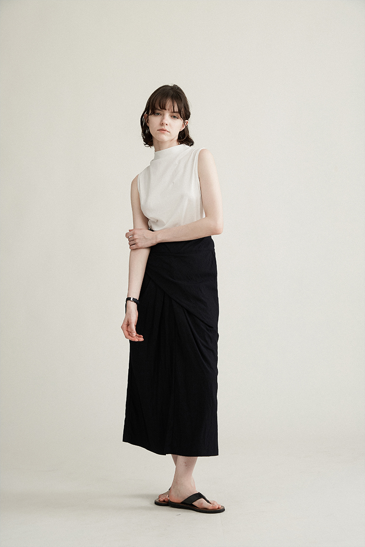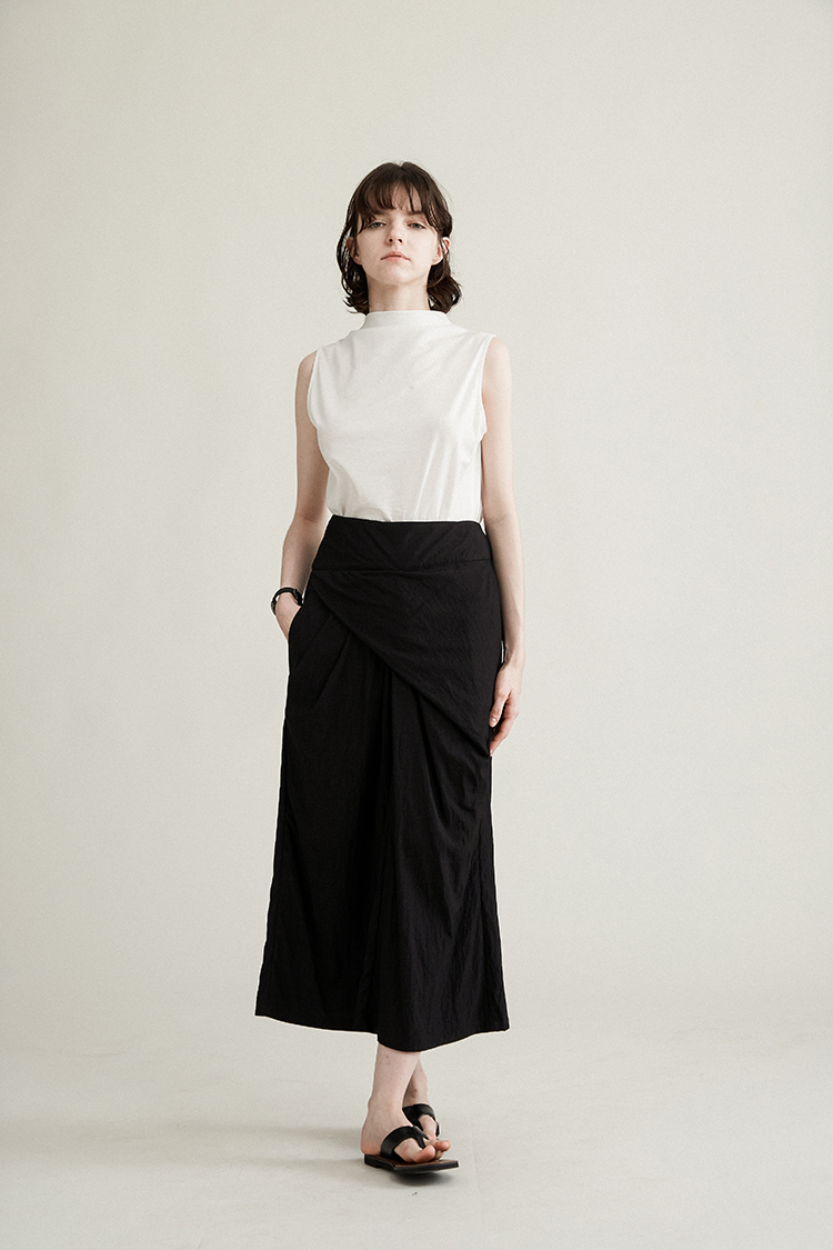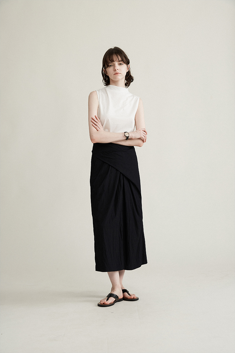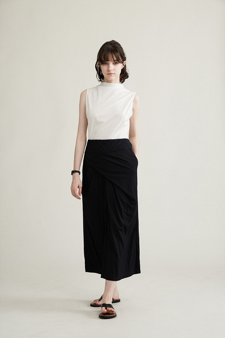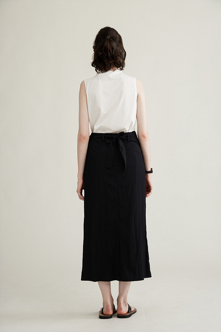 Sonders Designer Two-Tone Asymmetrical Deconstructed Cross-Over Fabric Slit Mid-Length Skirt for Commuting