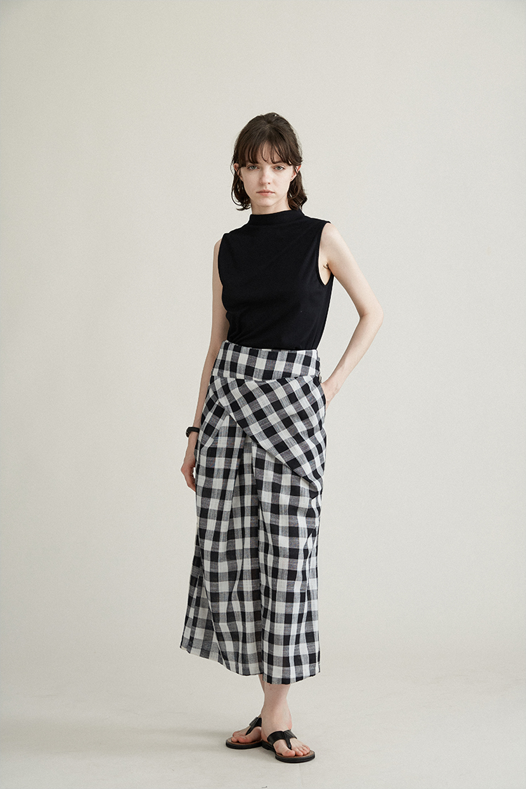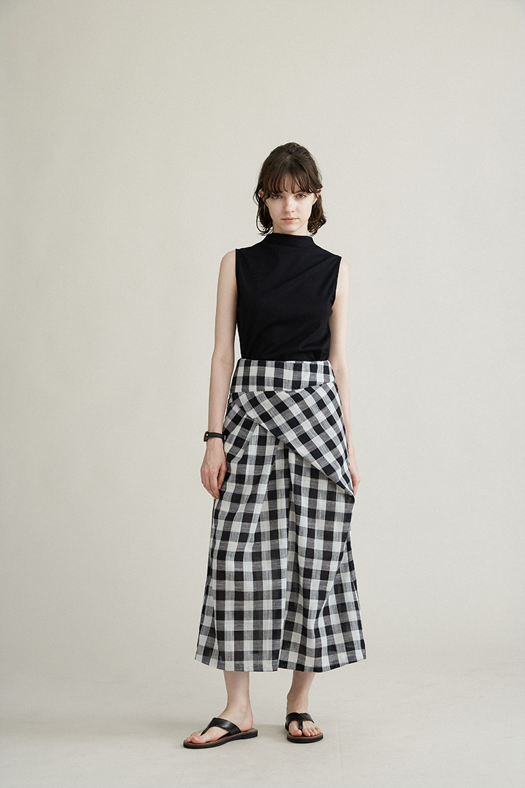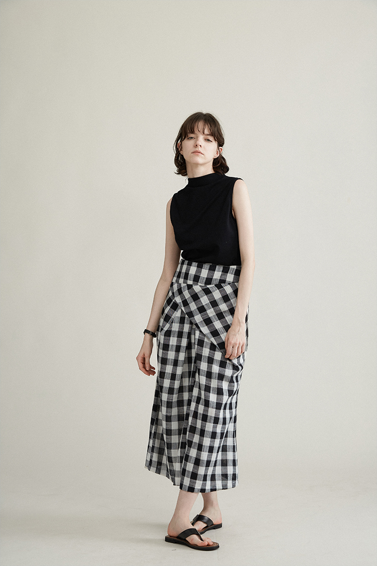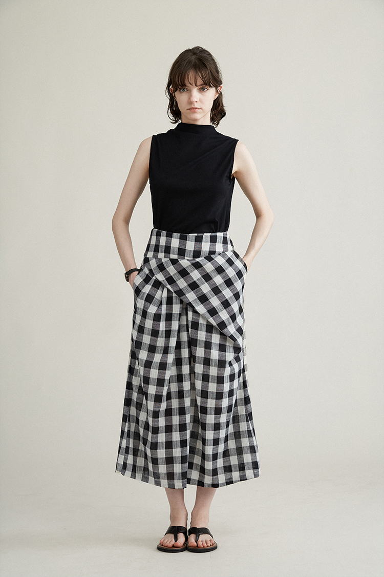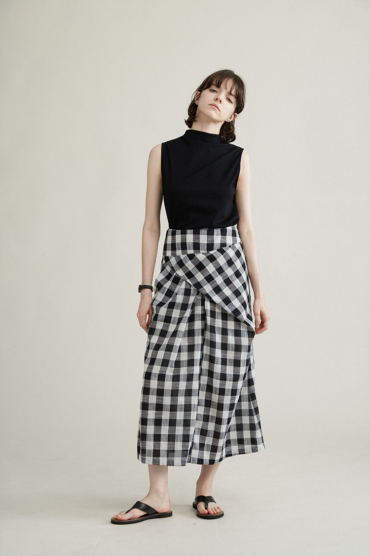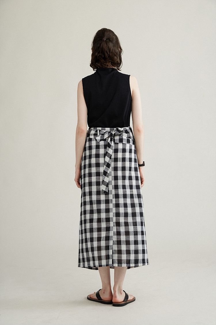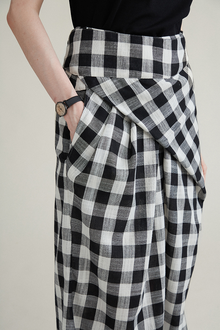Sonders Designer Two-Tone Asymmetrical Deconstructed Cross-Over Fabric Slit Mid-Length Skirt for Commuting