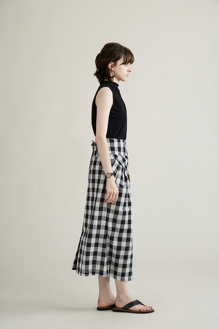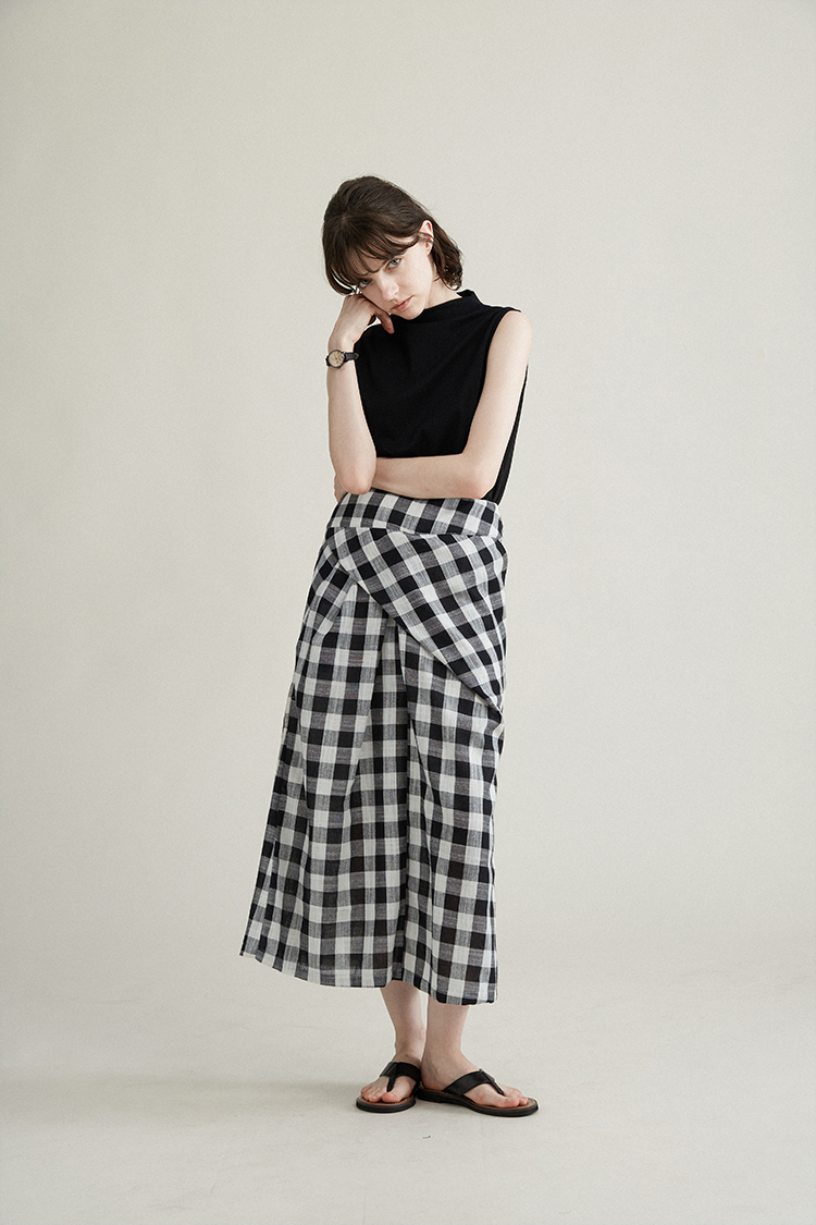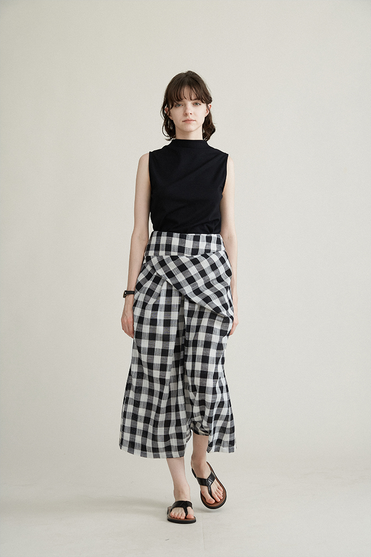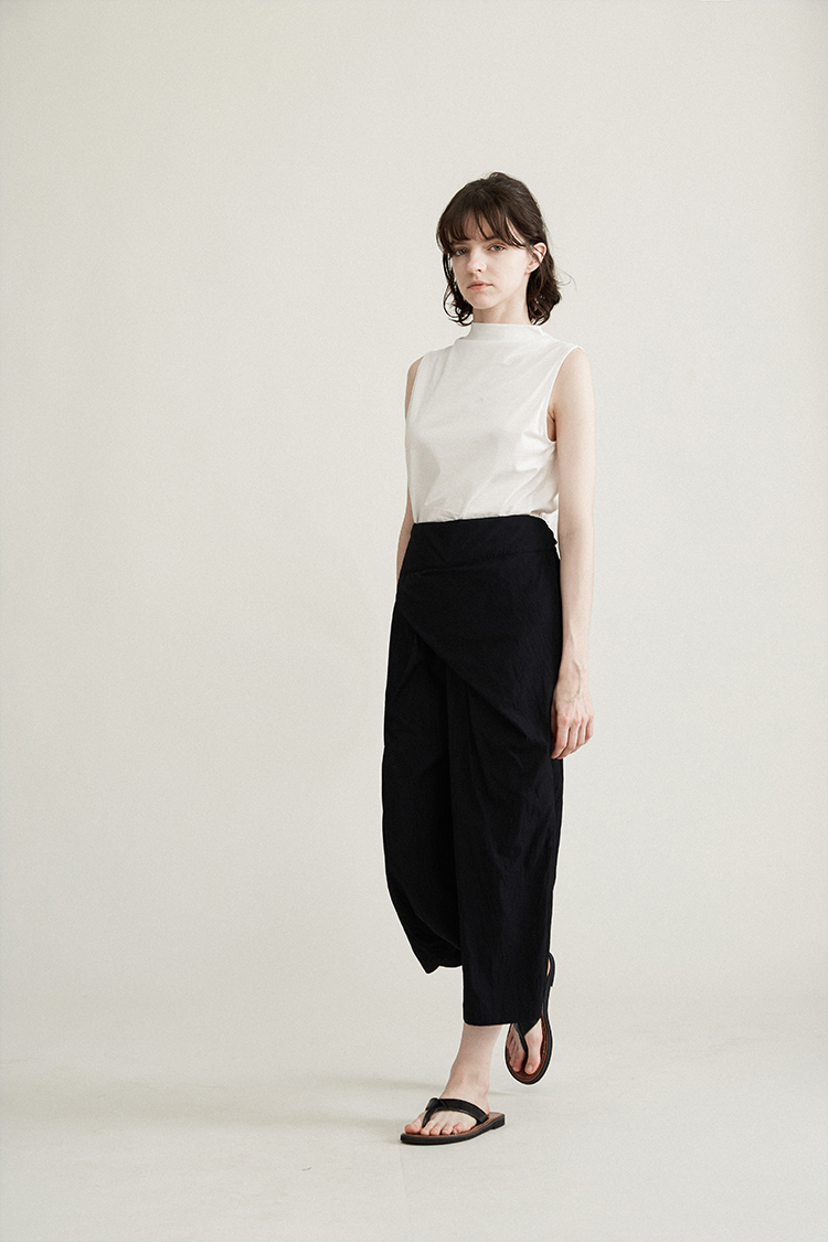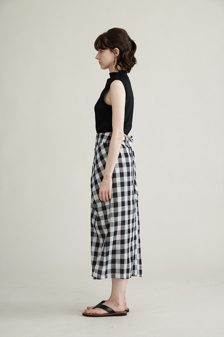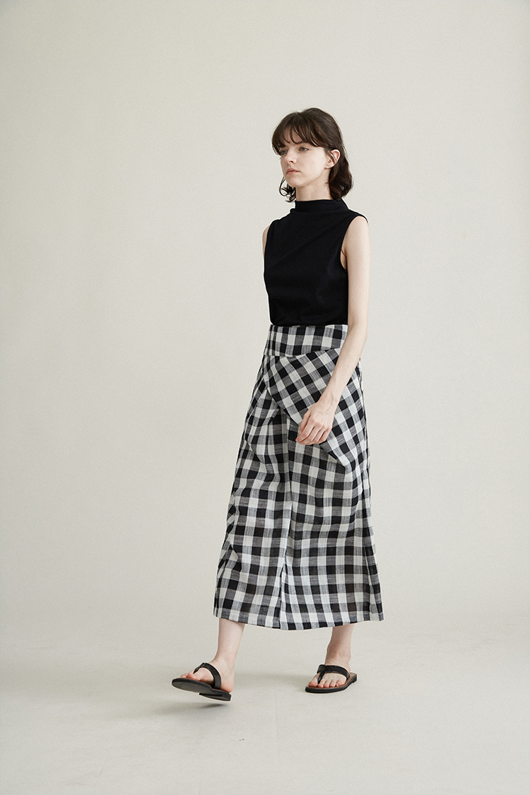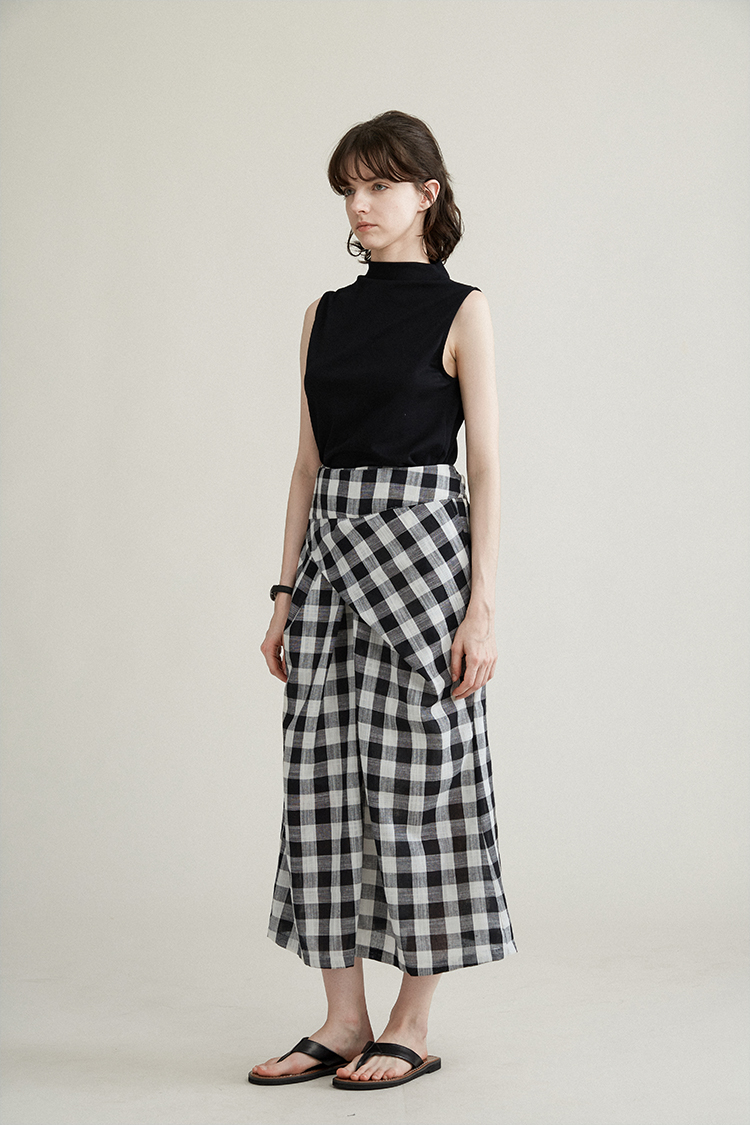 Sonders Designer Two-Tone Asymmetrical Deconstructed Cross-Over Fabric Slit Mid-Length Skirt for Commuting