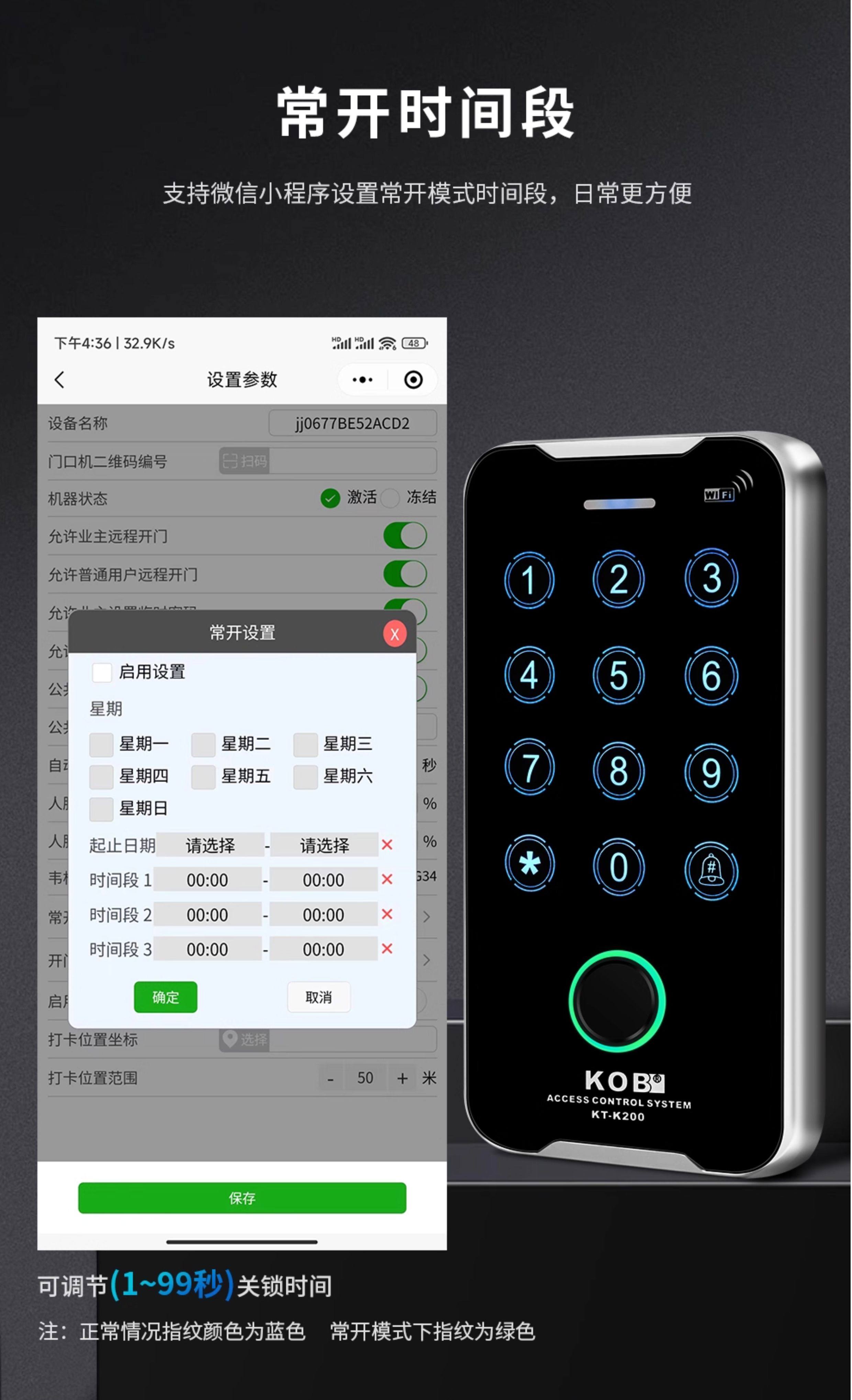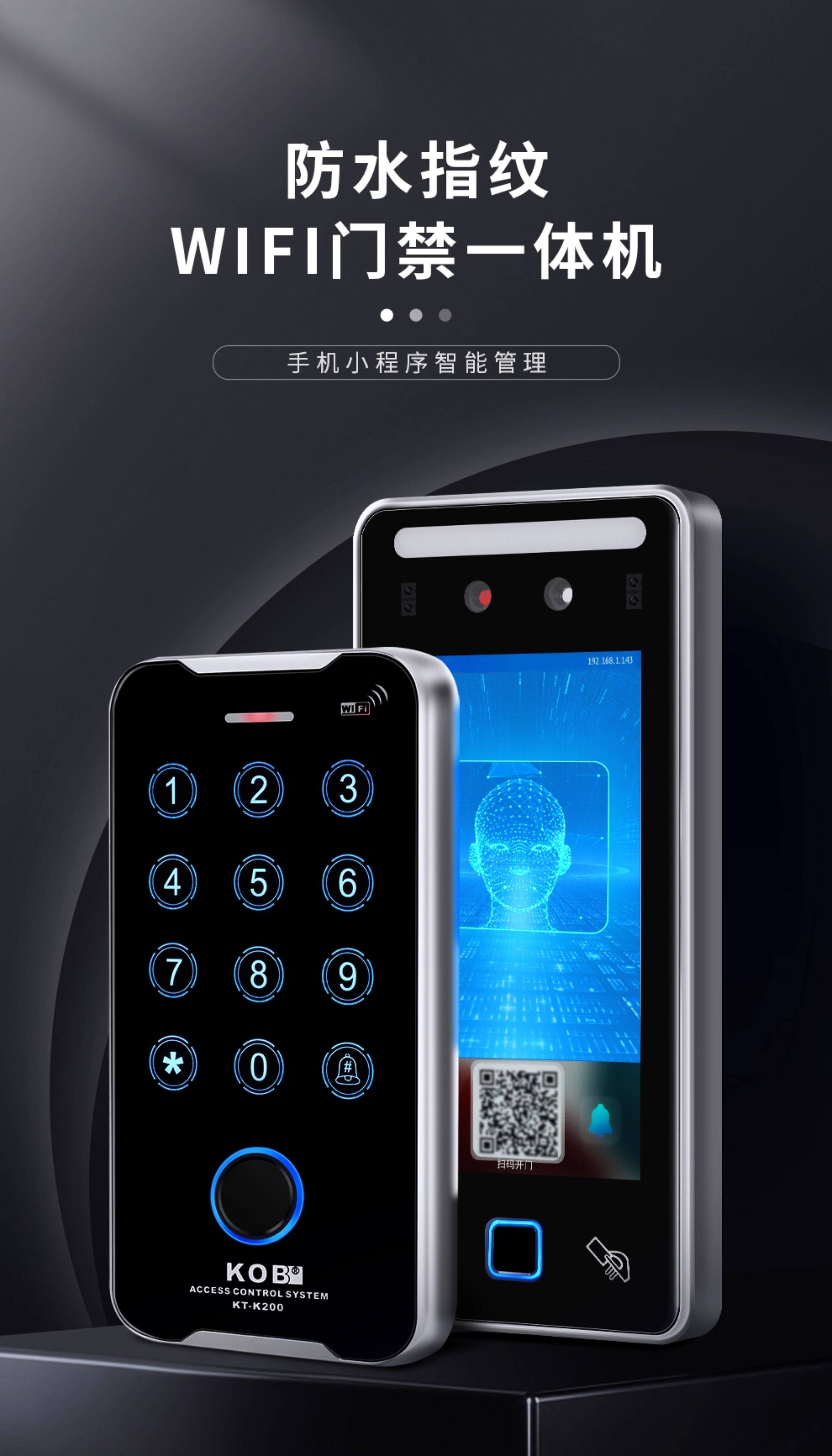 Kob Outdoor Waterproof Fingerprint Access Control All-In-One Machine with Card Swipe, Password, Wifi, App, and Dynamic Facial Recognition System