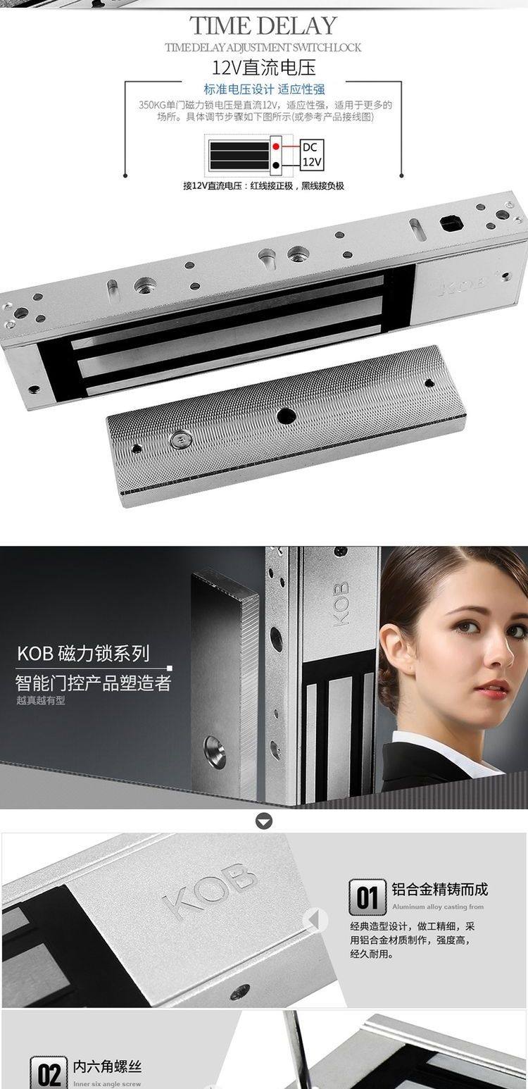 Kob Access Control Magnetic Lock 350/ 500kg Electromagnetic Lock Single Door Feedback Electric Lock Waterproof Electric Control Lock Double Door Lock