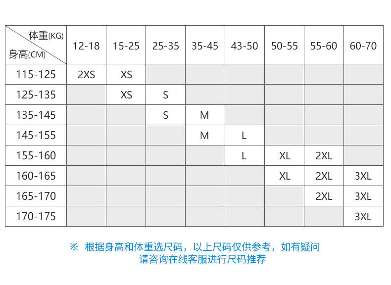 China (cm) 165 / 88-90 170 / 96-98 175 / 108-110 180 / 118-122 185 / 126-130