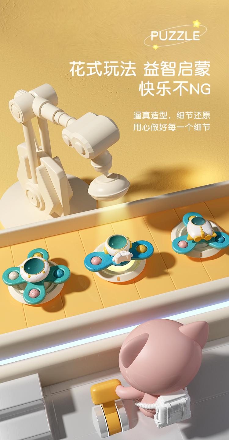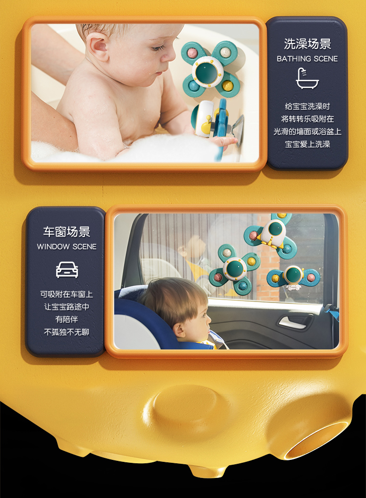 Baby Suction Cup Spinner Toy Cartoon for Children Aged 0-1 Years, Suitable for Babies 6-12 Months and Above, Can Be Chewed on