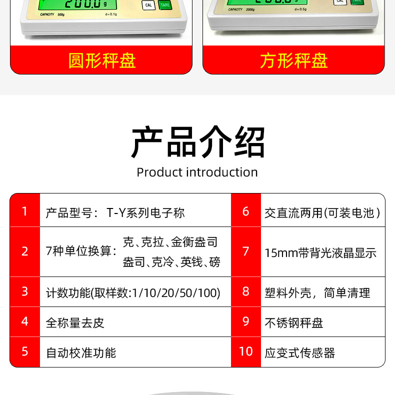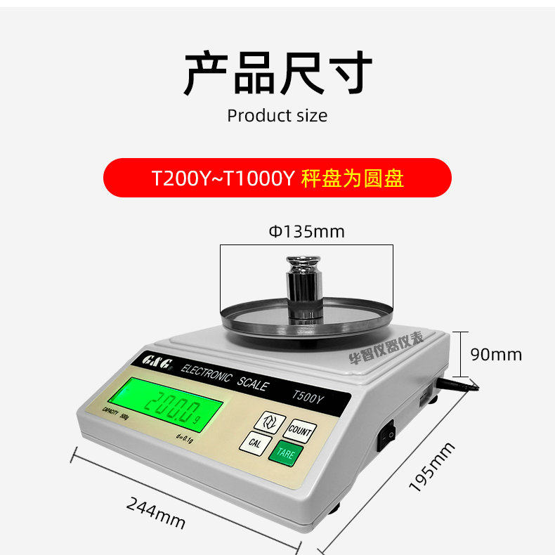 Color Classification T200Y (Weighing 200g) Accuracy 0.1g,T500Y (Weighing 500g) Accuracy 0.1g,T1000Y (Weighing 1000g) Accuracy 0.1g,T2000Y (Weighing 2kg) Accuracy 0.5g,T3000Y (Weighing 3kg) Accuracy 0.5g,T5000Y (Weighing 5kg) Accuracy 1g