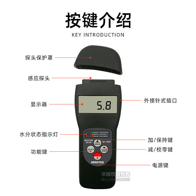 Lantai Wood Moisture Meter Mc7825P/S/Ps Chinese Herbal Medicine Wood Fiber Paper Moisture Meter Hygrometer