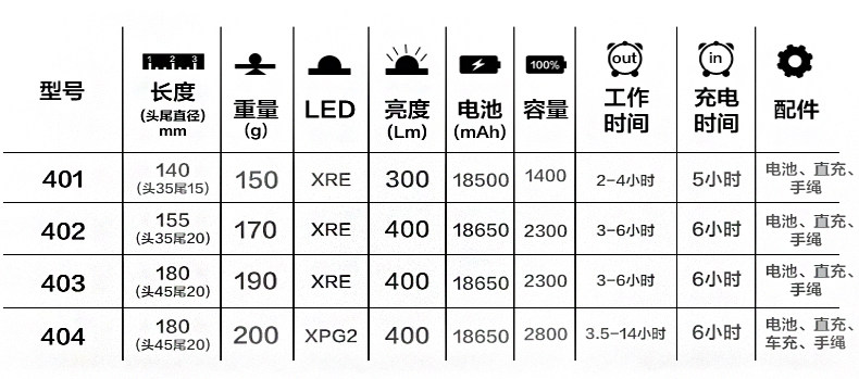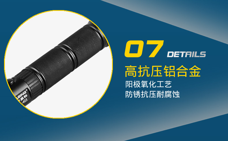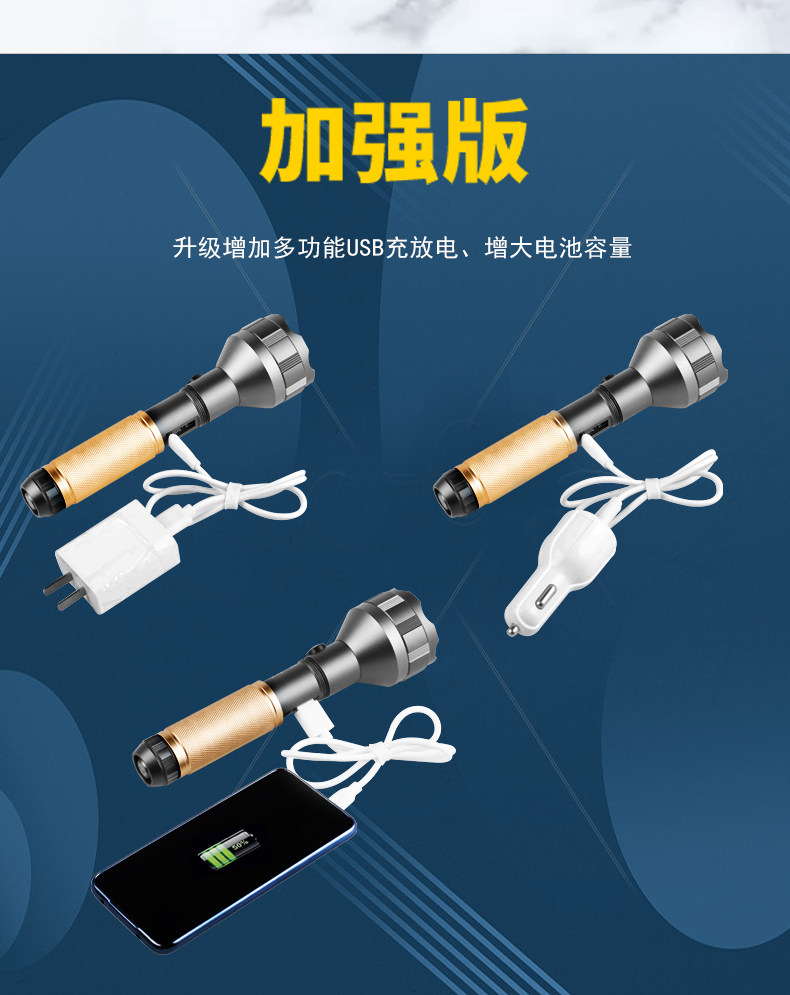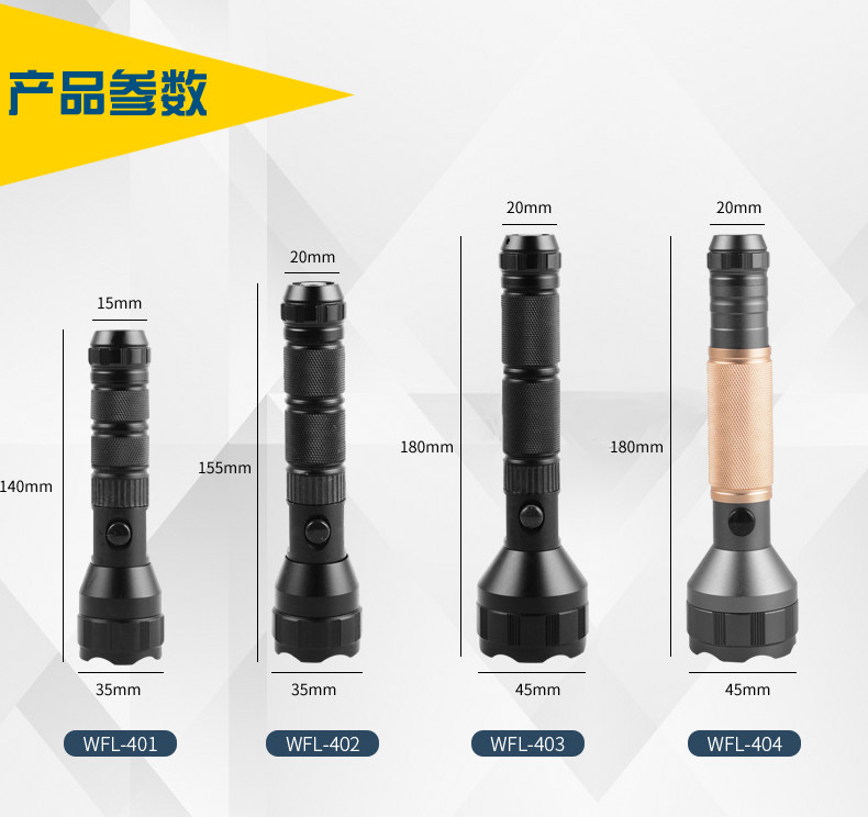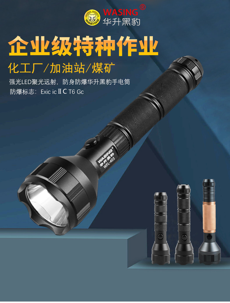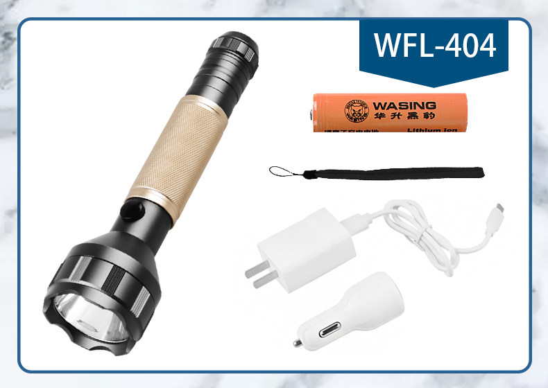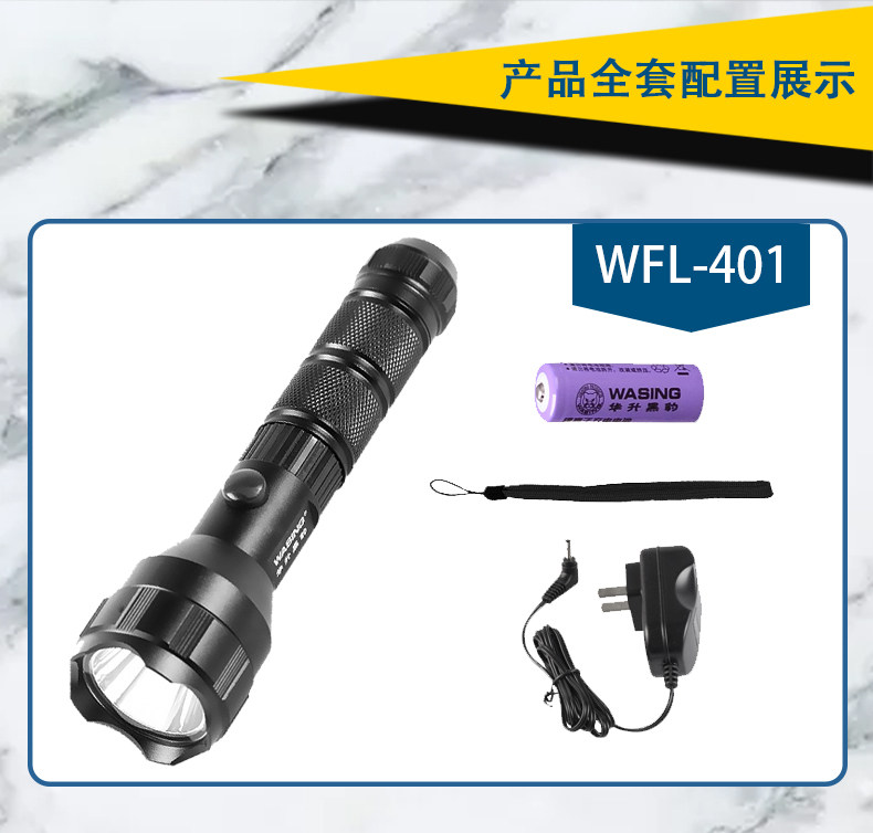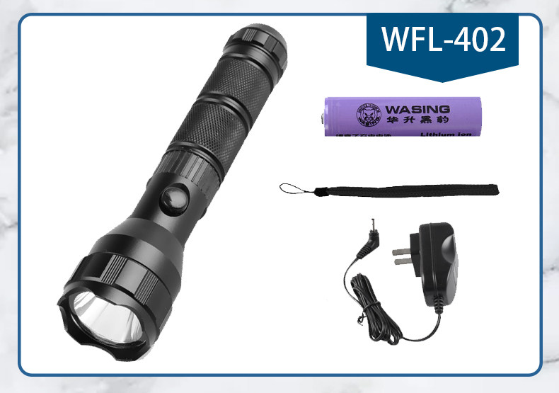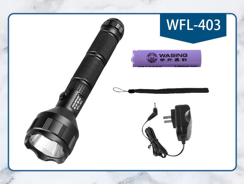 Huasheng Black Panther Wfl-403 Three-Level Dimming Led Rechargeable Strong Light Flashlight Aluminum Alloy Patrol Self-Defense Explosion-Proof Light