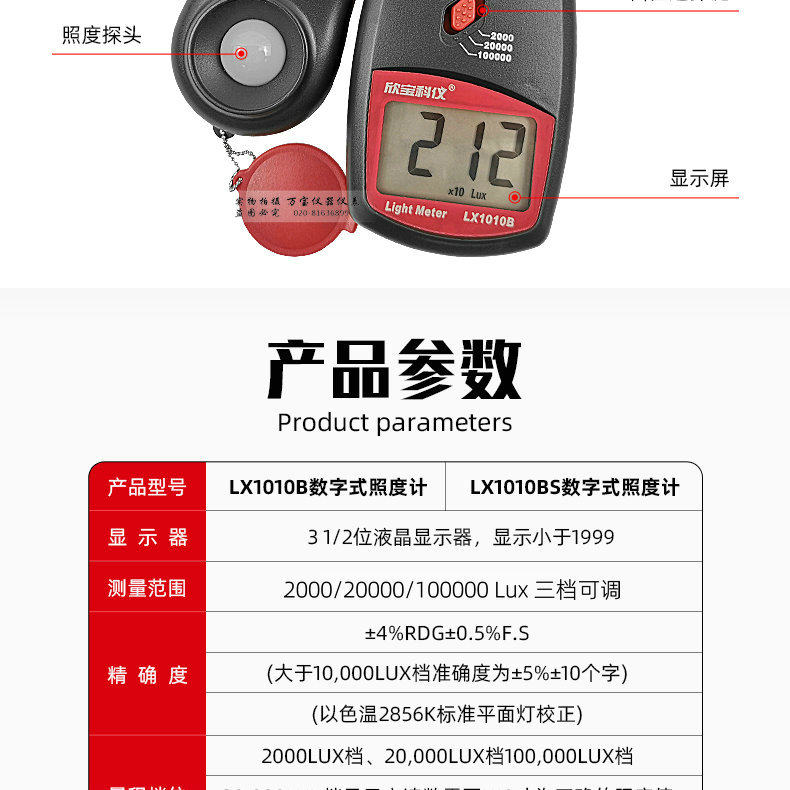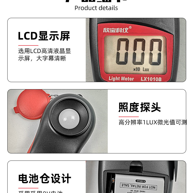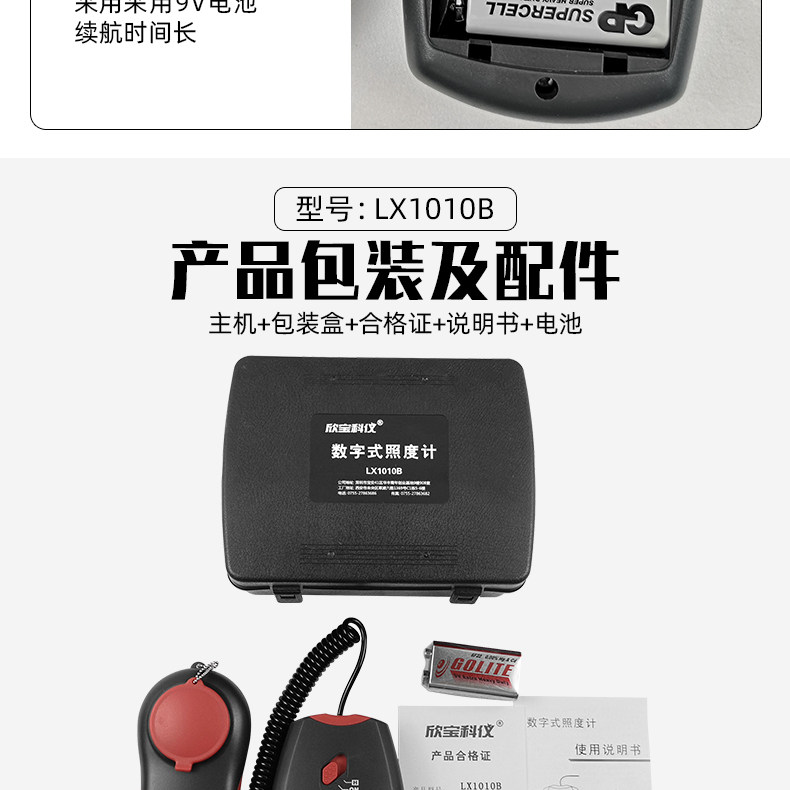 Xinbao Ke Yi Illuminance Meter Lx1010B/Bs Photometer Light Bar Light Intensity Illuminometer Brightness Meter Photometer