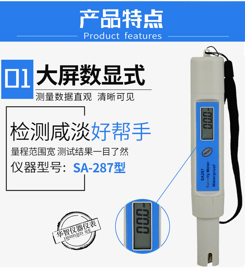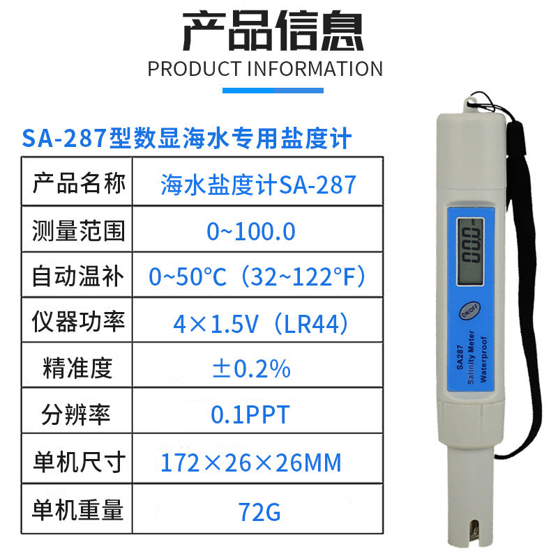Digital Display Classic Salinity Meter Sa-287 High-Precision Seawater Breeding Brine Soup Salinity Meter Salinity Detection