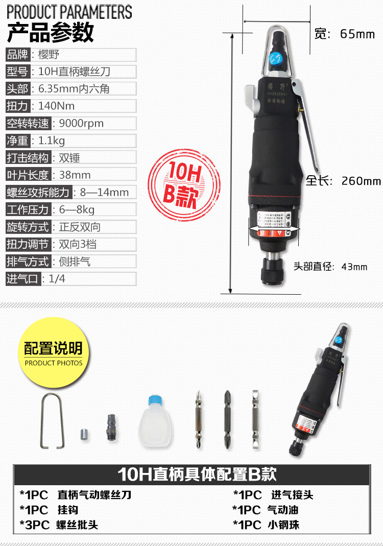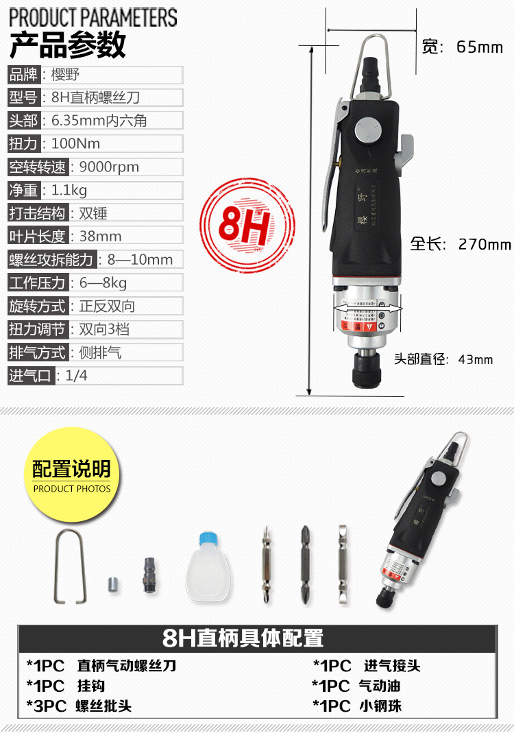 Powerful 8H10H Pneumatic Screwdriver Straight Wind Screwdriver Straight Wind Moving Woodworking Impact Screwdriver Screwdriver Screwdriver