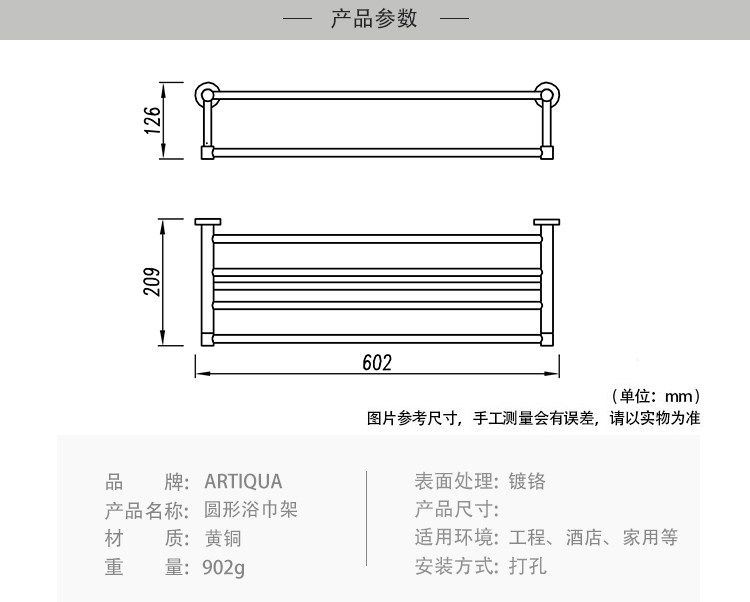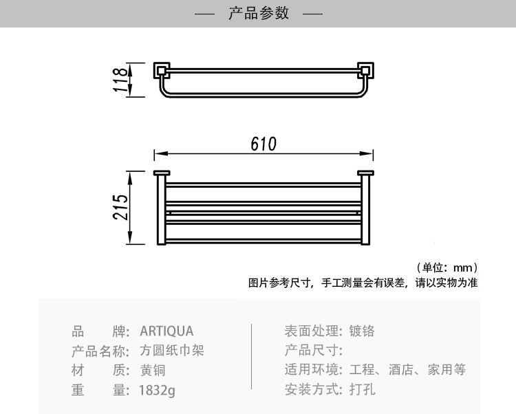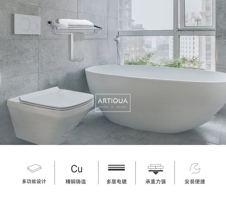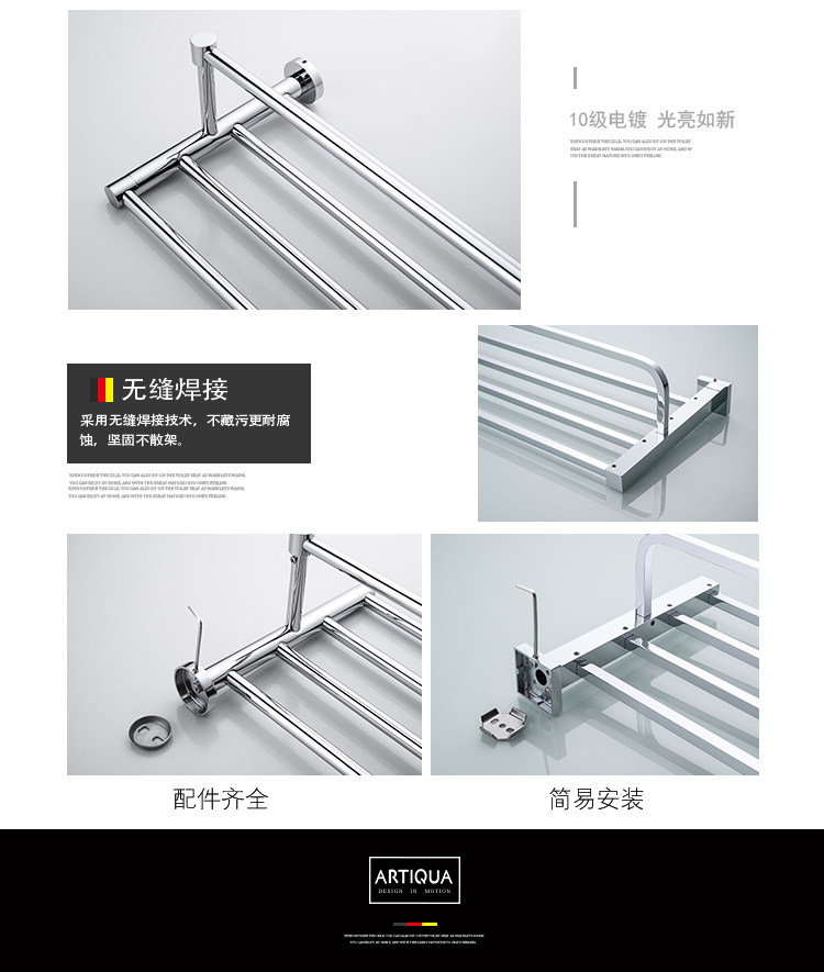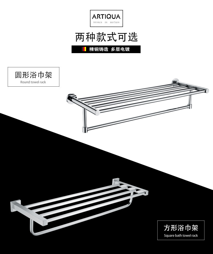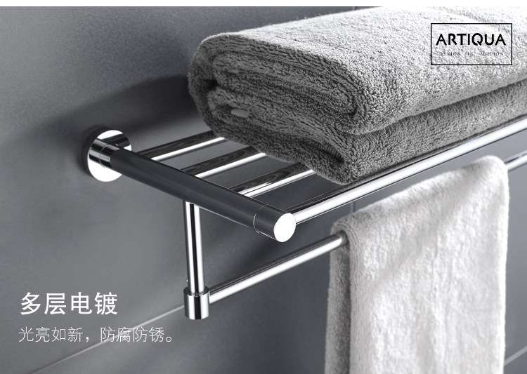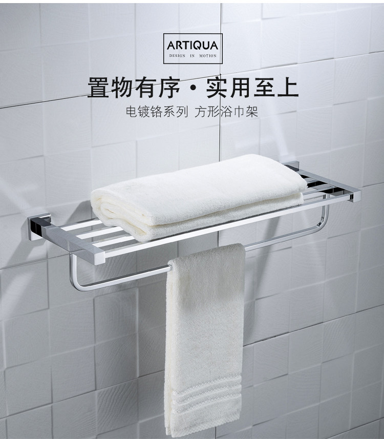 Artiqua All-Copper Towel Rack Double-Layer Bath Towel Rack Square Towel Hanger Bathroom Storage Rack Bathroom Accessories